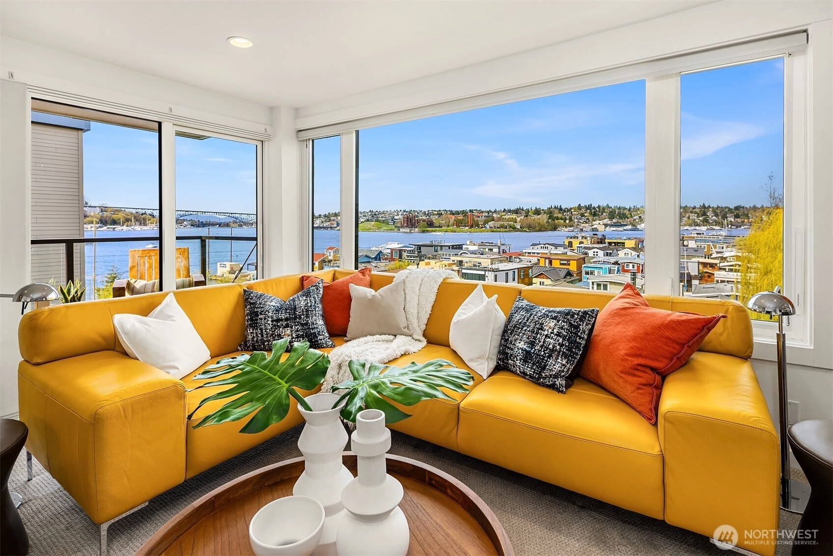 Experience the quintessential Lake Union lifestyle every day in this fully-updated corner unit bathed in natural light, with views that will leave you speechless. Spend your days boating or watching seaplanes, and your evenings soaking in the beauty of sunsets over the Aurora Bridge and Gasworks Park. The kitchen boasts a waterfall quartz countertop with seating, an induction stove, and built-in beverage fridge. The expansive primary suite offers a private balcony, walk-in closet, en-suite bath, and laundry. Swim and sunbathe at the one-of-a-kind pool over the Lake. Launch your paddleboard or kayak from the marina. Property includes two parking spaces, EV charger, storage, and a boat slip. Your lakeside home awaits!
