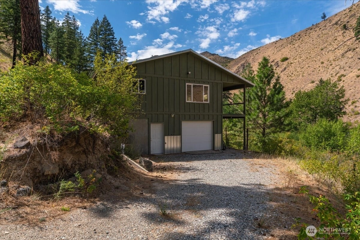 Opportunity knocks with this unfinished cabin on 33 acres. 864 sq ft of living space that is sheet-rocked, wired, plumbed and ready for your finishes. This cabin sits on a 2-car garage (an additional 864 sq ft) that is a drive-through garage with additional storage space. Gorgeous views from the covered front deck make this a great place to drink your morning coffee or just take in the peace & quiet. This is 1 bedroom with 1.75 baths (no fixtures are in). The well is drilled and plumbed to cabin, but power is not hooked up. Septic is also not installed yet. The Conex container out back is included in sale and buyers are encouraged to do their due diligence on what it will take to finish this cabin to their expectations.