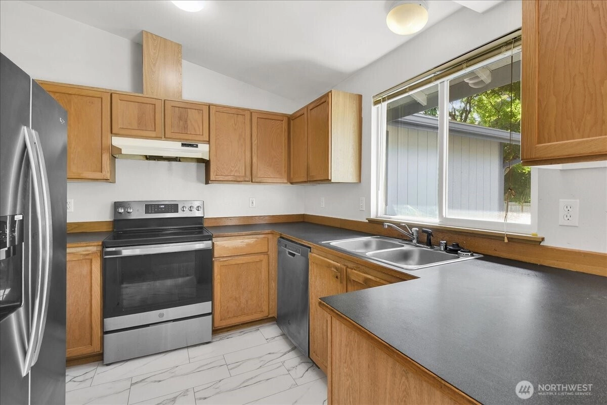 Great opportunity in a sought-after Lake Stevens neighborhood. This 3 bed/2 bath home w/2 car garage sits on large, fully fenced, flat lot-perfect for pets, play or gardening. Just minutes to Boeing w/easy access to major commuter routes, shopping, & dining. Home features open floor plan w/vaulted ceilings, full bath off primary & zero access stairs. Home has solid bones with a 4 year old roof, 3 year old water tank & exterior fully painted with majority of siding replaced last summer. This offers a solid foundation for your personal updates & improvements. Bring your vision-whether you're a first time buyer, investor or DIY enthusiast, this property has incredible potential. Don't miss your chance to build equity in prime location.