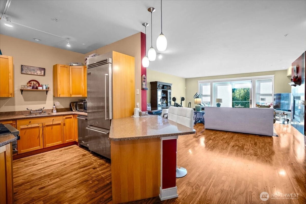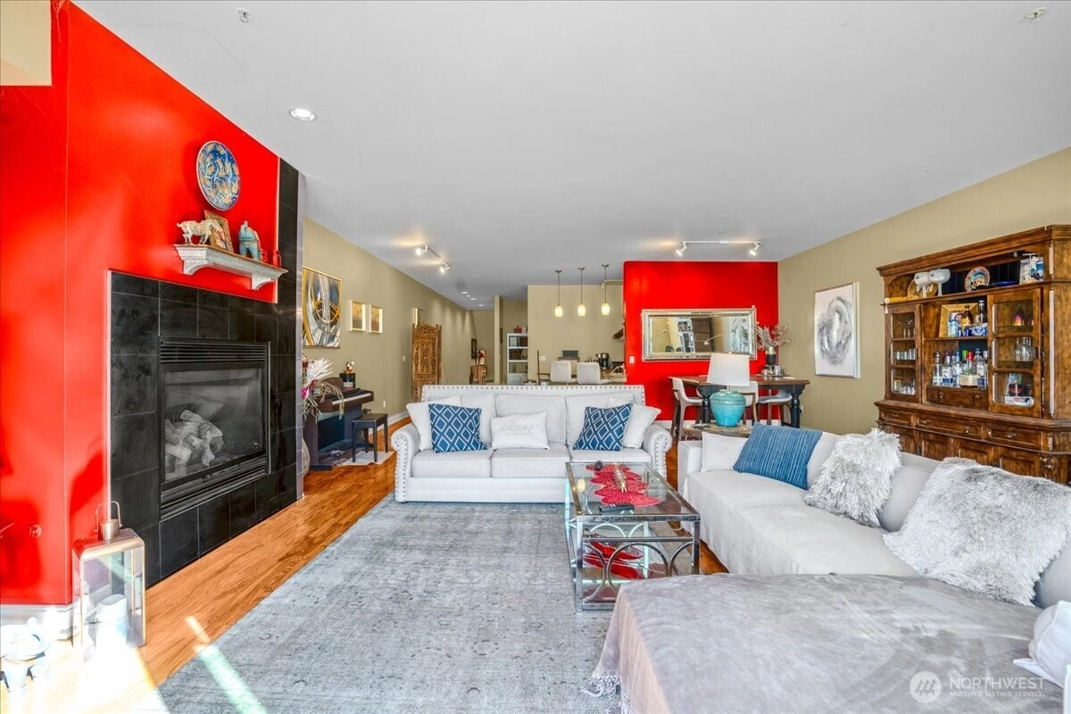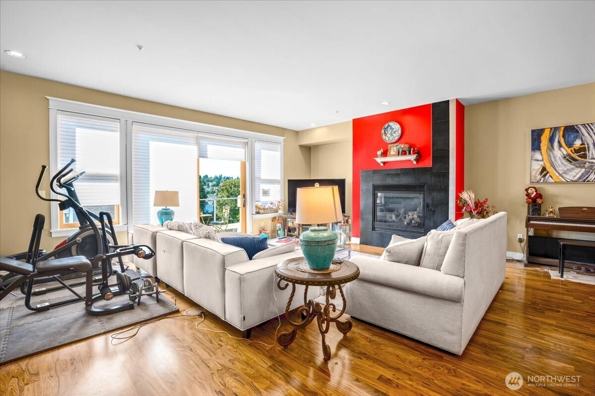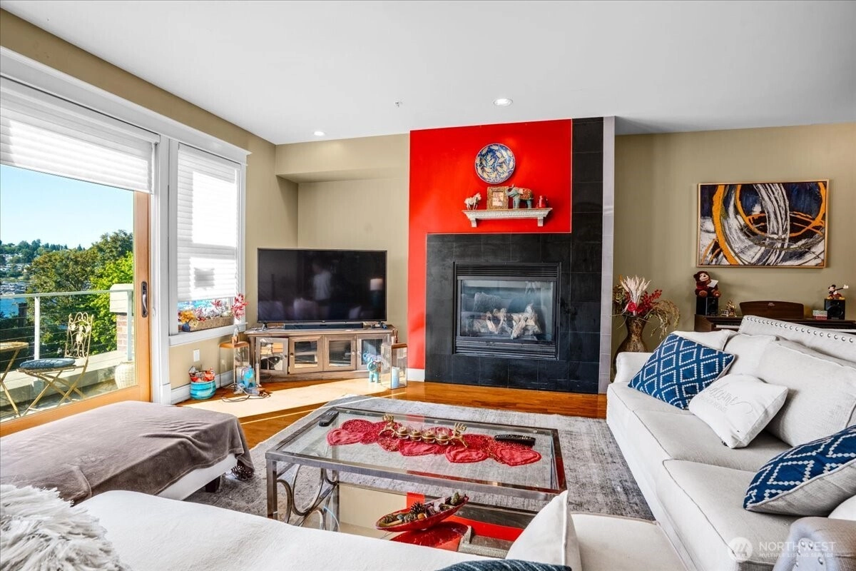 Top-floor luxury condo with nearly 2,200 sqft of open living space and stunning lake views from both levels. Features include Brazilian hardwood floors, spacious living room with fireplace, gourmet kitchen with stainless Viking appliances, formal dining, and a separate office/den. Upstairs, enjoy a large primary suite with spa-like bath and custom walk-in closet. Two private decks offer outdoor relaxation, plus two dedicated parking spaces. A rare blend of space, style, and value, don’t miss this exceptional urban retreat!