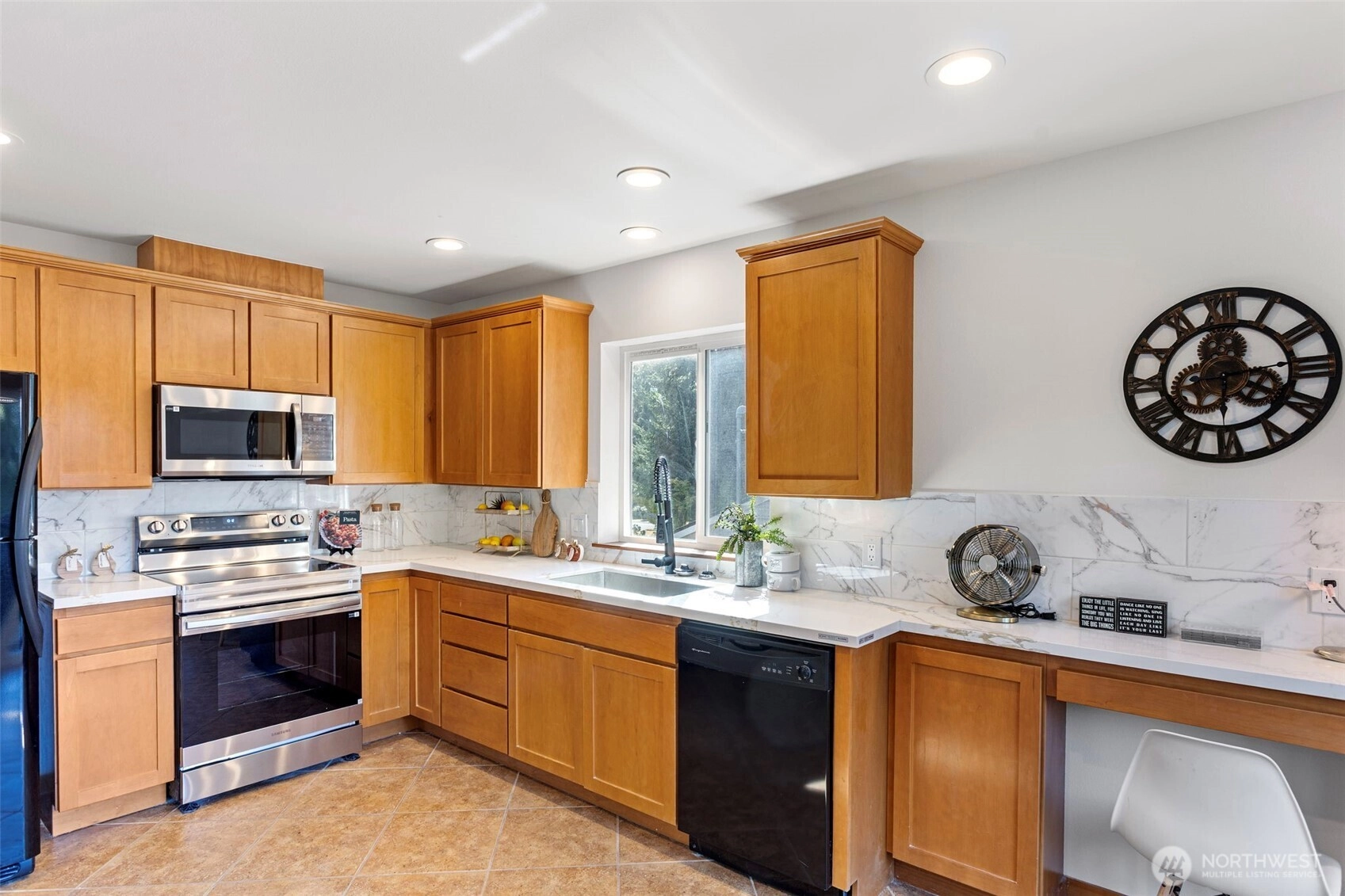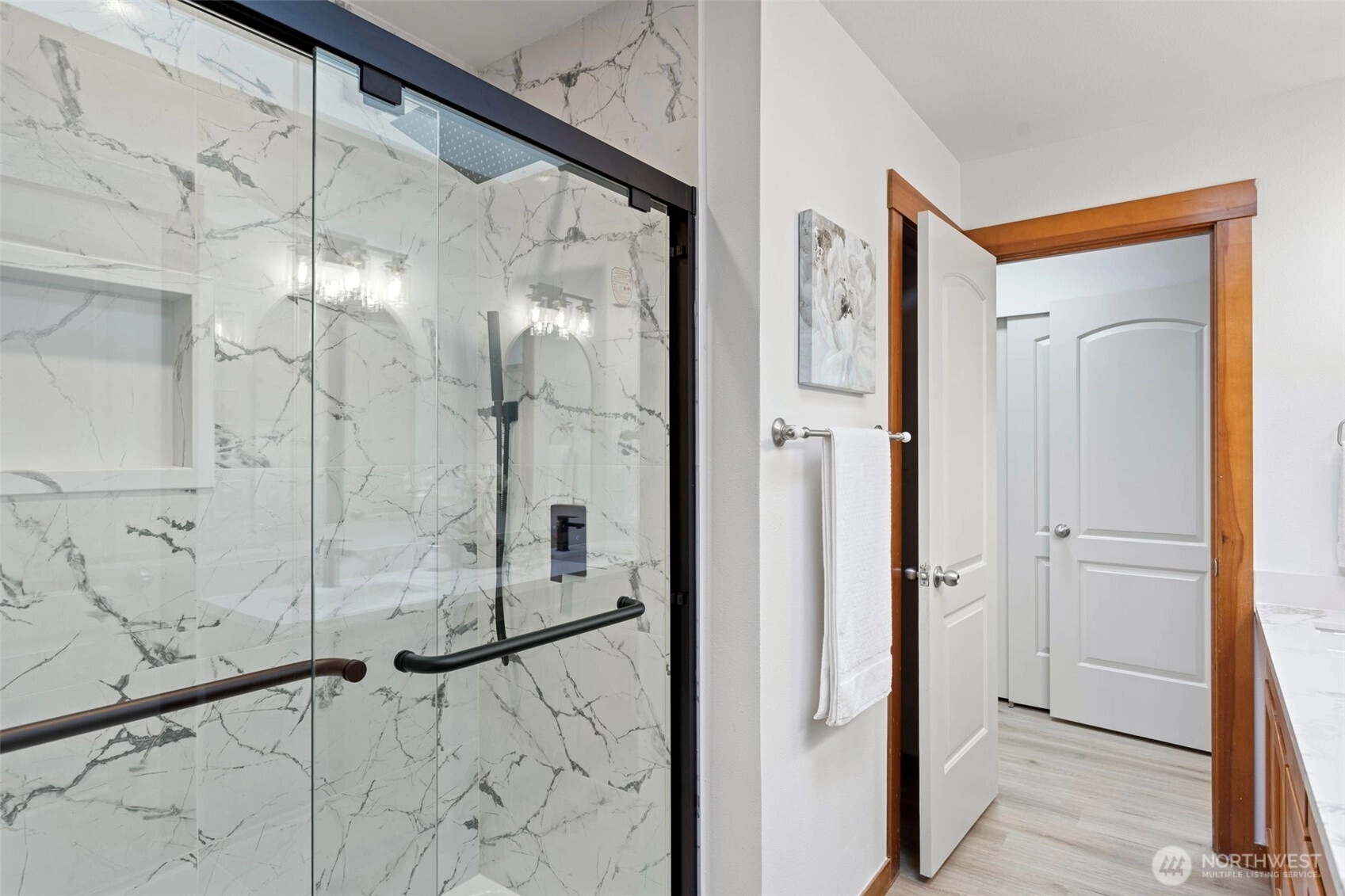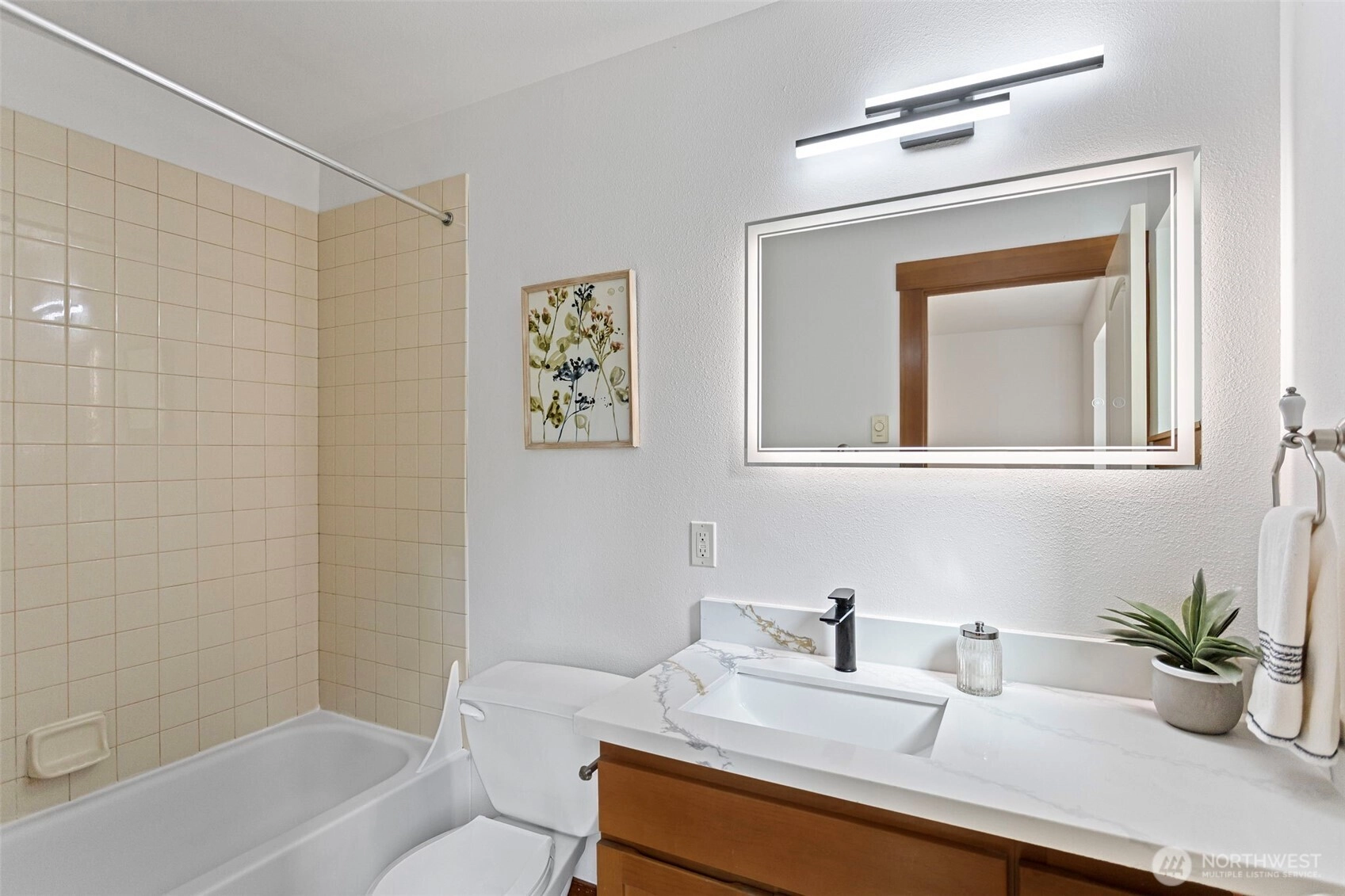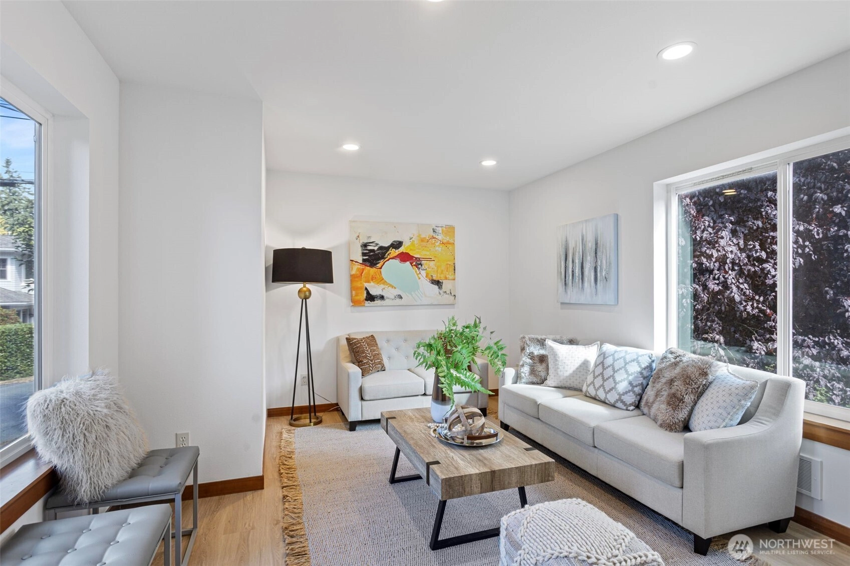 Beautifully updated Seattle home featuring fresh interior and exterior paint, a brand new roof, and stylish upgrades throughout. The kitchen shines with sleek quartz countertops, modern cabinetry, and updated light fixtures. Bathrooms have been enhanced with quartz vanities, new tile, and contemporary finishes. Luxury vinyl plank flooring flows through the main living spaces and stairs, offering durability and elegance. With thoughtful renovations and timeless upgrades, this move-in ready home blends comfort, function, and modern appeal in a convenient North Seattle location. Don't miss this one!