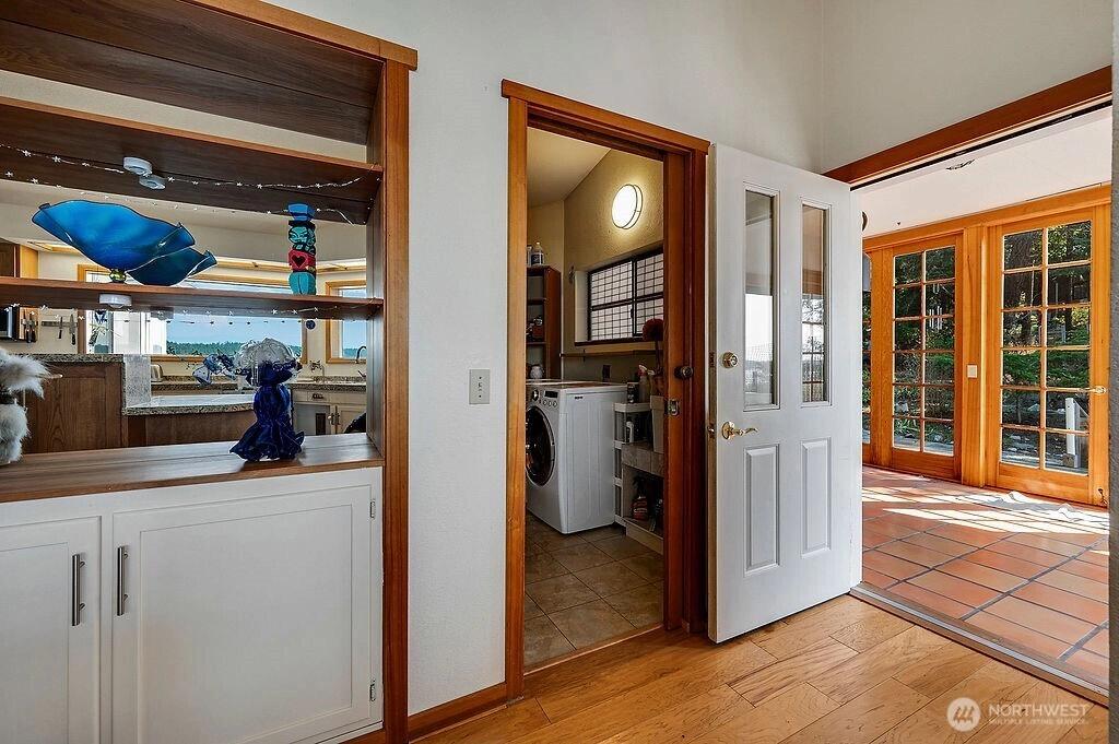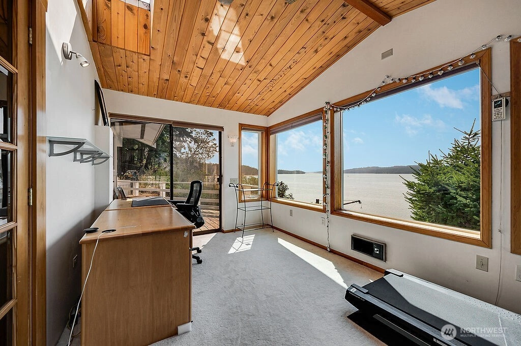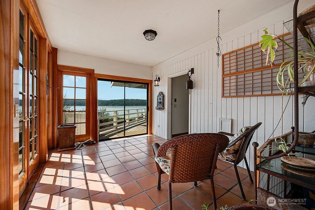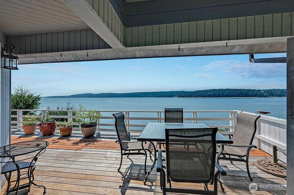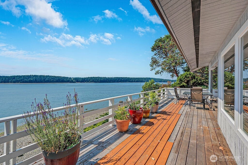 A rare opportunity to own a private waterfront retreat on a medium-bank bluff, just a few miles from Fort Flagler. This 2 bed/2 bath home combines natural beauty, quiet seclusion & endless recreation. Designed for single-level living, the main floor offers panoramic water views from the kitchen, dining & living rooms. The expansive basement provides abundant storage & flexible options; imagine a guest suite or recreation room. The detached oversized garage w/ shop space & carport accommodates all your hobbies and gear. Private beach stairs, protected by a rare bulkhead, lead to your own tidelands. Bask in all-day sun w/ western exposure, where the tranquil views of Kilisut Harbor give way to unforgettable sunsets over the Olympics.