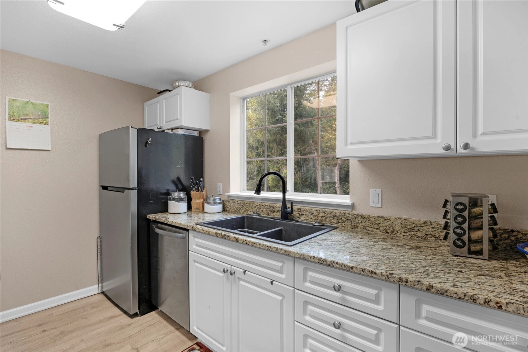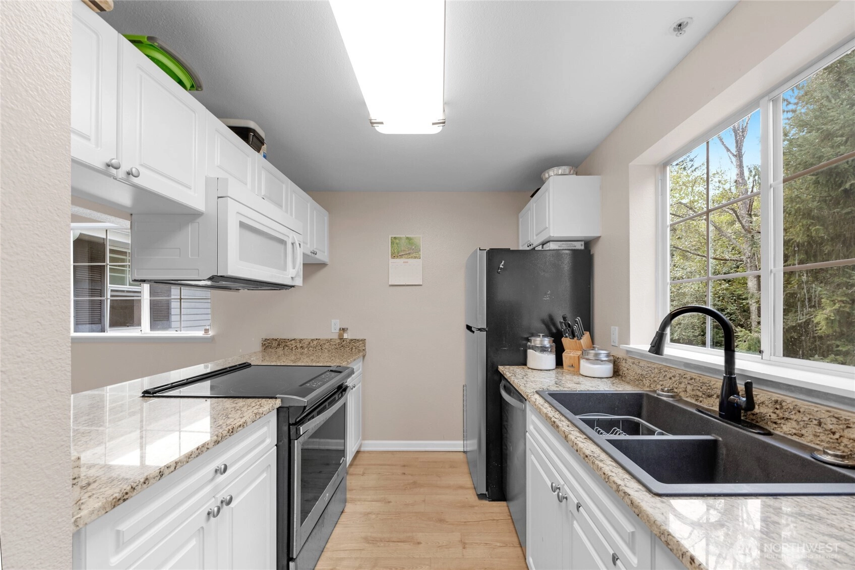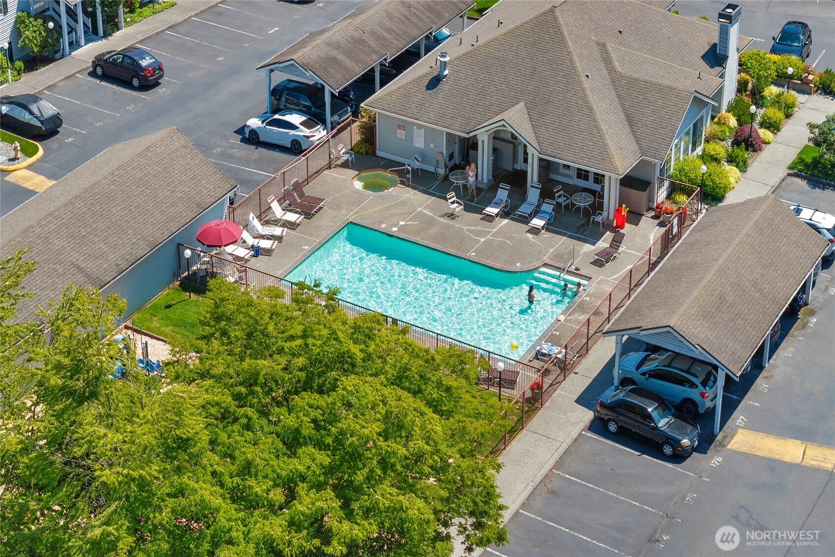 Discover the ease of condo living at Markland Woods! Step into this bright, spacious home featuring granite counters, new floors, & the convenience of in-unit laundry. The updated primary bath offers a walk-in shower for a spa-like feel. Start your mornings on the private balcony, sipping coffee surrounded by trees, your peaceful retreat in the city. Enjoy 2 parking spaces (incl. 1 covered/carport) & generous storage space on the balcony + extra storage unit near parking. The community offers resort-style living w/ a full gym, sauna, pool, hot tub, sport court, playground, clubhouse, tanning bed & garden space. All just mins from light rail, shops & dining. Comfort, convenience & community, it's all here!