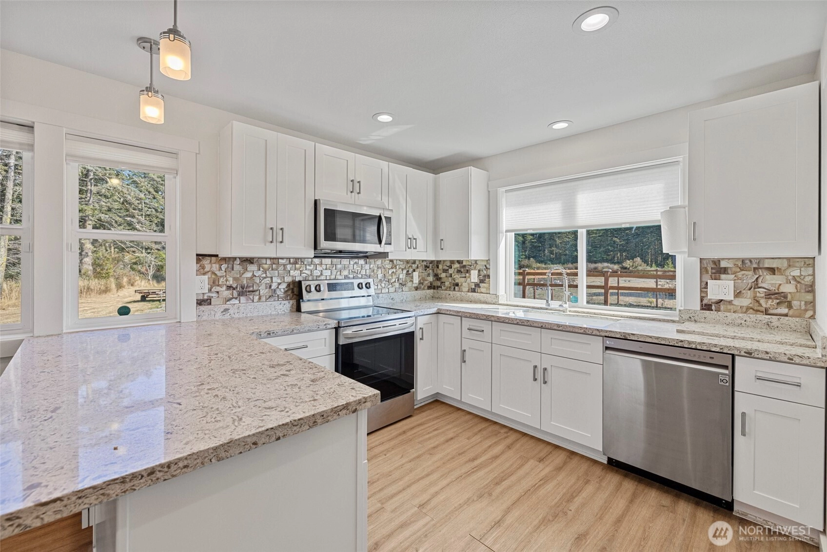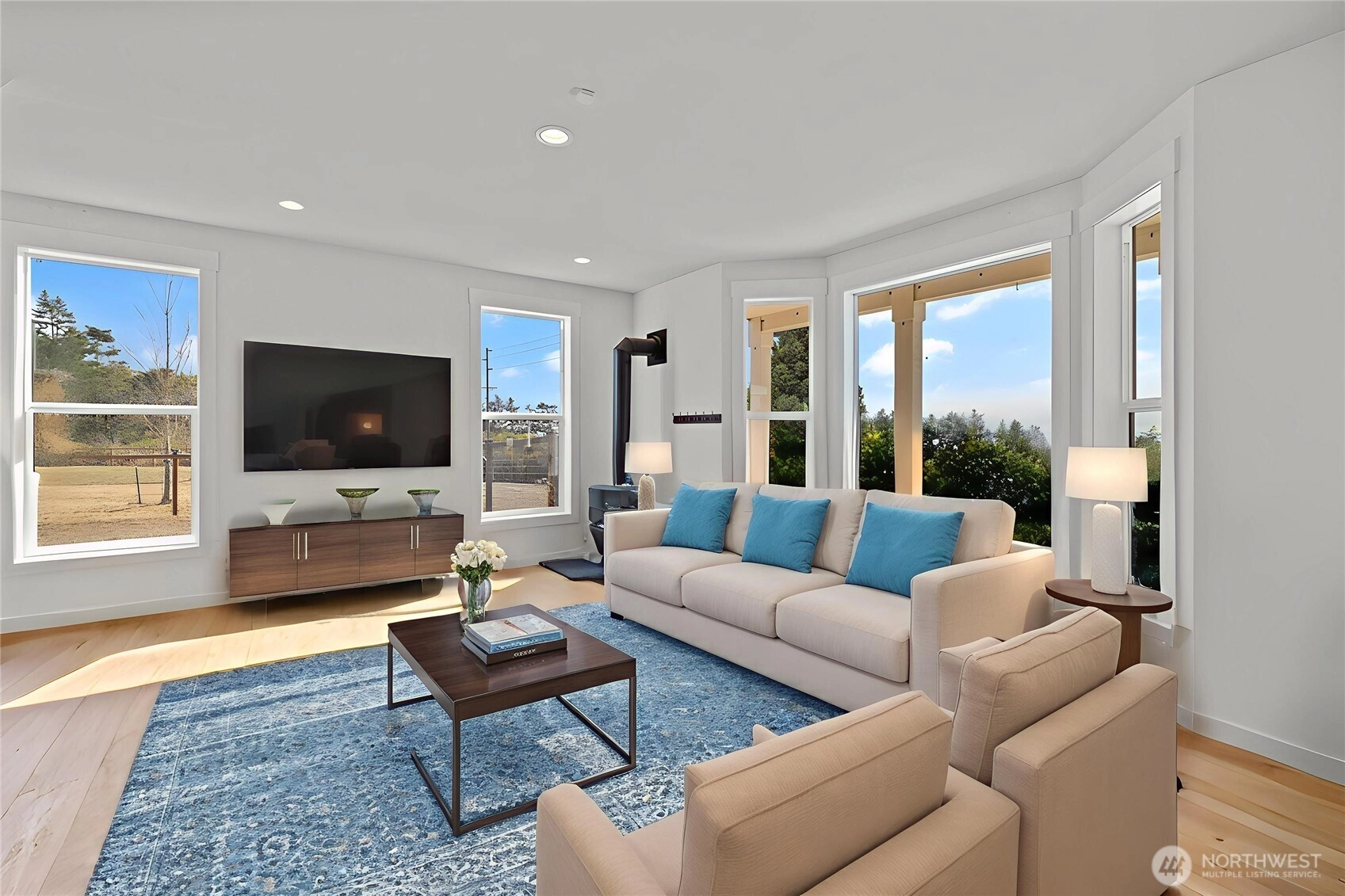 Enjoy forever sweeping views of the Puget Sound and Ebey's prairie from this beautiful mini farm located just minutes from Fort Casey & downtown Coupeville. The spacious main home is beautifully renovated, featuring an open concept chef’s kitchen w/ high-end appliances, bamboo floors & 2 main suites along w/ gorgeous views from both oversized living spaces. There is also a detached 1 bed 600 SqFt ADU with high-end finishes on its own 3-bedroom septic ready for future expansion. Don’t miss the ultimate 40x48 shop w/ RV parking, game room, + workshop. And for the farmer, the fenced pasture for chickens, goats, or the rest of your herd are here & ready to go! A large circular driveway, a whole house generator, + all the updates! Come explore!