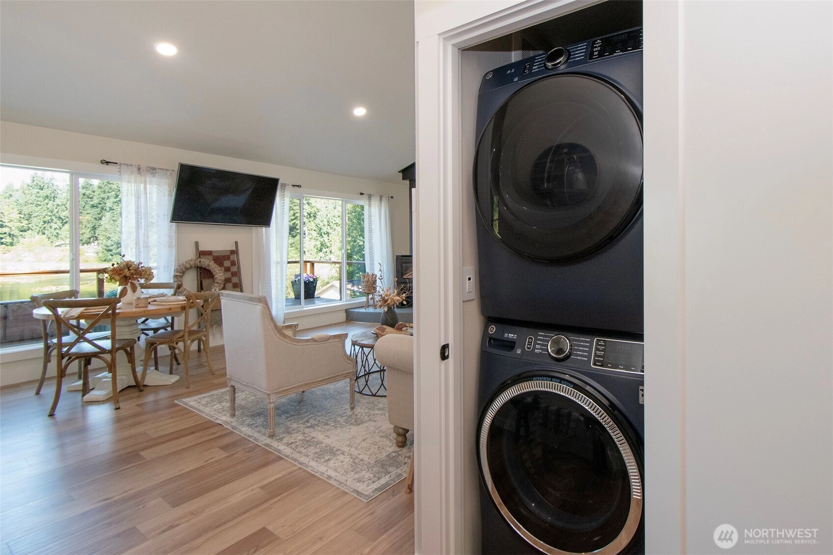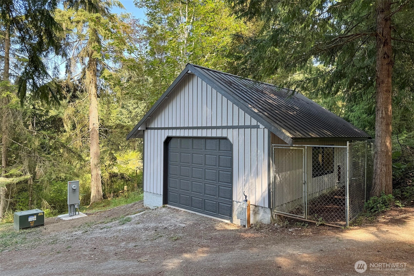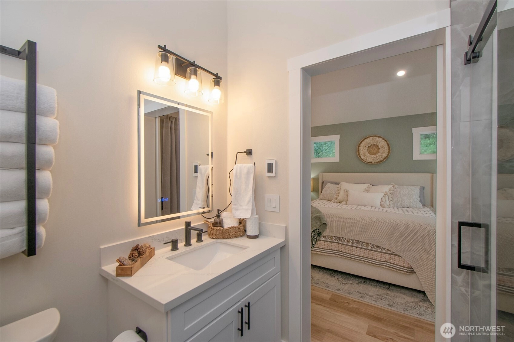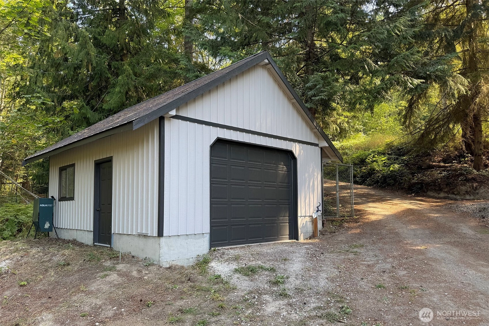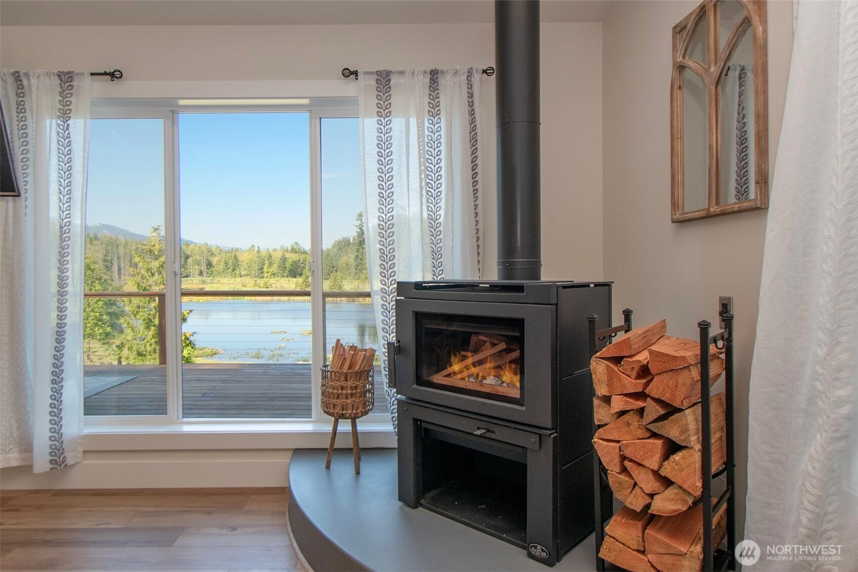 Abode Northwest is a modern, minimalist home inspired by the Pacific Northwest. With nearly 6 acres of premier waterfront on private Lake Sharon, this brand-new 2025 custom build boasts sweeping views of Lake Sharon and the Olympic Mountains, with a private dock and great bass fishing at your back door. Sunlit single-level 2 bed 2 bath living with vaulted ceilings and French doors to a west-facing deck for golden-hour sunsets. Spa-style primary bath with custom tile work and heated floors. Detached ADU with kitchen and bath, detached garage, cabana/gazebo, and outbuildings for gear and hobbies. Quiet dead-end lane—enjoy birdsong, stargazing, and the rhythms of nature. Classic simple Northwest living minutes to town, trails, and salt water