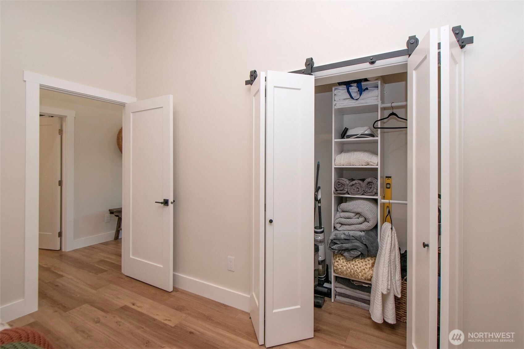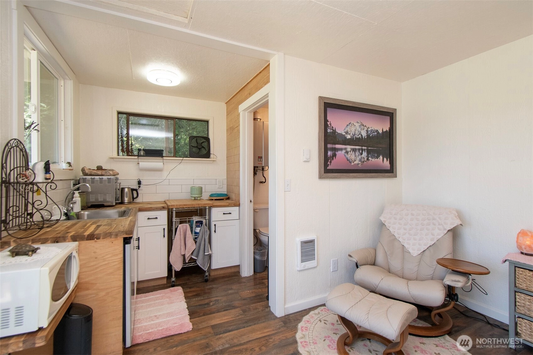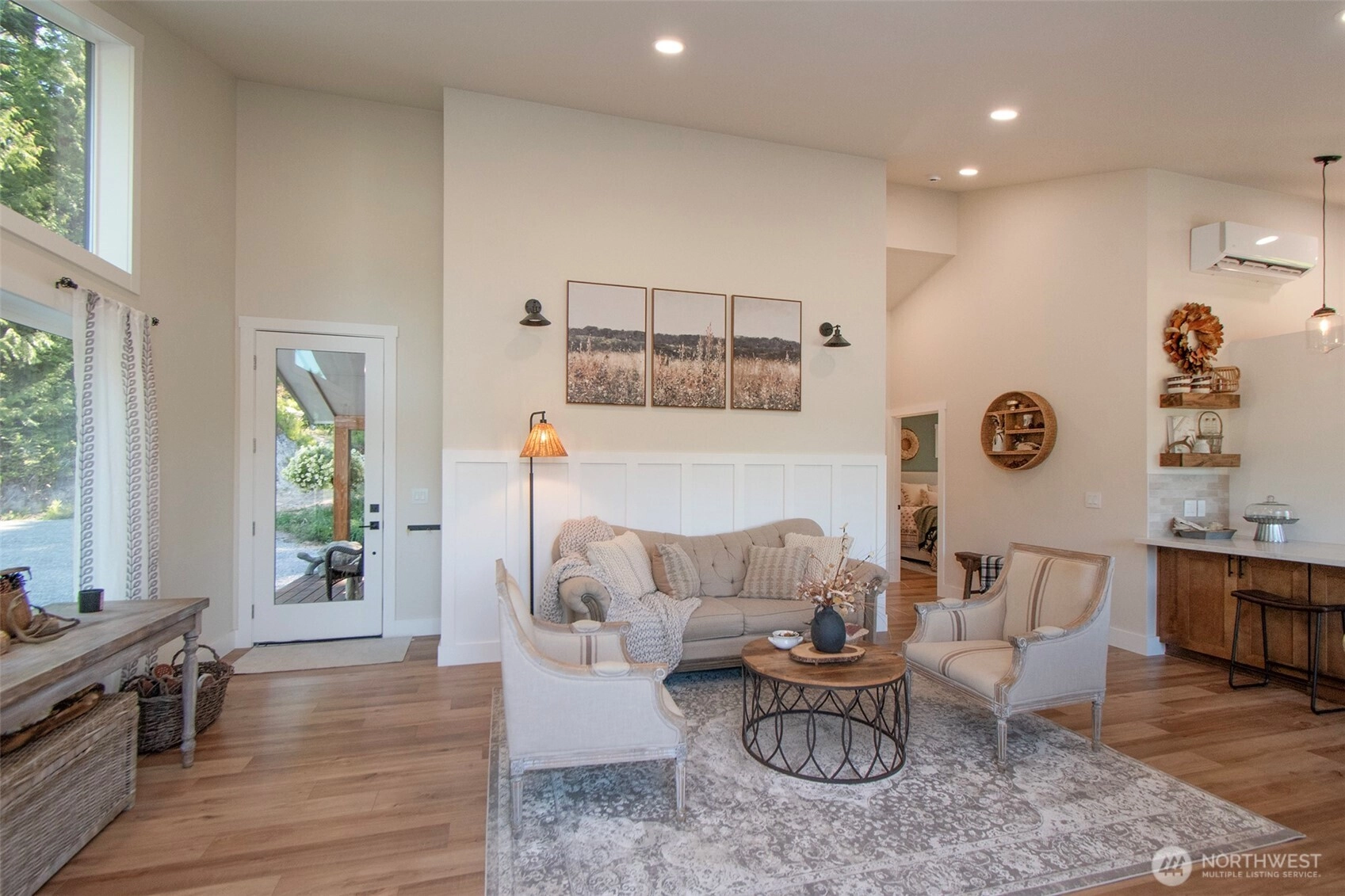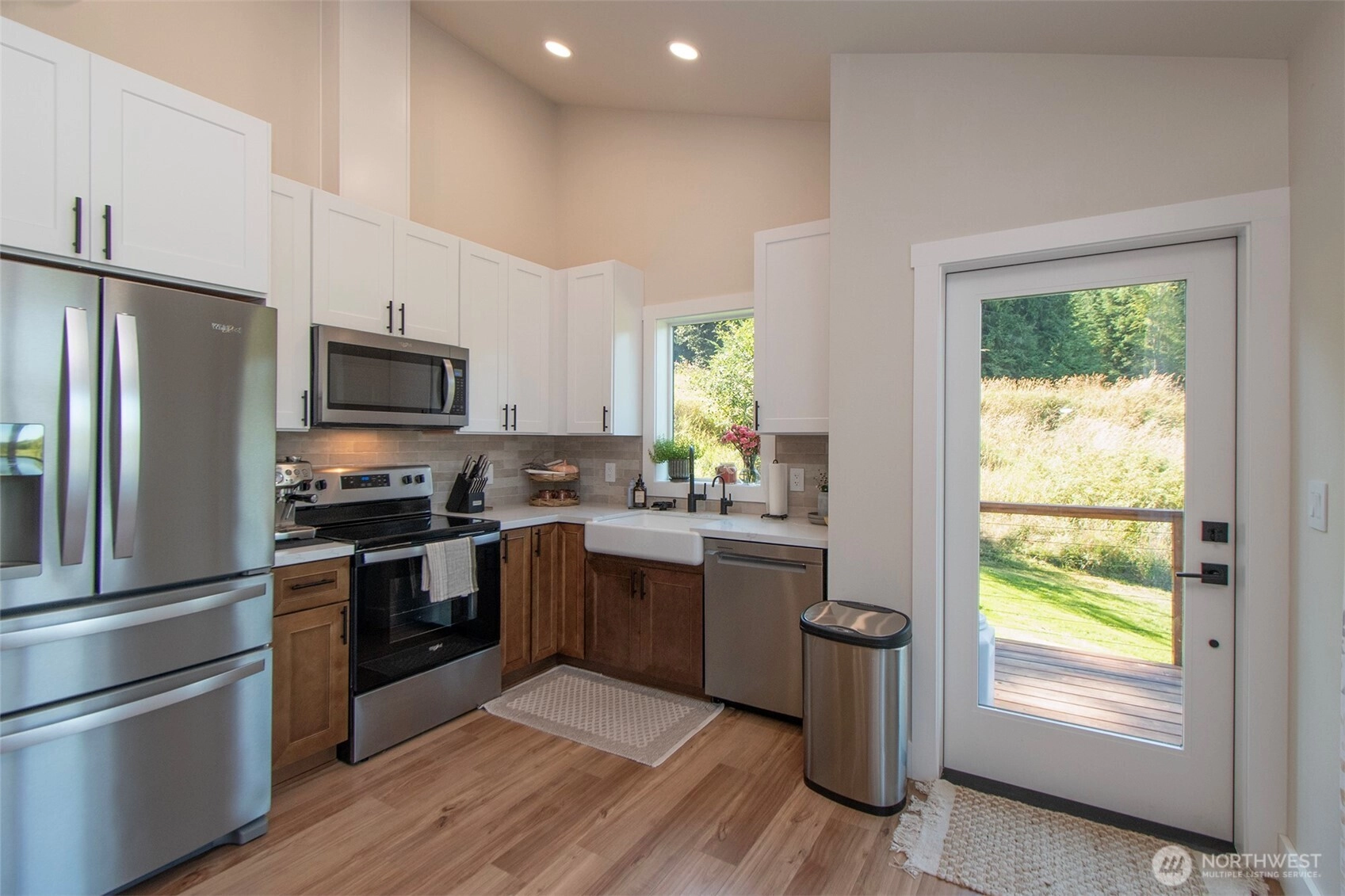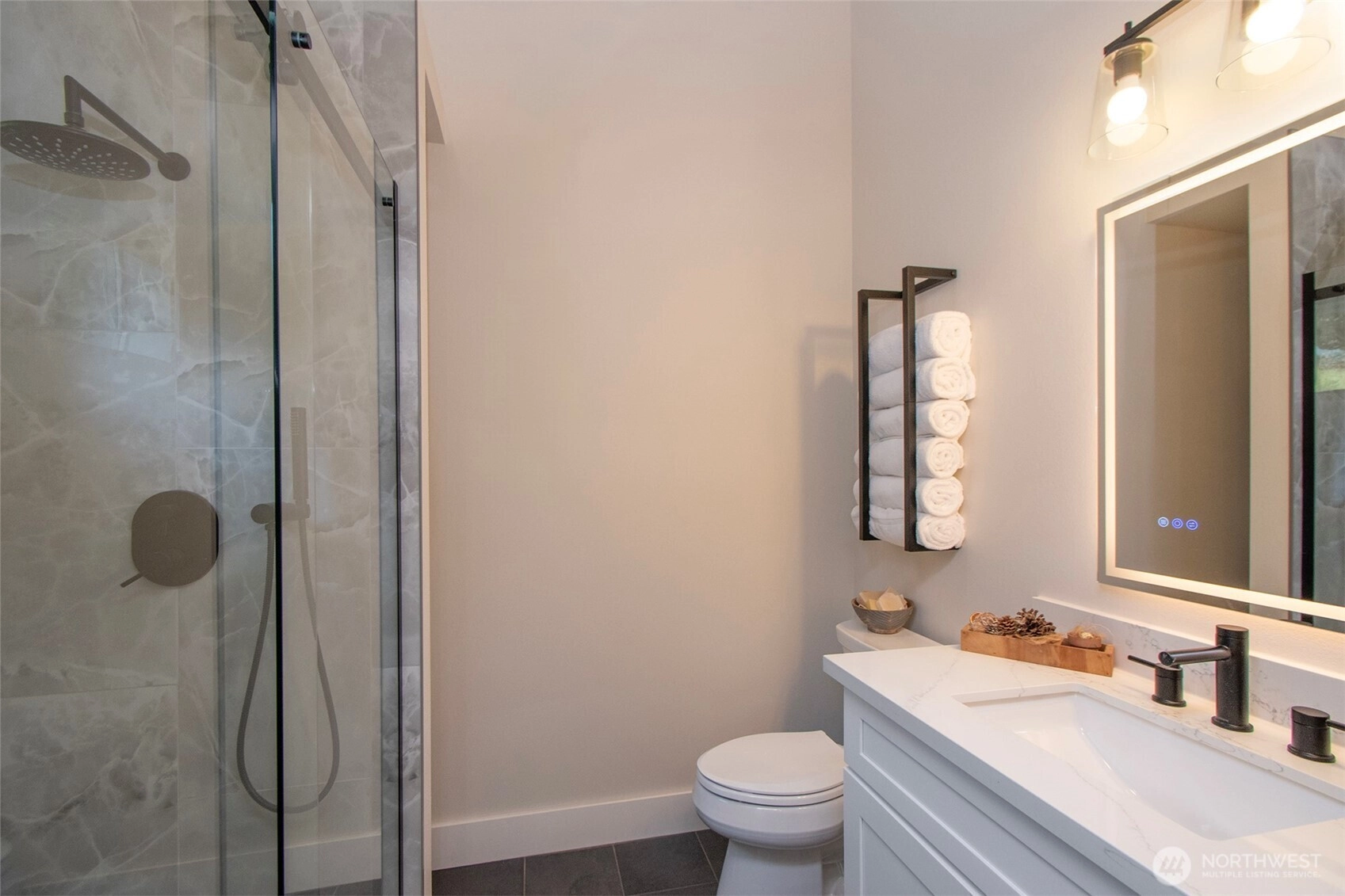 Abode Northwest is a modern, minimalist home inspired by the Pacific Northwest. With nearly 6 acres of premier waterfront on private Lake Sharon, this brand-new 2025 custom build boasts sweeping views of Lake Sharon and the Olympic Mountains, with a private dock and great bass fishing at your back door. Sunlit single-level 2 bed 2 bath living with vaulted ceilings and French doors to a west-facing deck for golden-hour sunsets. Spa-style primary bath with custom tile work and heated floors. Detached ADU with kitchen and bath, detached garage, cabana/gazebo, and outbuildings for gear and hobbies. Quiet dead-end lane—enjoy birdsong, stargazing, and the rhythms of nature. Classic simple Northwest living minutes to town, trails, and salt water