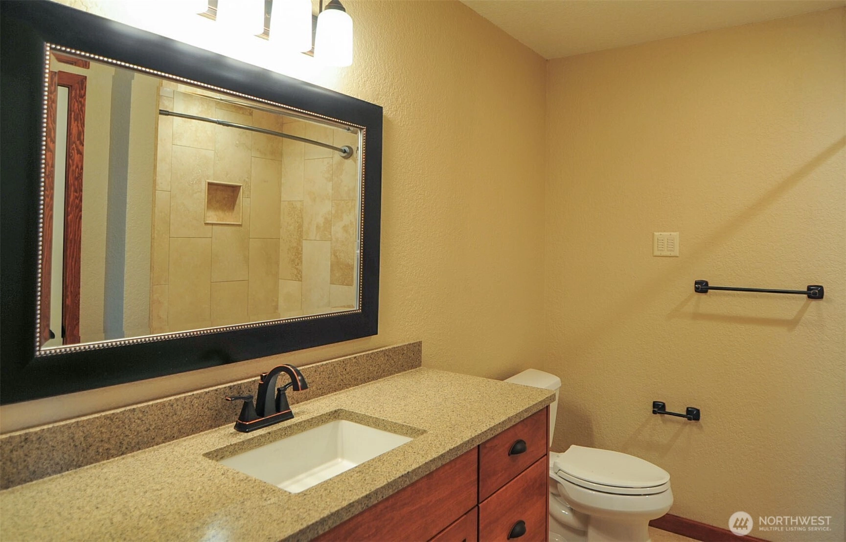 CAREFREE LIVING! Like new condo, views of the valley, with open and spacious 2 bedroom, 2 bath home. Enjoy convenient one level living featuring slate entry, granite counter-tops, stainless-steel appliances with tile kitchen, bathrooms and laundry room. The great room has a gorgeous rock & tile fireplace, and the master bath features a lovely, tiled walk-in shower. Single car garage, 1 additional parking space.