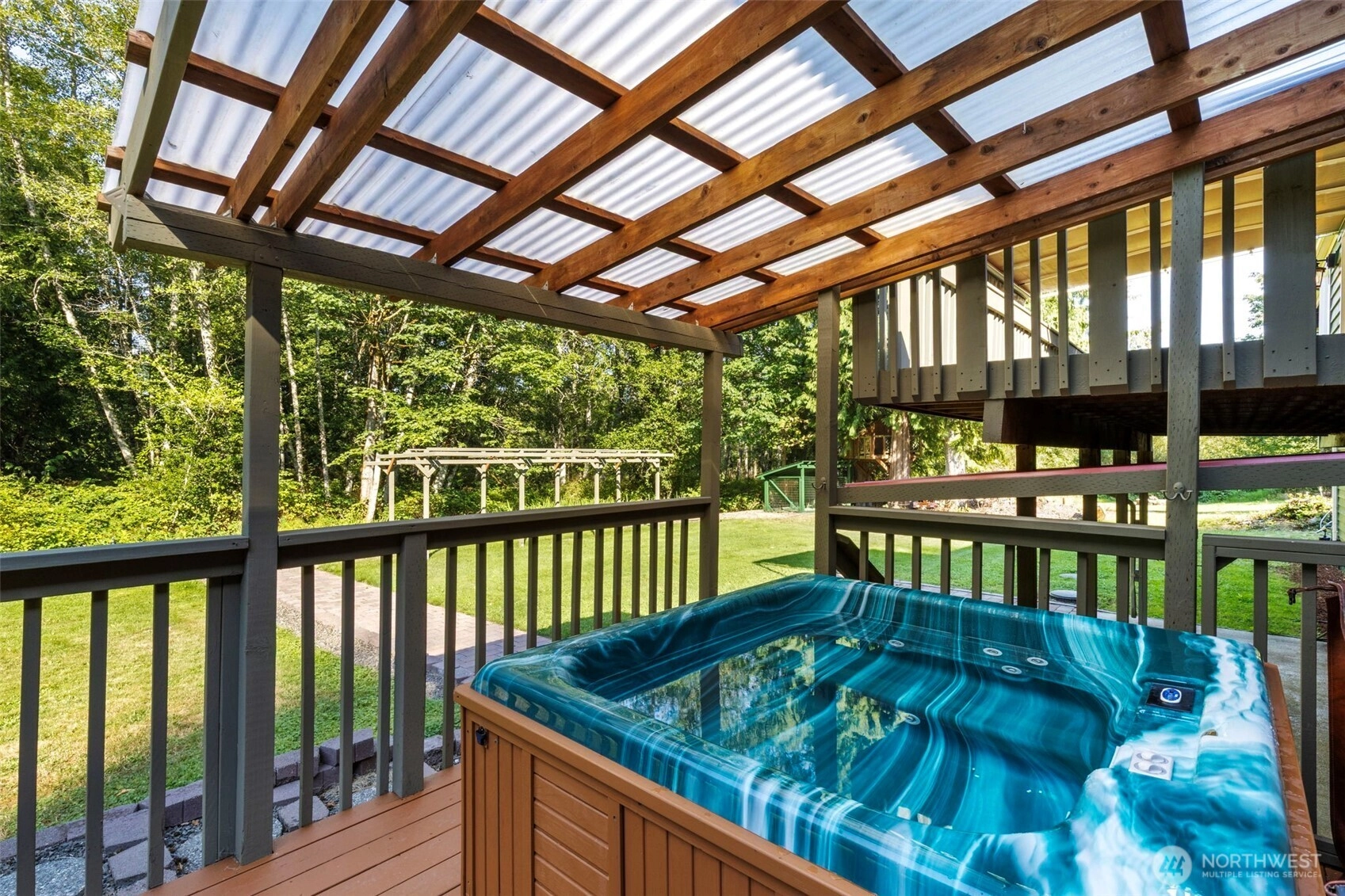 Private retreat on 5.3 acres on Kingston’s desirable Country Woods Lane. You’ll be visited by deer, birds, & bunnies at this peaceful setting, surrounded by stately sun dappled trees. Offering 3 bedrooms, 3 bathrooms, and 2,568 sq ft, the home features a spacious main floor primary suite. Cook up delicious memories in the spacious kitchen, with stainless appliances & ample storage. Fresh carpet & soaring ceilings enhance the inviting living room. Wind down in the hot tub overlooking the peaceful territorial views. Huge downstairs family room is perfect for entertaining, hobbies, or movie nights. Oversized carport is ideal for boat/RV parking. Immaculately maintained and move in ready. Come home to your very own inviting oasis!