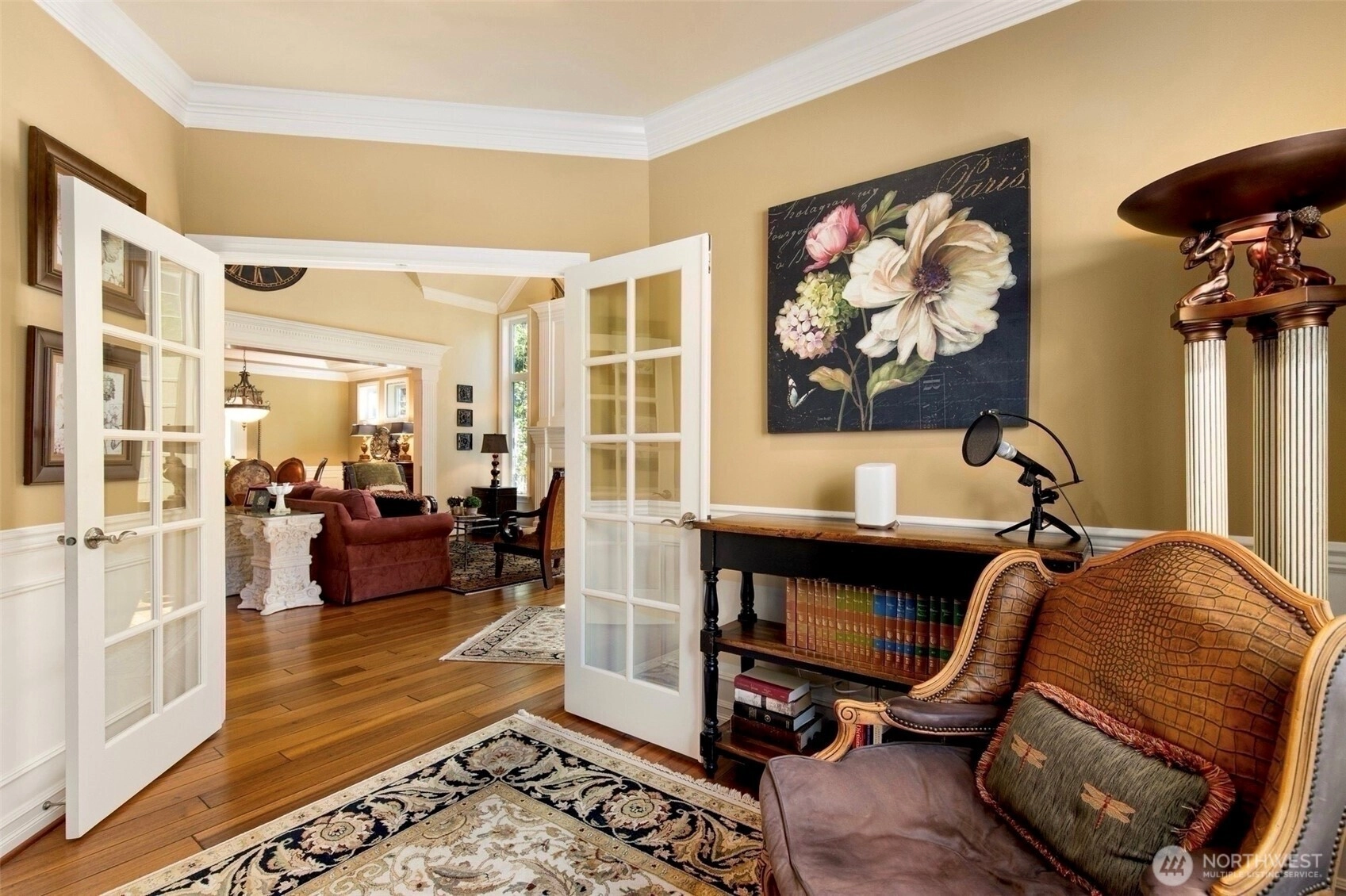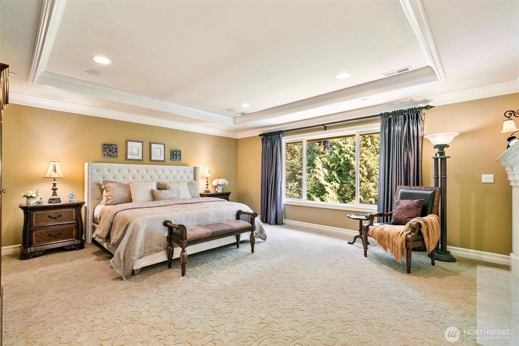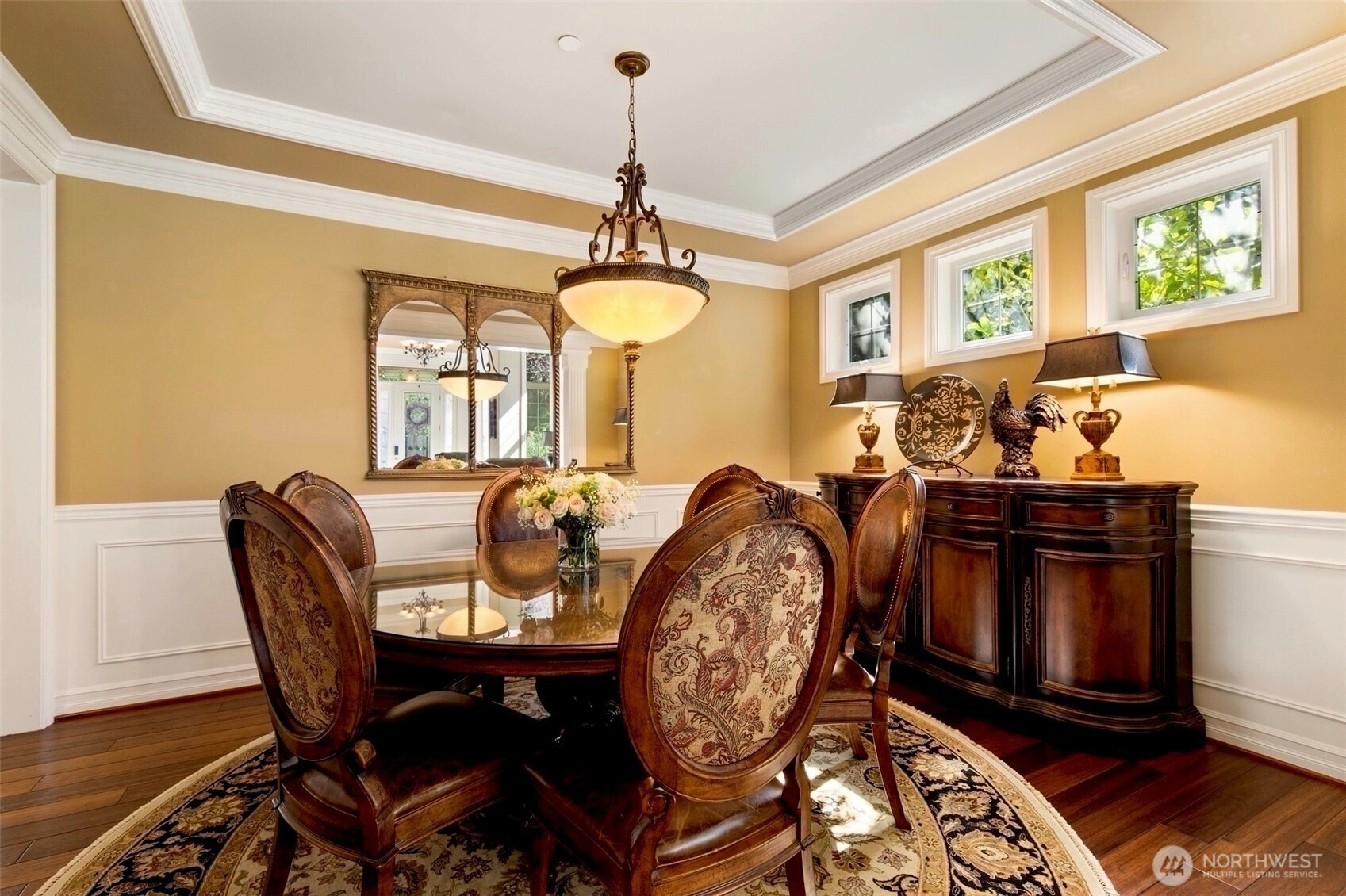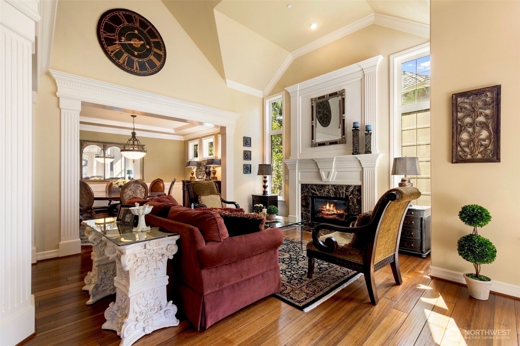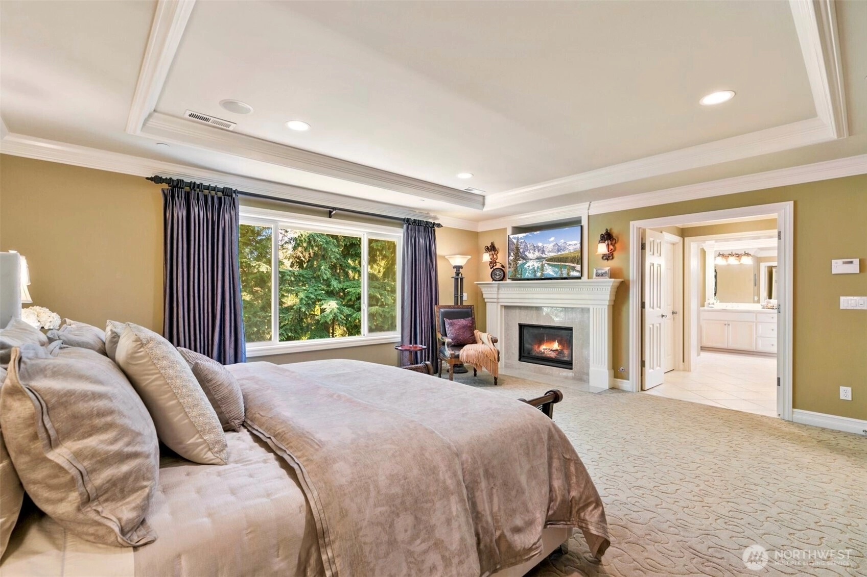 Timeless Buchan luxury in Mill Creek’s premier River Crossing. Private greenbelt cul-de-sac setting with 4,770 sq ft features soaring ceilings, mahogany floors, exquisite millwork, & leaded glass accents. Gourmet kitchen offers a 48” Thermador, Sub-Zero Pro, Meile espresso, slab granite island with Brizo touch faucet, & custom cabinetry. Versatile plan includes 5 BD, 4.5 BR, executive office, theater, & bonus room. Grand primary suite with a fireplace, spa bath, rain shower, and dual walk-ins. Landscaped yard, tranquil triple fountain, expansive Trex deck, lighted sport court, & irrigation. Dual A/C, tankless water, integrated whole-home audio, and a finished 3-car garage. Lower-level MIL potential. Walk to Town Center, golf, & parks.