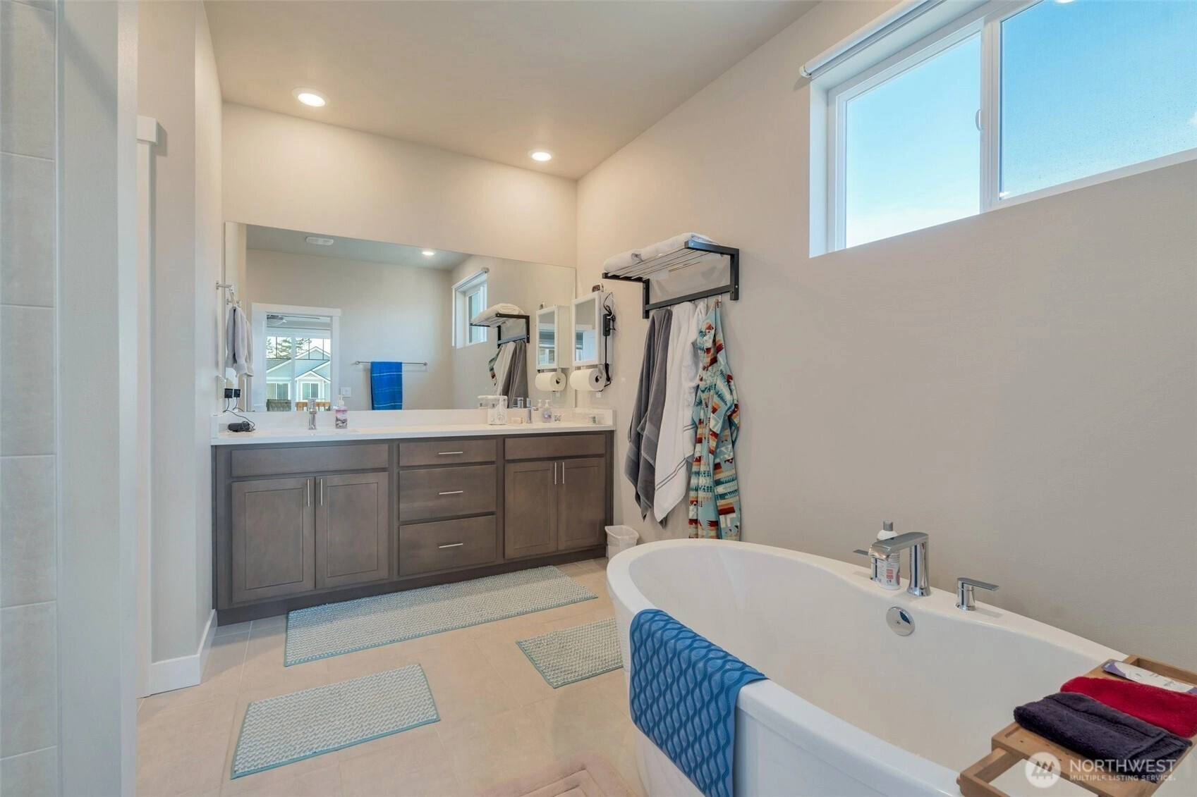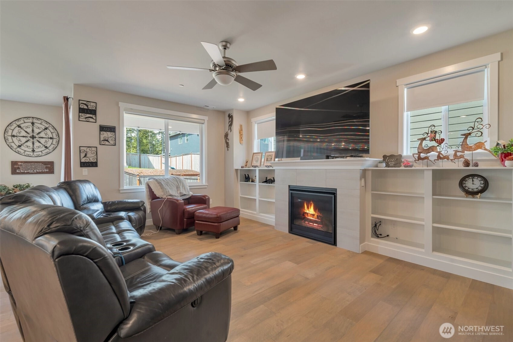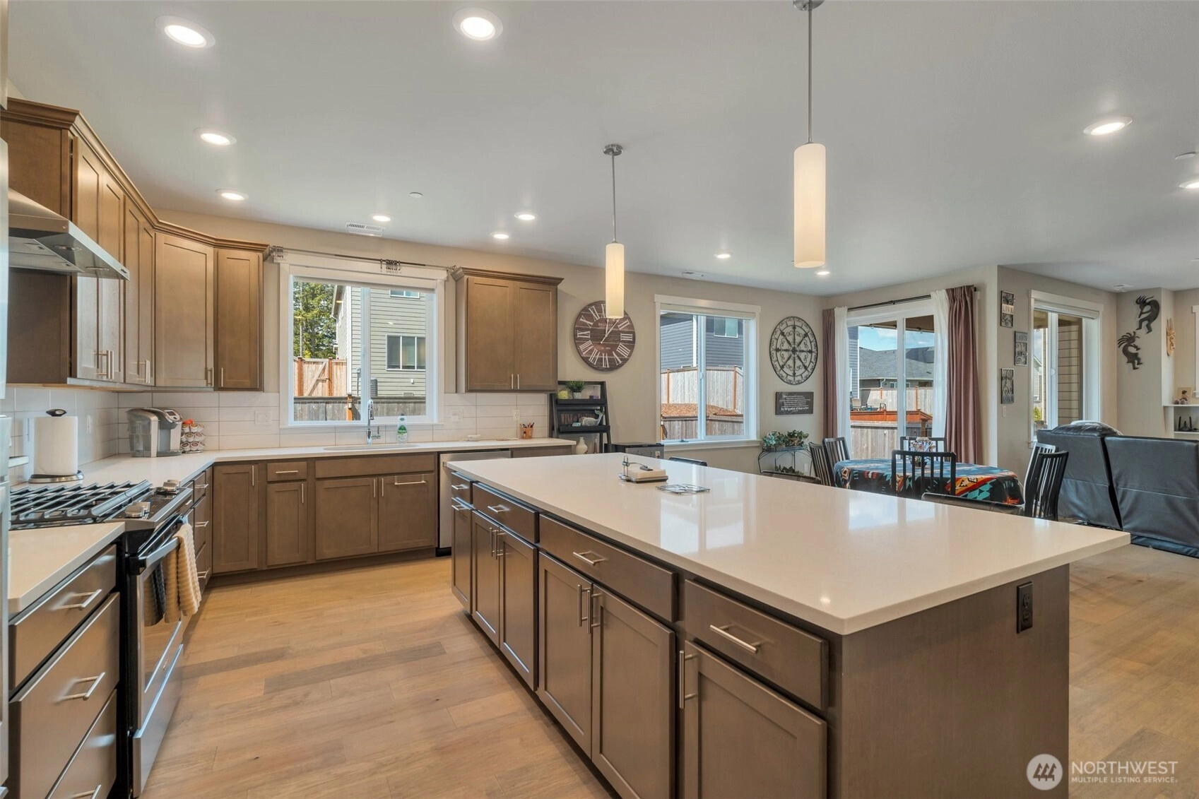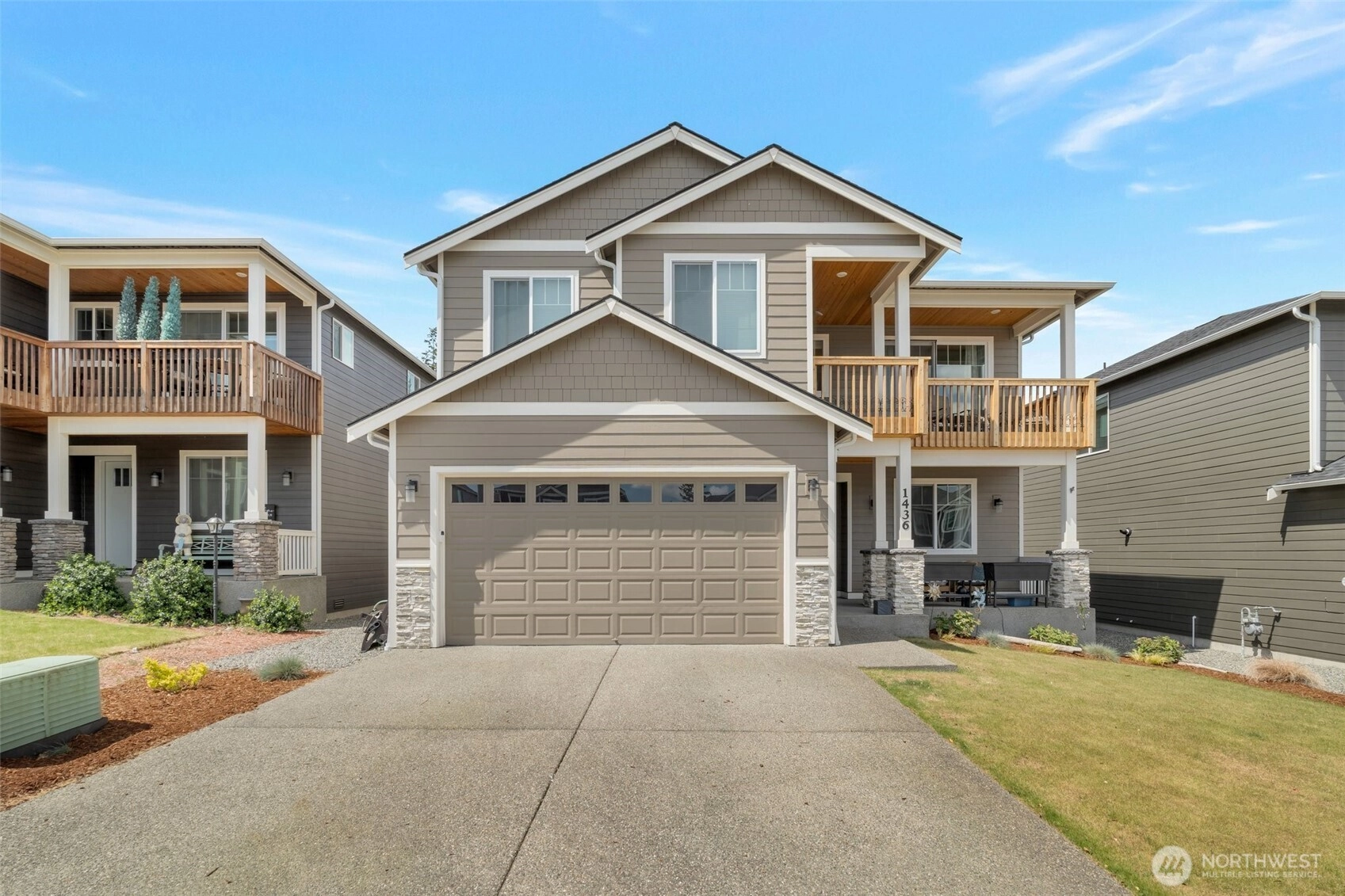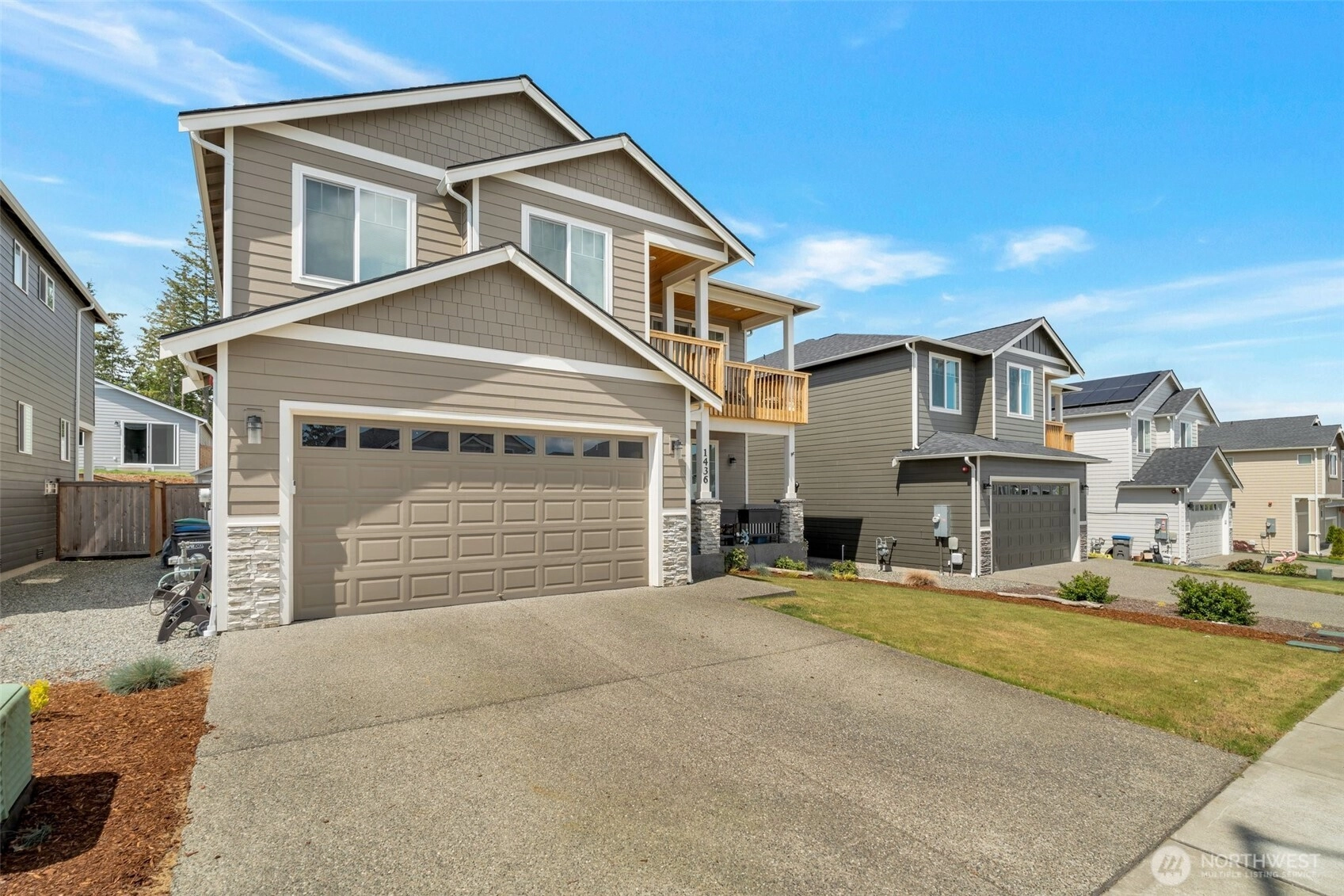 Light & bright, like new, craftsman home in Soundview Estates. 9' ceilings, rich hardwood flooring & open floor plan. Large Chef kitchen with island, walk in pantry, custom cabinetry, quartz counters, stainless appliances, smart home features. Open to great room with gas log fireplace & built in shelves. Access to private fenced backyard with covered patio & storage shed. Bonus room/4th bedroom, formal dining. Upper floor generous Primary Suite with walk in closet, private covered view deck, 5-piece bath. 2 additional bedrooms, full bath, large bonus room/bedroom & generous laundry with sink & storage. Air conditioned. Oversized 2 car garage with storage. Comm. Park. Easy access to conveniences, parks, PSNS, Ferry. $5,000 buyer credit!