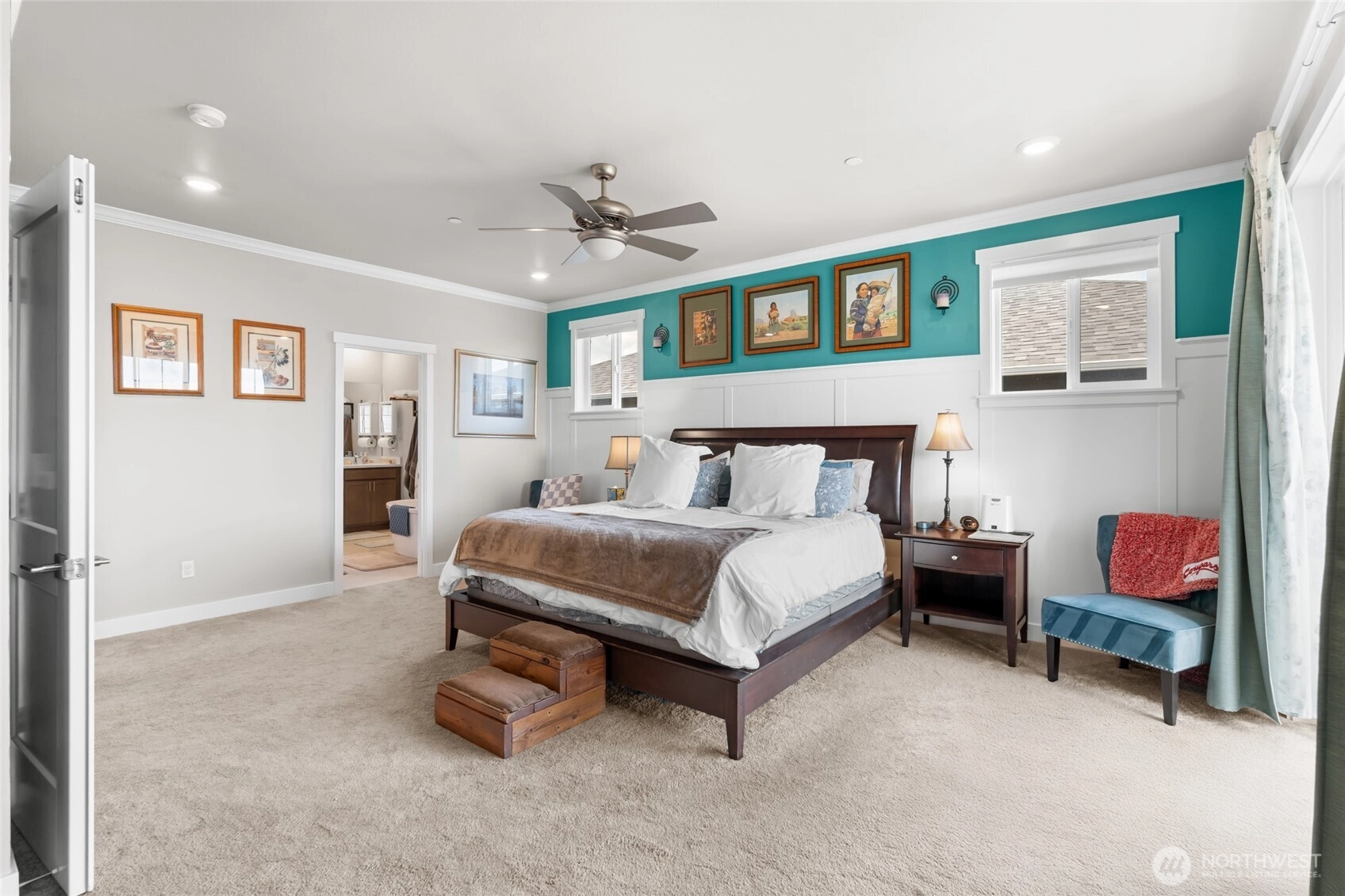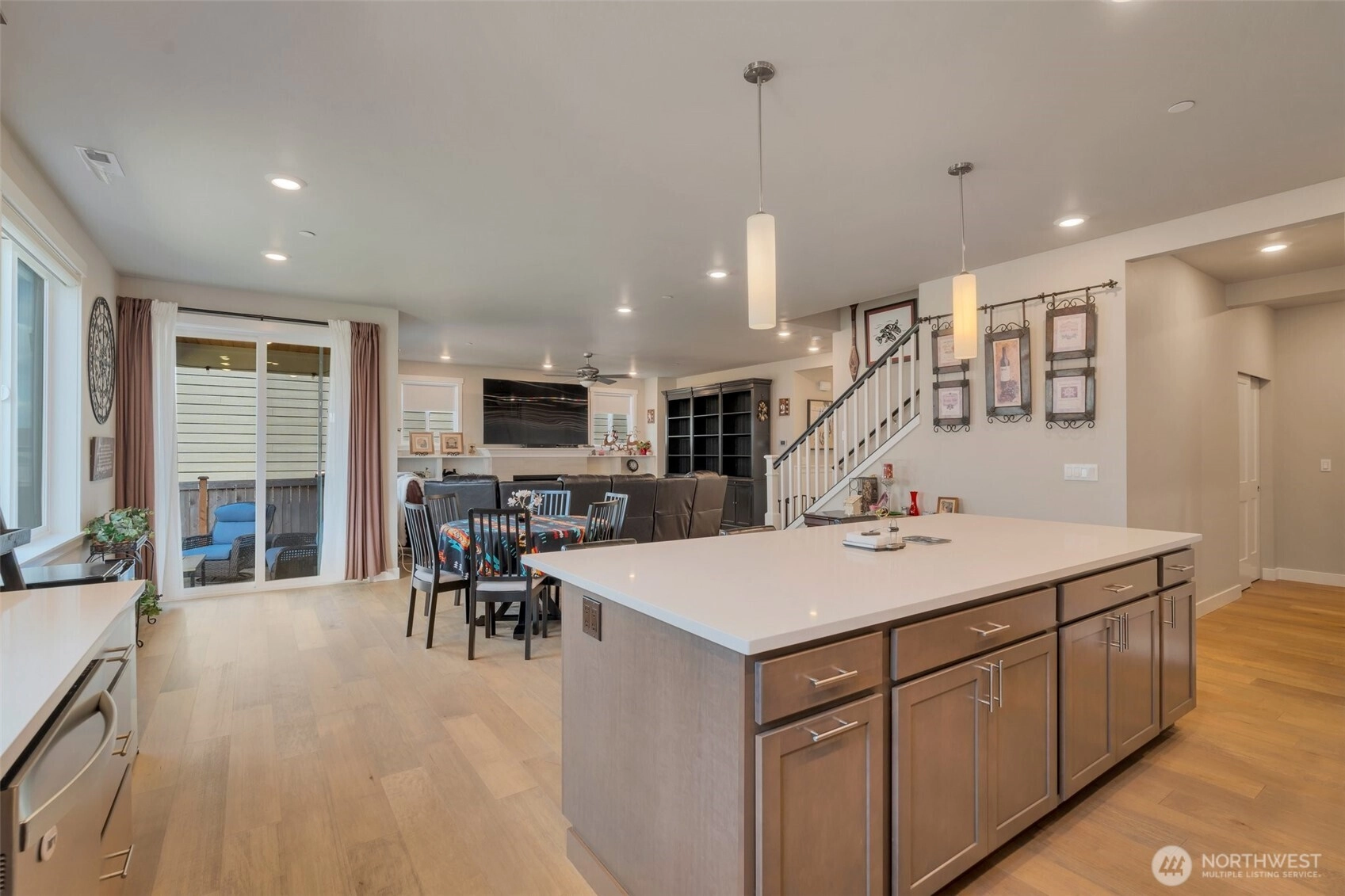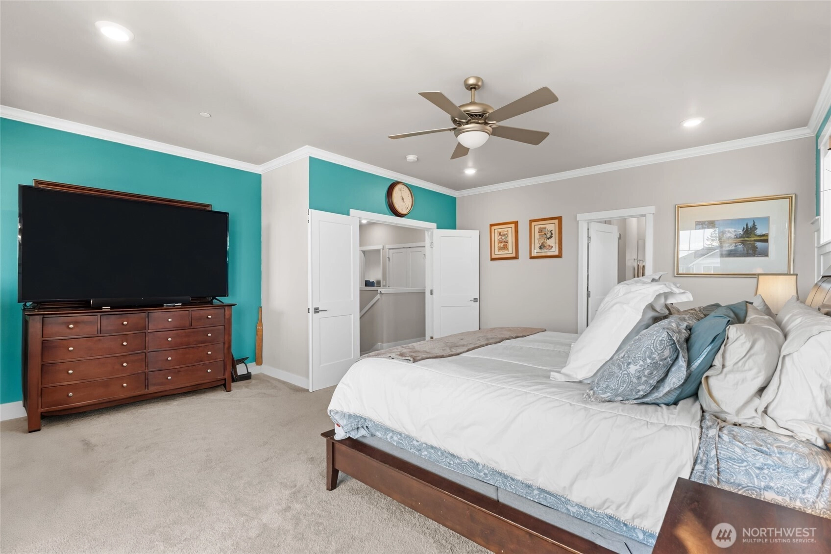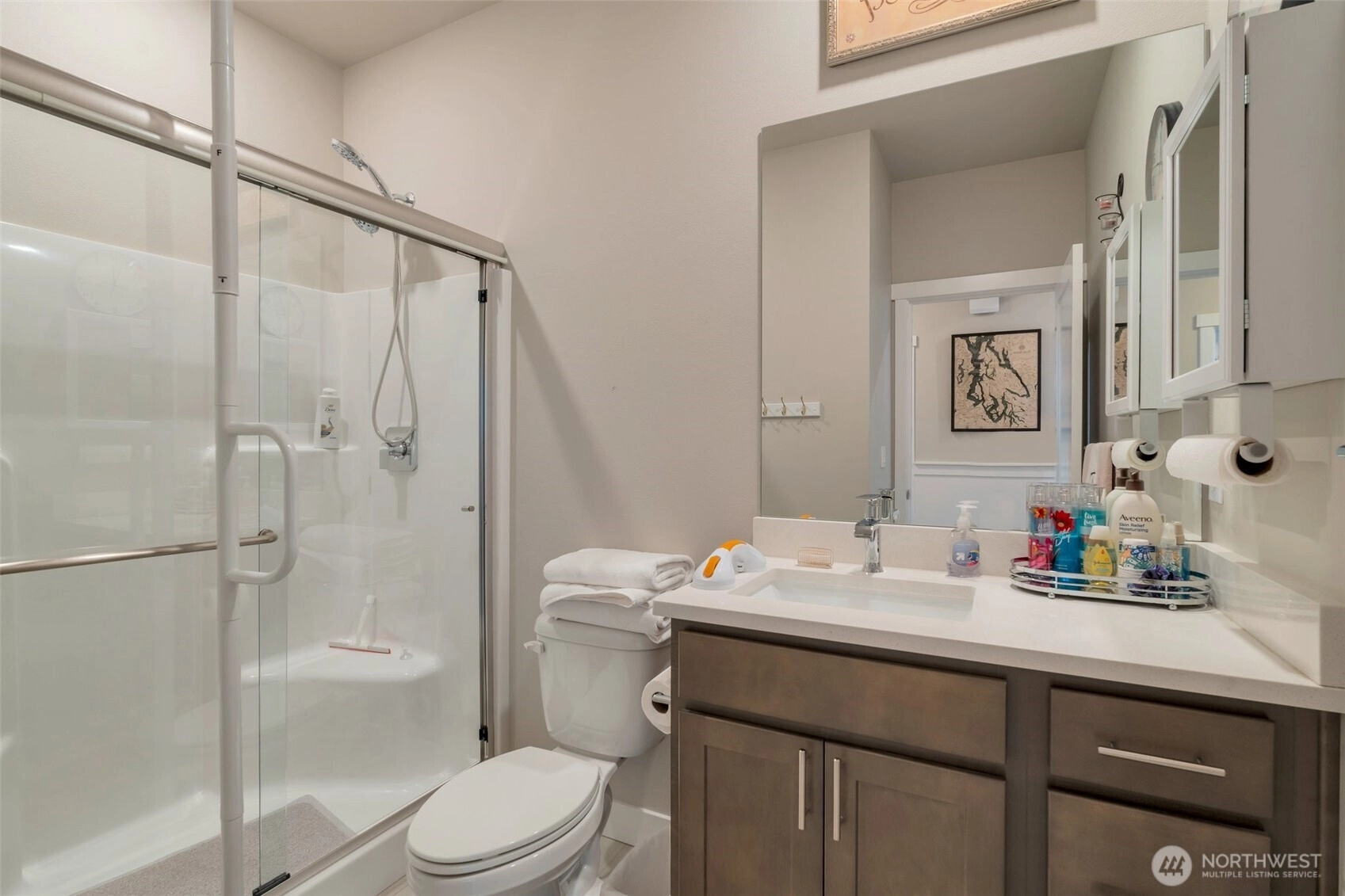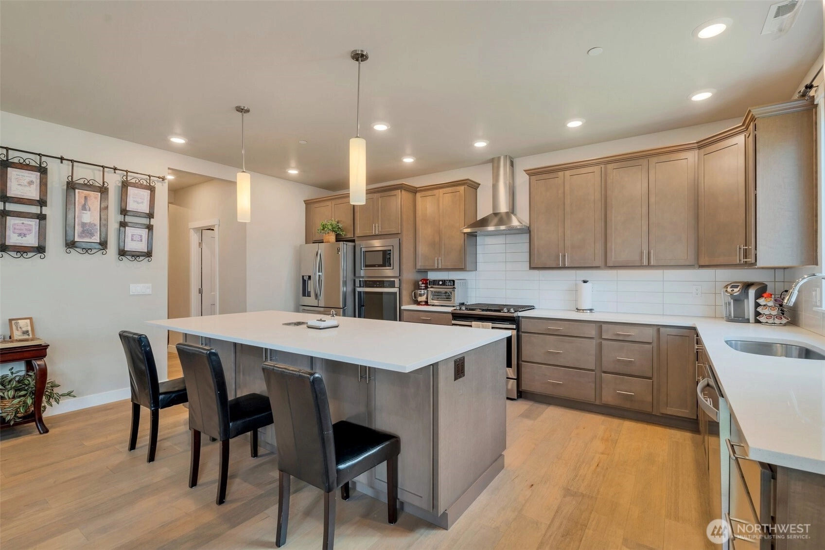 Light & bright, like new, craftsman home in Soundview Estates. 9' ceilings, rich hardwood flooring & open floor plan. Large Chef kitchen with island, walk in pantry, custom cabinetry, quartz counters, stainless appliances, smart home features. Open to great room with gas log fireplace & built in shelves. Access to private fenced backyard with covered patio & storage shed. Bonus room/4th bedroom, formal dining. Upper floor generous Primary Suite with walk in closet, private covered view deck, 5-piece bath. 2 additional bedrooms, full bath, large bonus room/bedroom & generous laundry with sink & storage. Air conditioned. Oversized 2 car garage with storage. Comm. Park. Easy access to conveniences, parks, PSNS, Ferry. $5,000 buyer credit!