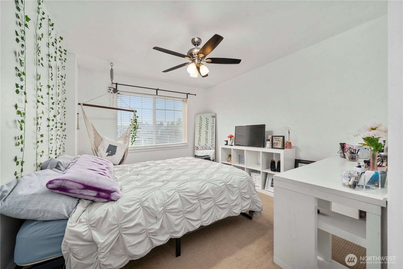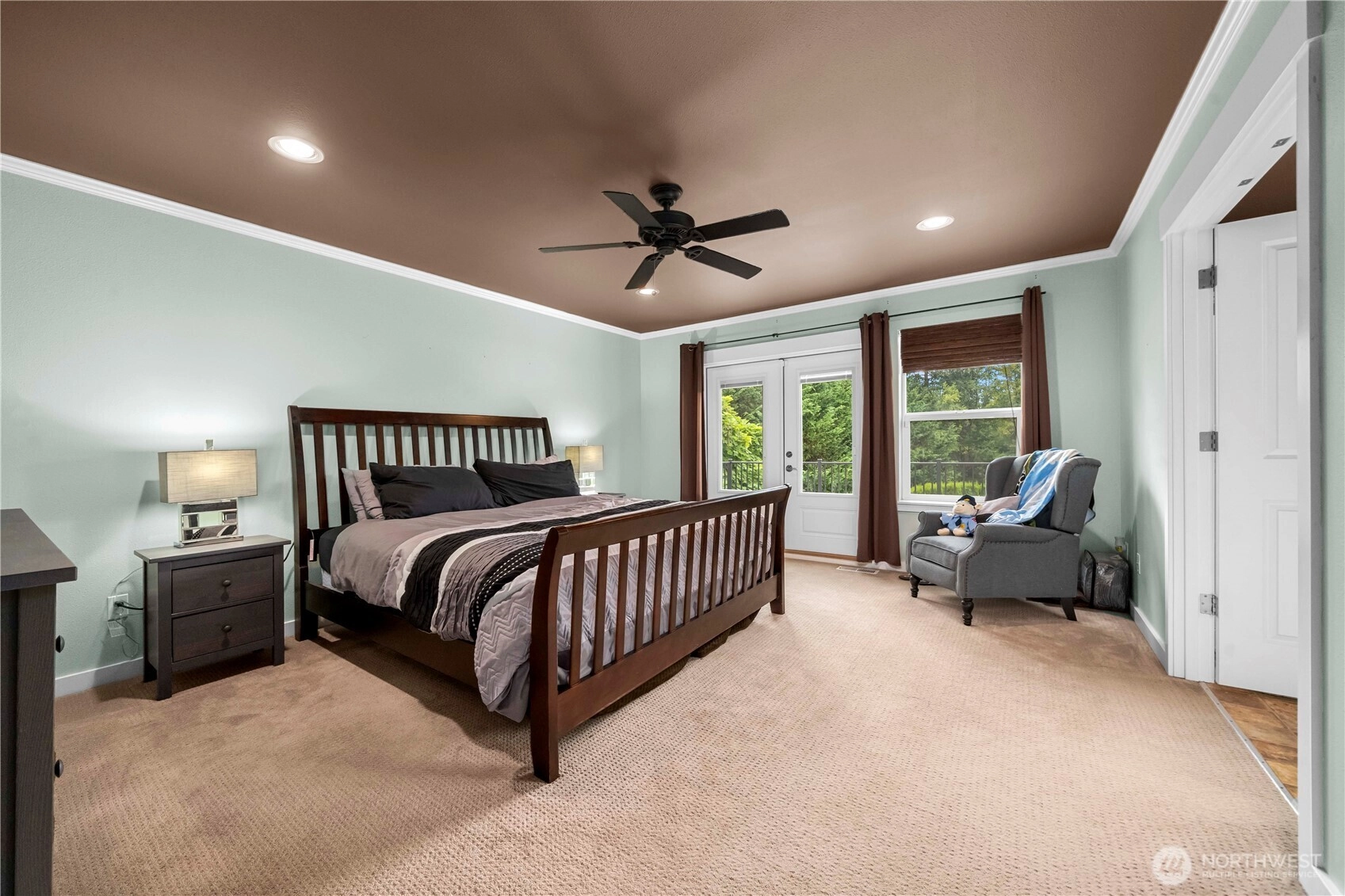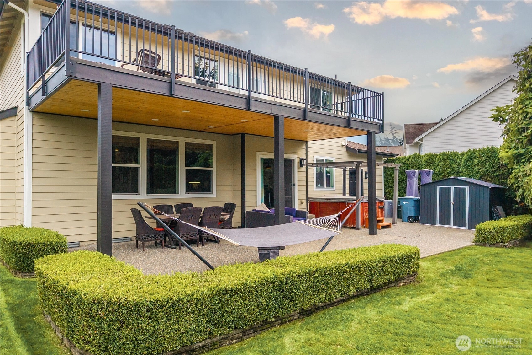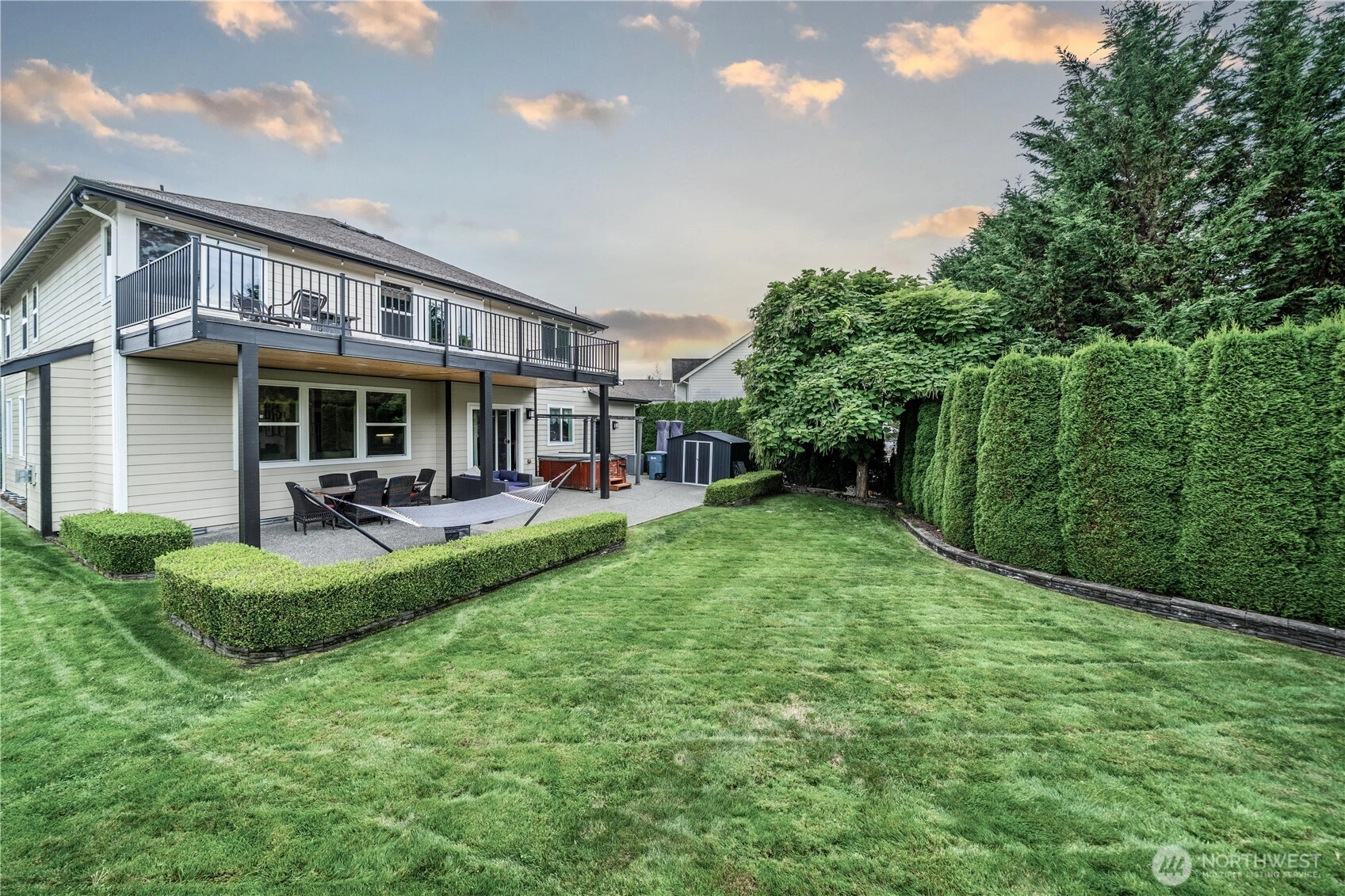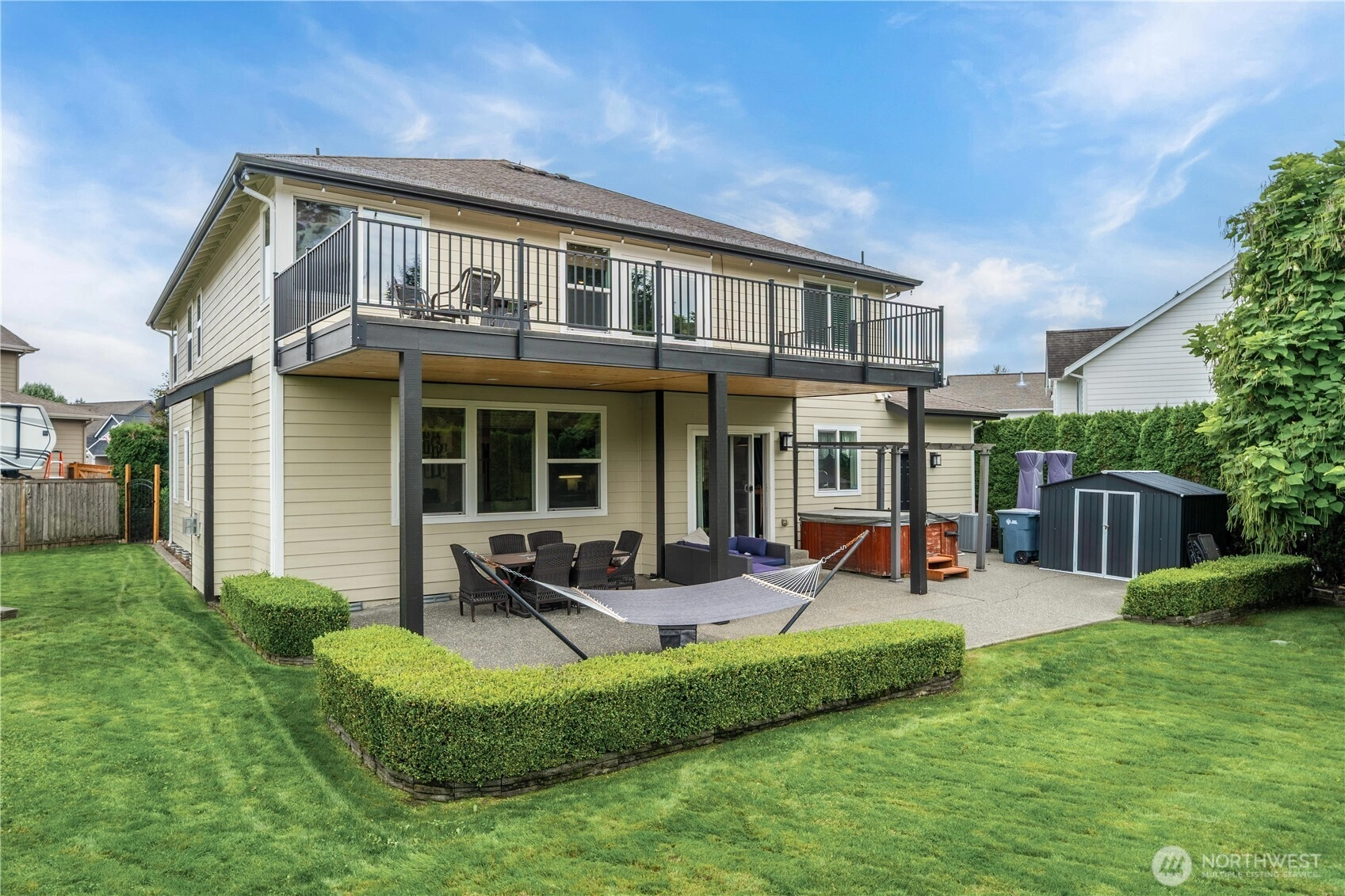 If you're looking for a beautiful home with privacy in an exceptional neighborhood that's minutes from town but feels remote, this is the house for you! Nearly 3200SF & features a large Living/Dining space w/ample light, a bedroom on main w/3/4 bath - perfect for multi-generational living/office. A huge family room w/gas fireplace off the fantastic kitchen + dining nook overlooking the completely PRIVATE backyard. Upstairs you'll find 5 large bedrooms, incl a bonus/media room & the primary suite w/5 piece bath & walk in closet PLUS an AMAZING deck overlooking neighboring pasture & backyard. You will LOVE the backyard too! HUGE patio + sport court, firepit, shed, hot tub & sprinklers! 3 car garage + the BEST location in the neighborhood!
