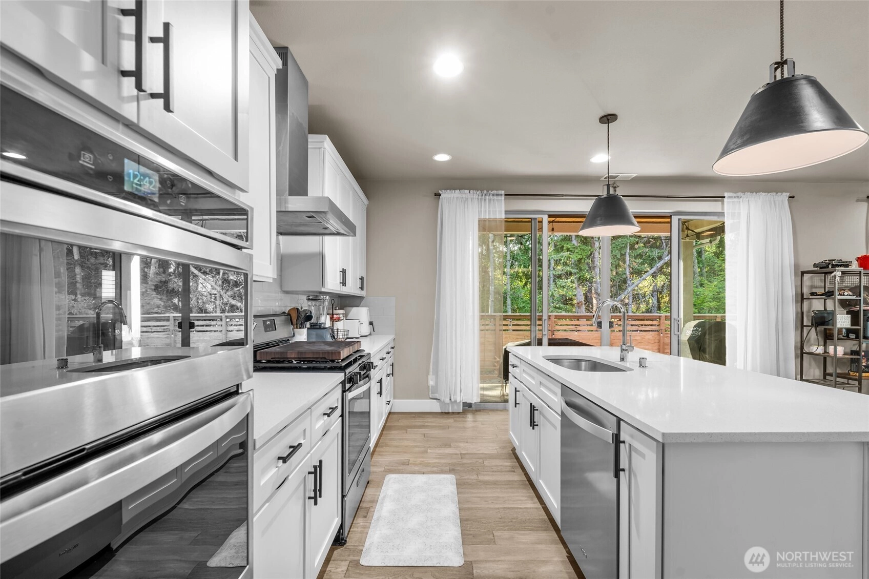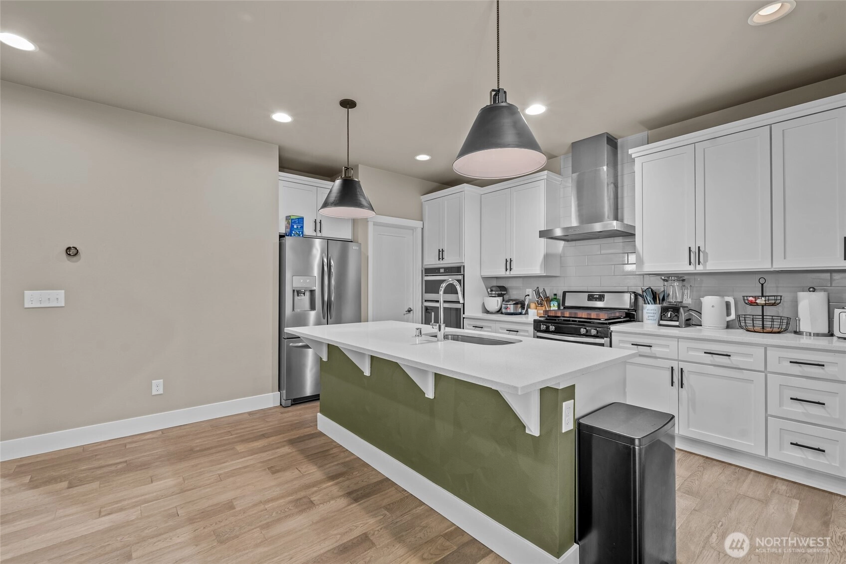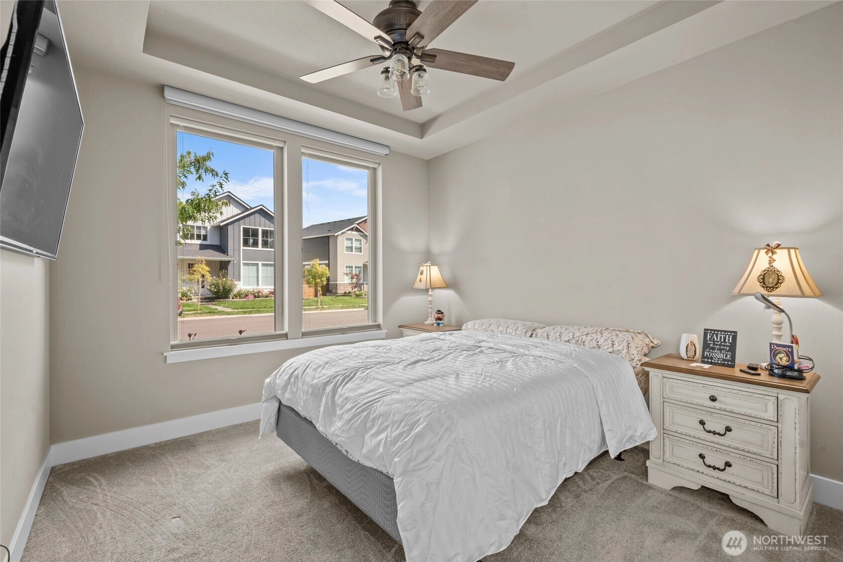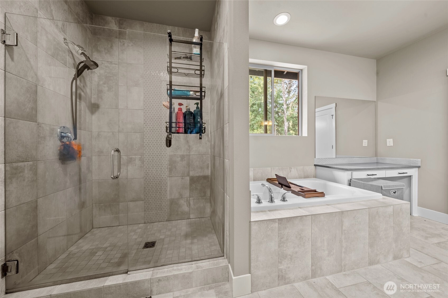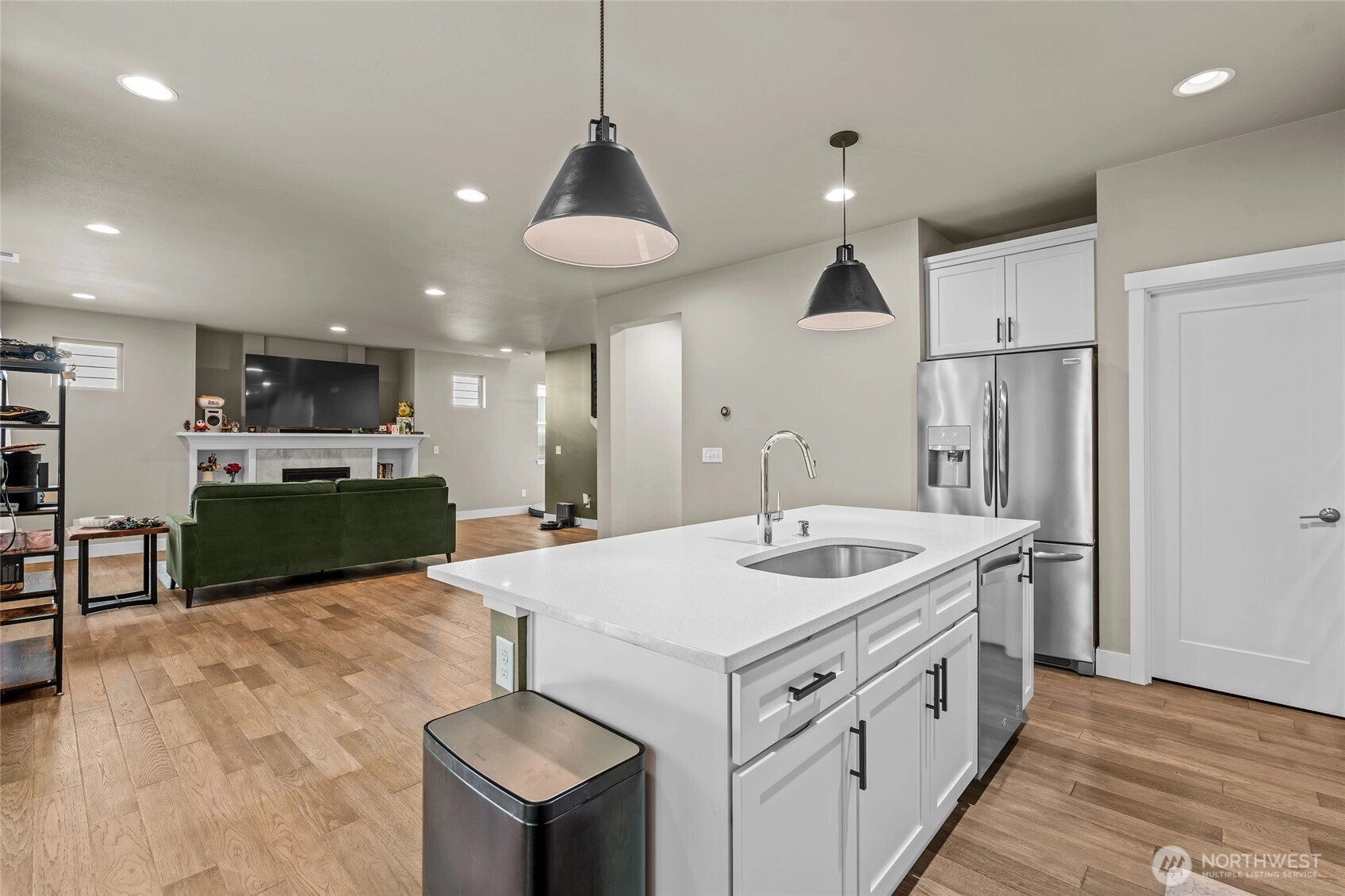 Welcome to this stunning Tehaleh retreat, where comfort and serenity greet you the moment you enter. This spacious 4-bedroom, 3+ bath home features a junior suite on the main level and a luxurious upstairs primary with two additional bedrooms, an oversized loft, and utility room. The open-concept main floor boasts 9’ ceilings, a gas fireplace with built-ins, and tree-lined views. The chef’s kitchen shines with tall soft-close cabinets, quartz counters, walk-in pantry, double oven, and gas range. Engineered hardwood flows throughout. The primary suite offers dual walk-ins, quartz vanities, soaker tub, and custom shower. Outside, enjoy a covered patio with fireplace, perfect for year-round relaxation. Central A/C completes this tranquil home.