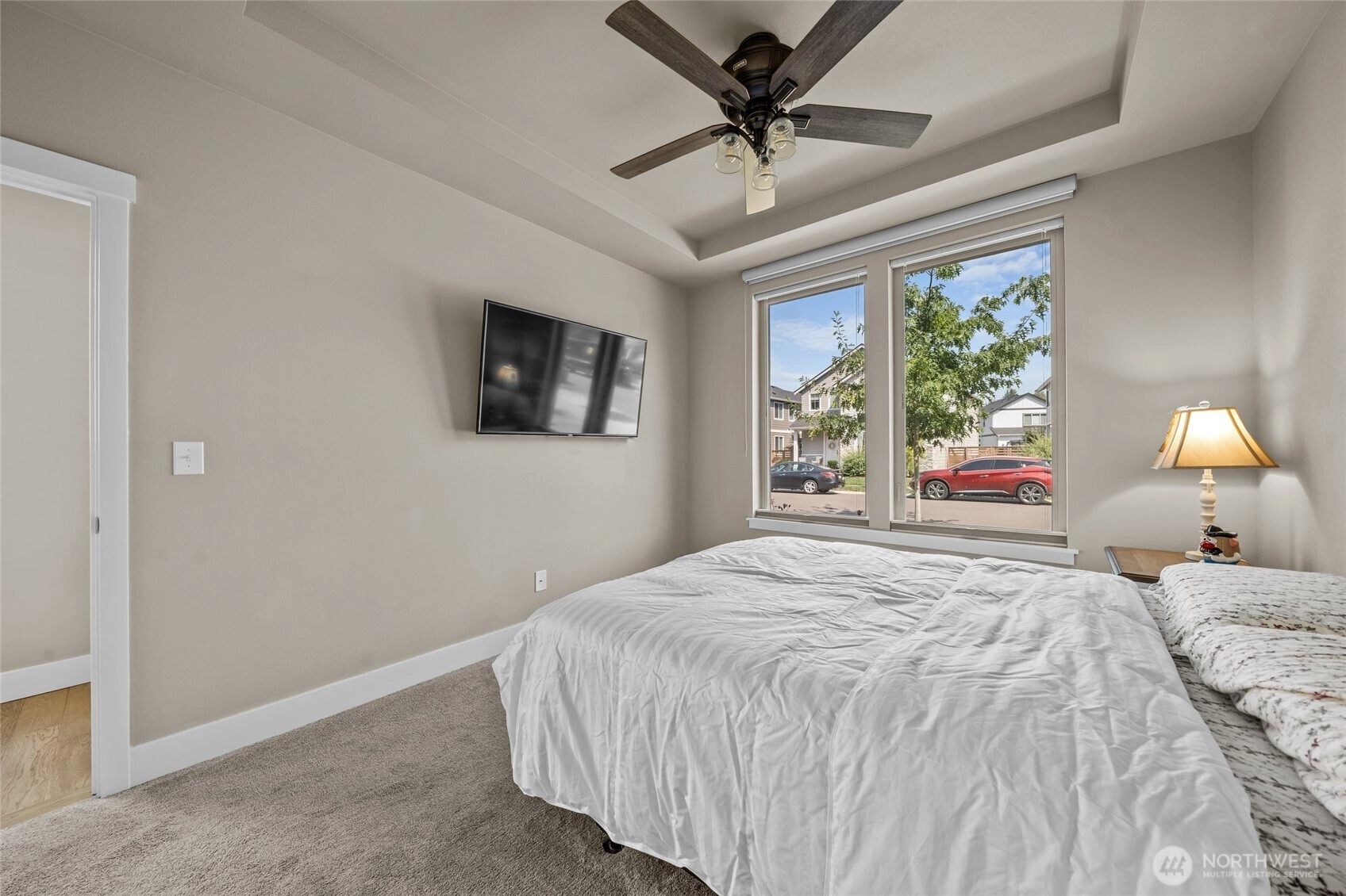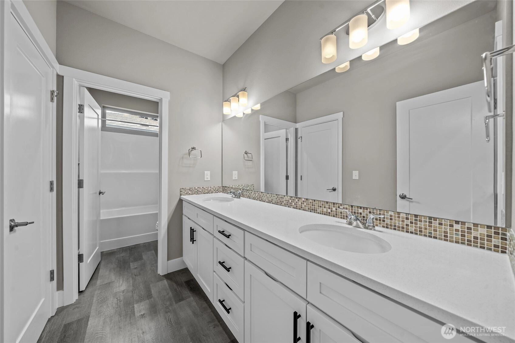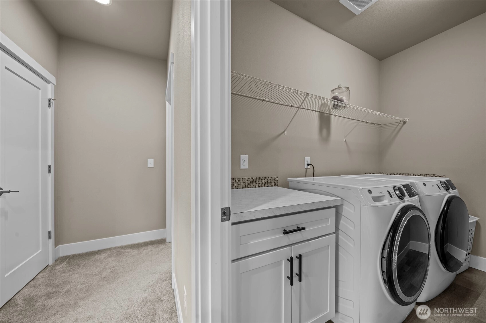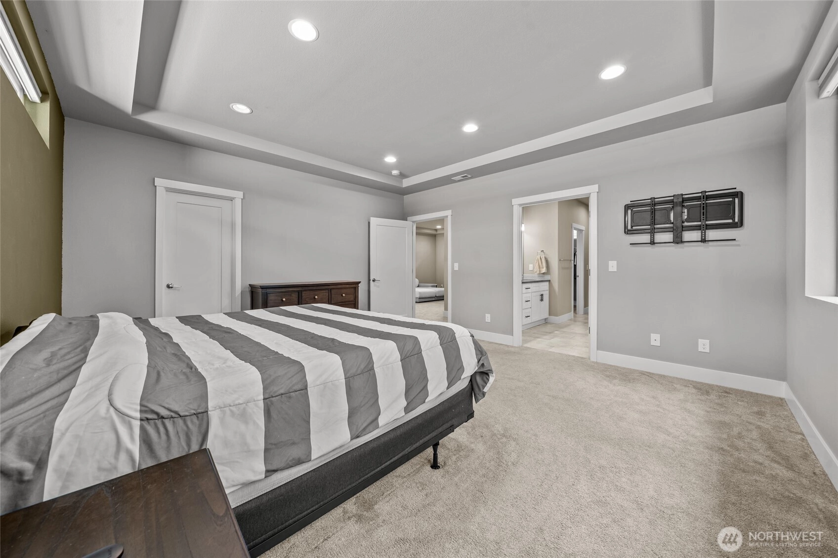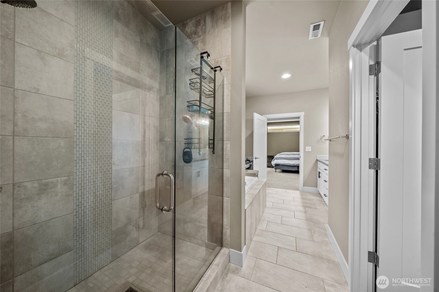 Welcome to this stunning Tehaleh retreat, where comfort and serenity greet you the moment you enter. This spacious 4-bedroom, 3+ bath home features a junior suite on the main level and a luxurious upstairs primary with two additional bedrooms, an oversized loft, and utility room. The open-concept main floor boasts 9’ ceilings, a gas fireplace with built-ins, and tree-lined views. The chef’s kitchen shines with tall soft-close cabinets, quartz counters, walk-in pantry, double oven, and gas range. Engineered hardwood flows throughout. The primary suite offers dual walk-ins, quartz vanities, soaker tub, and custom shower. Outside, enjoy a covered patio with fireplace, perfect for year-round relaxation. Central A/C completes this tranquil home.