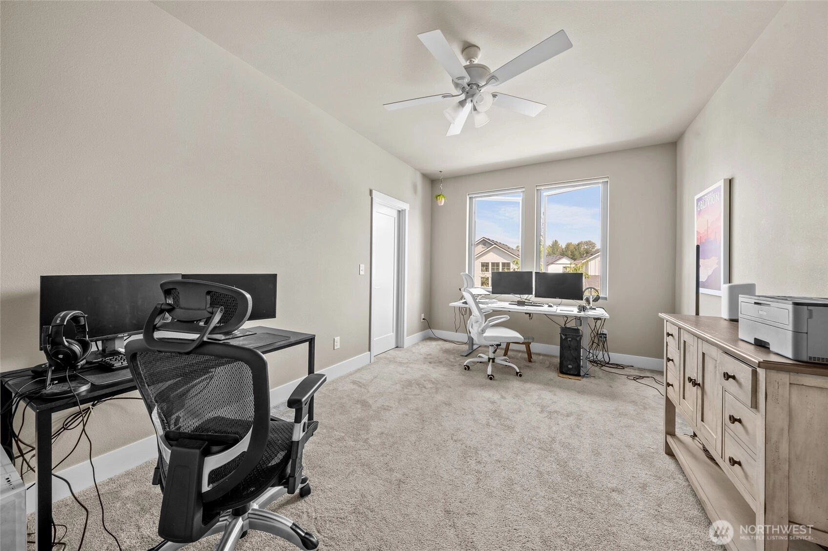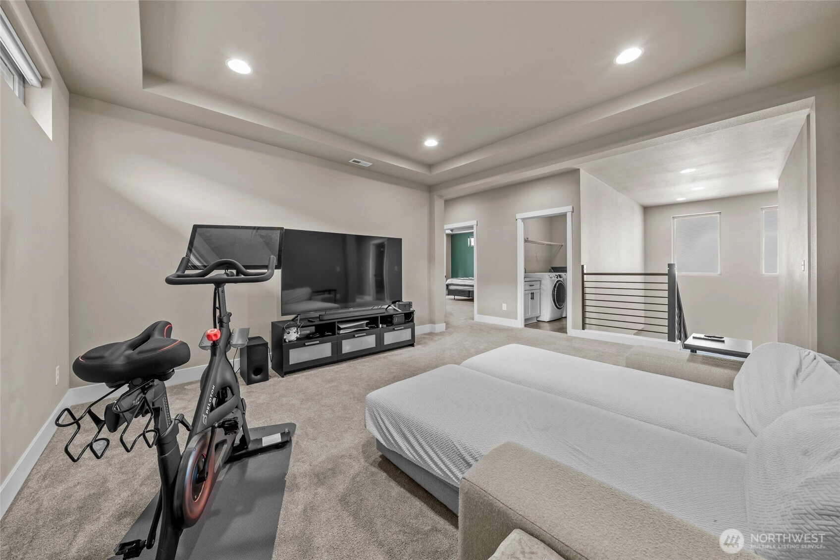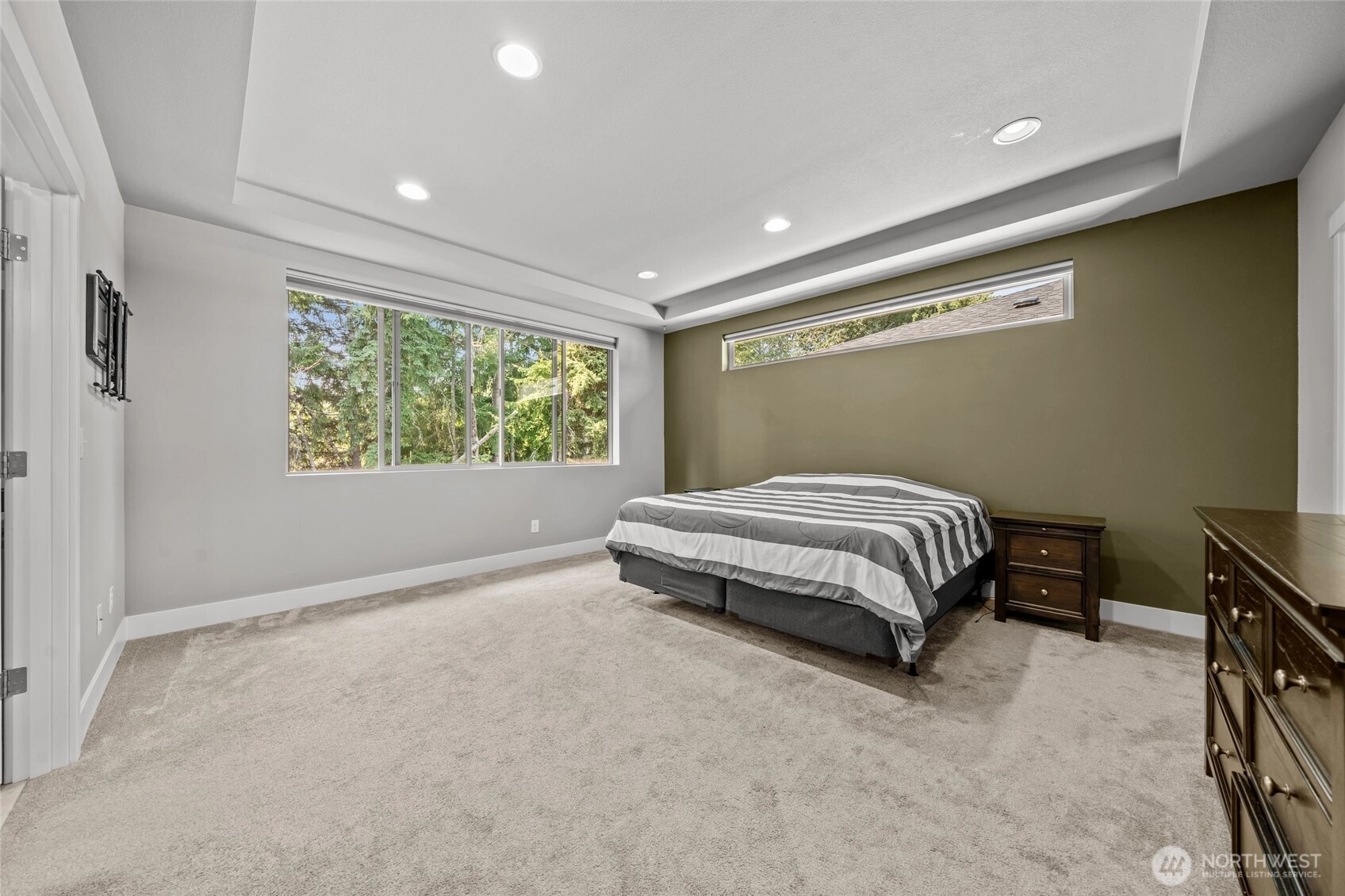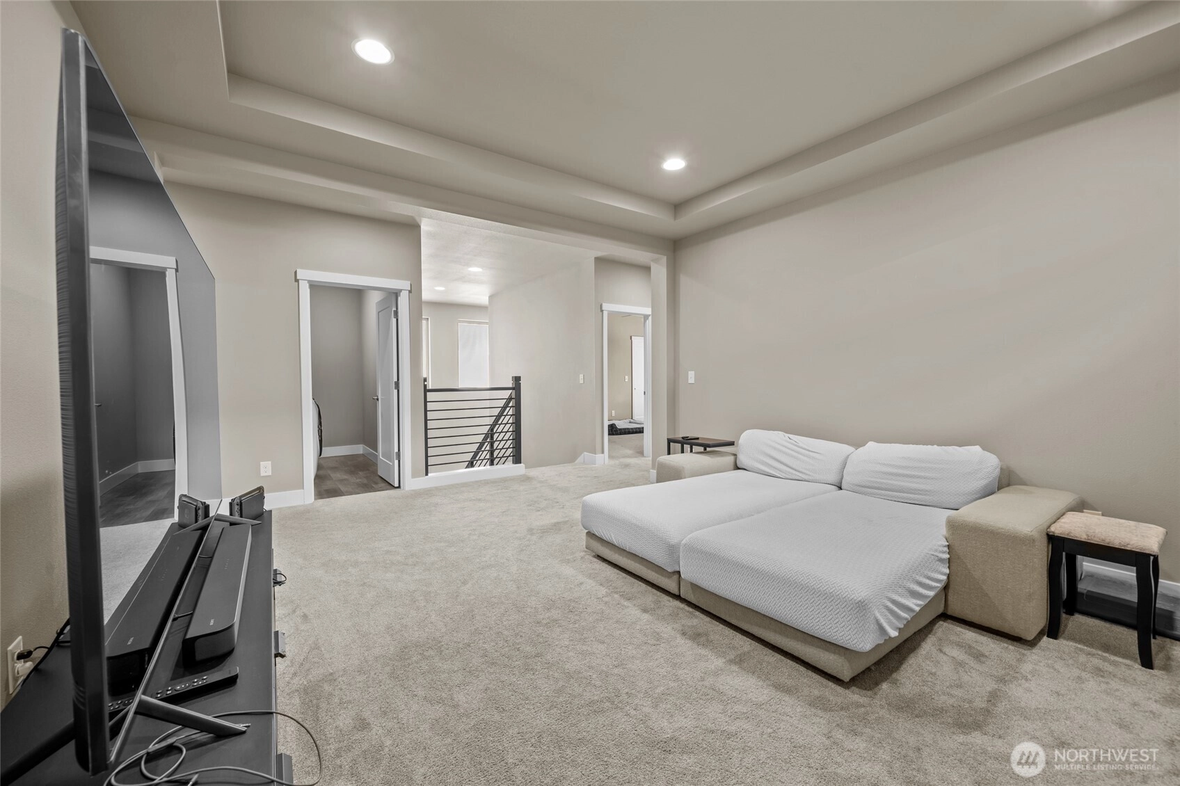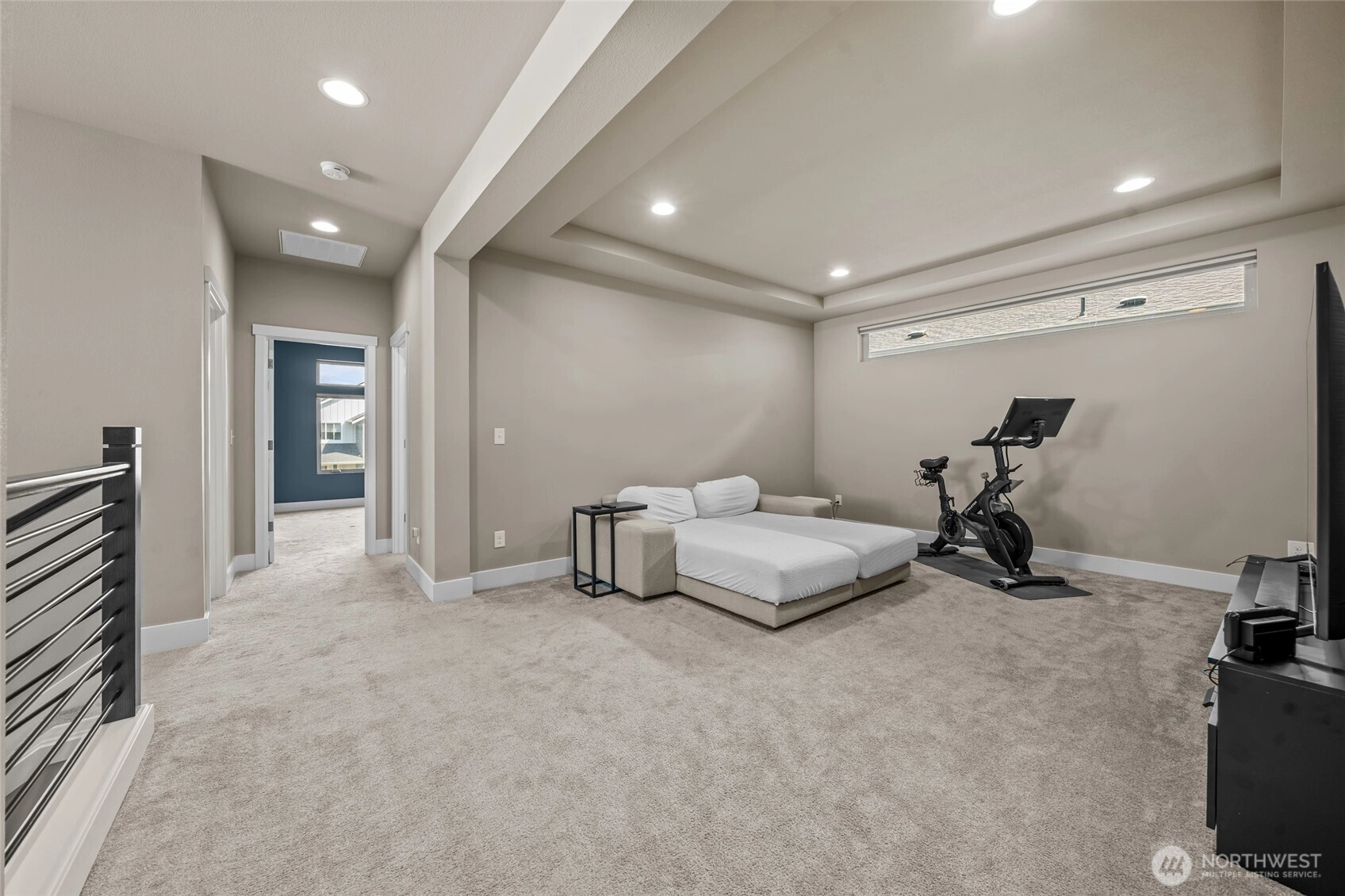 Welcome to this stunning Tehaleh retreat, where comfort and serenity greet you the moment you enter. This spacious 4-bedroom, 3+ bath home features a junior suite on the main level and a luxurious upstairs primary with two additional bedrooms, an oversized loft, and utility room. The open-concept main floor boasts 9’ ceilings, a gas fireplace with built-ins, and tree-lined views. The chef’s kitchen shines with tall soft-close cabinets, quartz counters, walk-in pantry, double oven, and gas range. Engineered hardwood flows throughout. The primary suite offers dual walk-ins, quartz vanities, soaker tub, and custom shower. Outside, enjoy a covered patio with fireplace, perfect for year-round relaxation. Central A/C completes this tranquil home.
