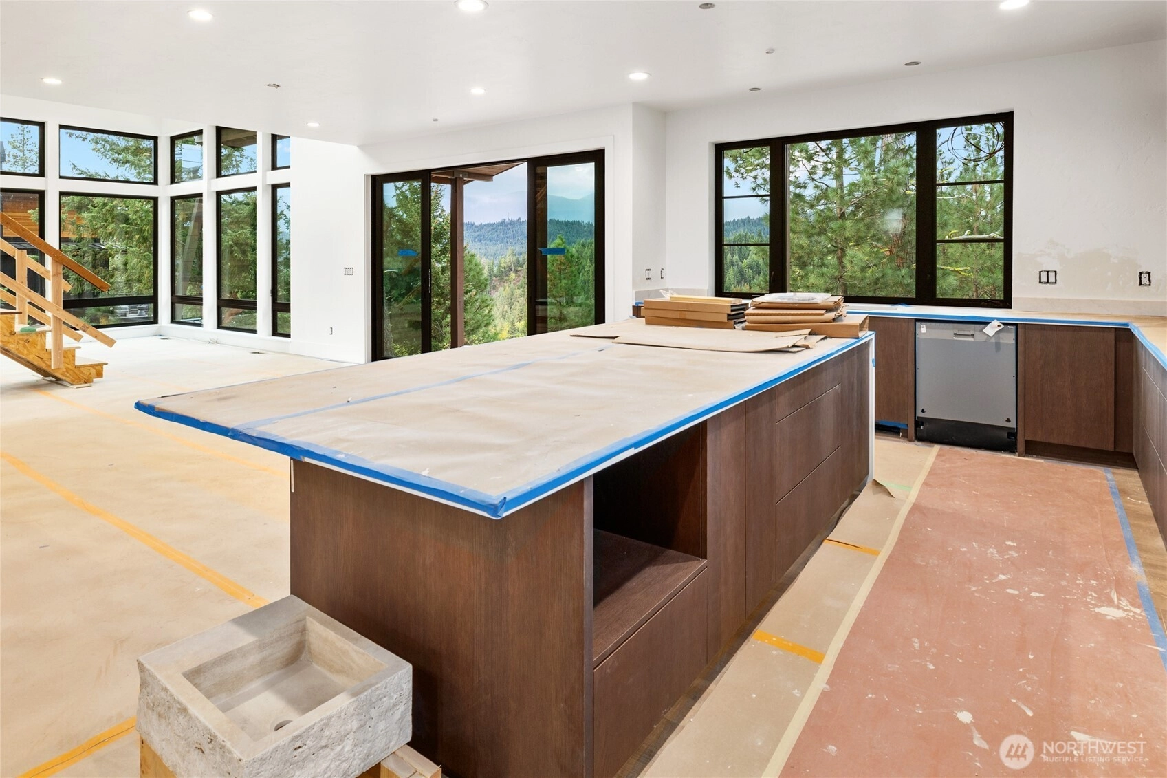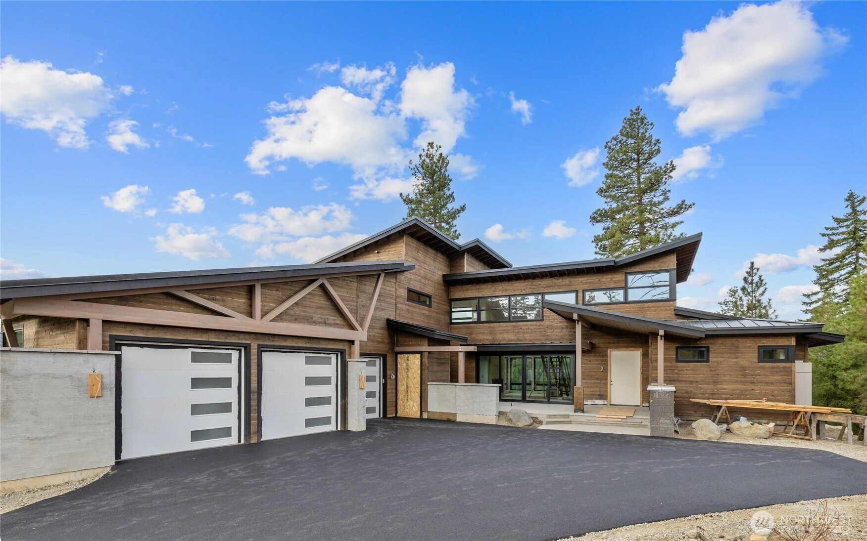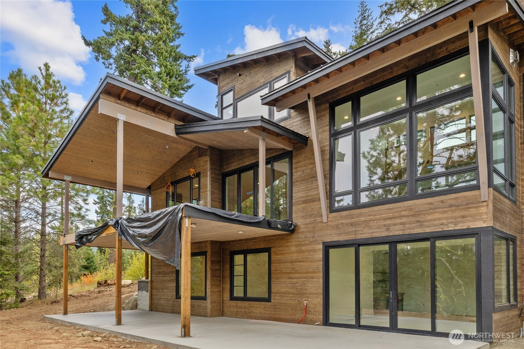 Situated on one of the best view sites in Suncadia, this stunning new modern mountain home by Benchmark Custom Homes offers panoramic views in the gated River Ridge neighborhood. This 5-bedroom + den home includes a separate lower-level living room, high-end kitchen with walk-in pantry, main-level ensuite, upstairs primary & guest bedrooms, and a lower-level bonus with more bedrooms. Radiant heated floors in the basement and main living room. Enjoy custom tile, flooring, steel staircase & more. Entertain on the elevated deck or ground-level patio with direct trail access to the river or Nelson Farm Pool. Completion Fall 2025.