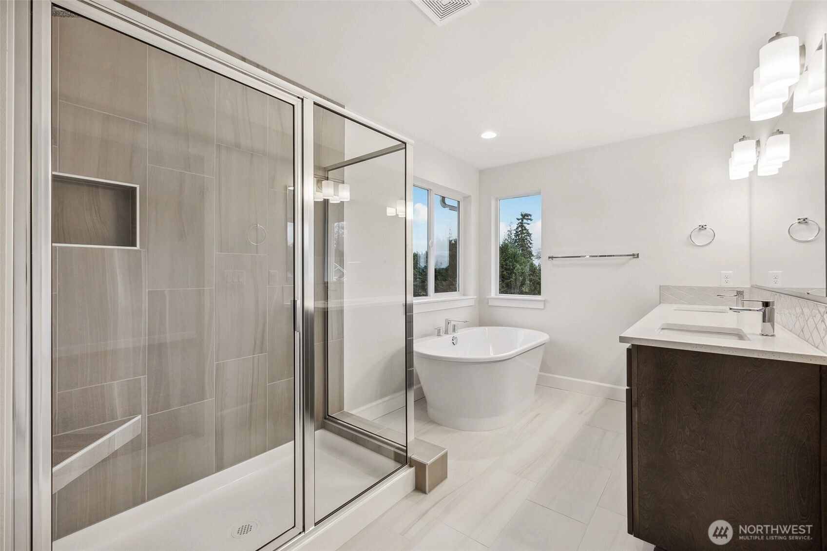 Here at Elk Run at Chinook Meadows by Soundbuilt Homes, the only thing that can match the area are the homes!!! The Camilla plan at Elk Run on lot 292 offers 2,790 sq ft with 4 bedrooms, 2.5 baths, and a 3-car garage on an expansive 11,098 sq ft lot. Main floor features a spacious great room with linear gas fireplace, open kitchen with quartz counters, soft-close cabinets, full-height tile backsplash, and walk-in pantry. The main floor guest suite has attached 3/4 bath while the powder room is available for visitors. Upstairs includes a large bonus room, convenient laundry, and a well-appointed primary suite. w/ 5pc bath. 10 minutes to both Lake Tapps Boat Launches! $18k buyer bonus with preferred lender. Open daily 11:00-5:00