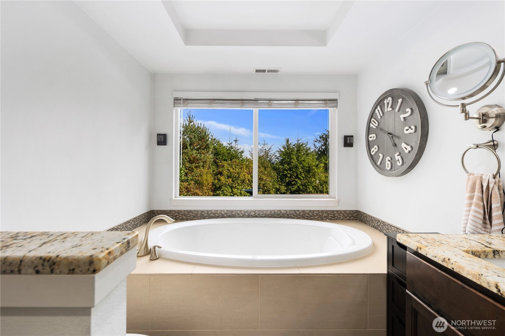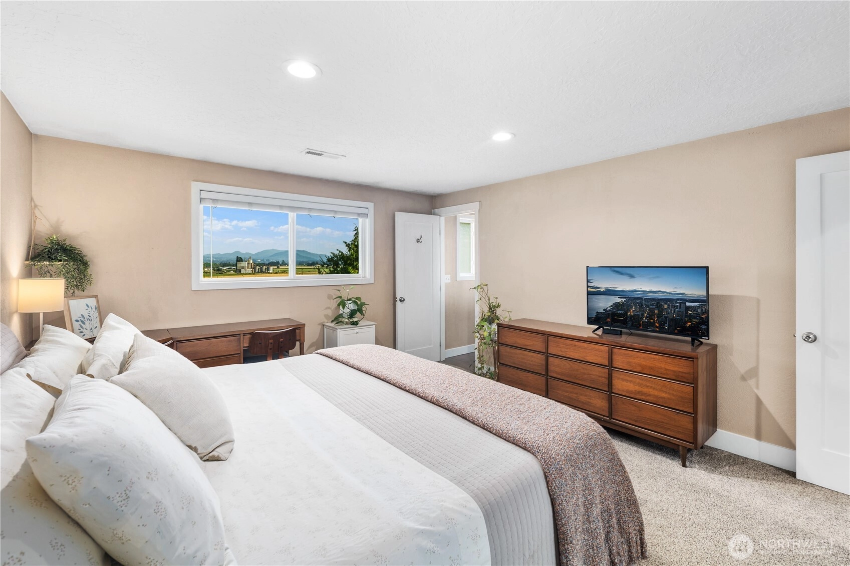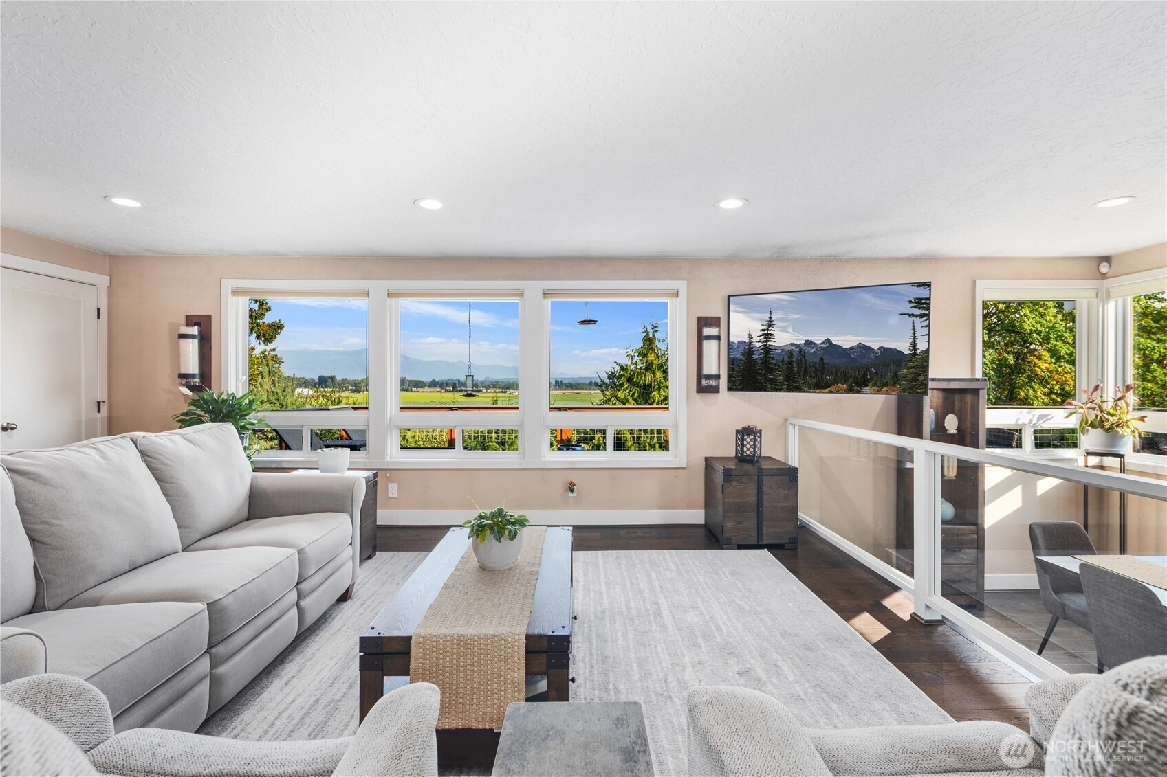 Experience refined living in this exquisitely remodeled 4-bed + office luxury view home. Situated on a serene 1+ acre lot w/ sweeping views of SV farmlands & the Cascades. Step inside to discover an open-concept layout w/ granite countertops, high-end finishes & timeless design. Chef’s kitchen seamlessly flows to expansive living & dining areas. Two primary suites, each with its own spa-inspired en-suite bath. Downstairs, a second full living room & impressive wet bar, ideal for multigenerational living. Oversized deck & lower level patio invite you to relax while overlooking oversized private yard. Meticulously cared for, this home combines luxury & lifestyle in one stunning package. Minutes from Skagit Golf & CC, restaurants, I-5 & more!