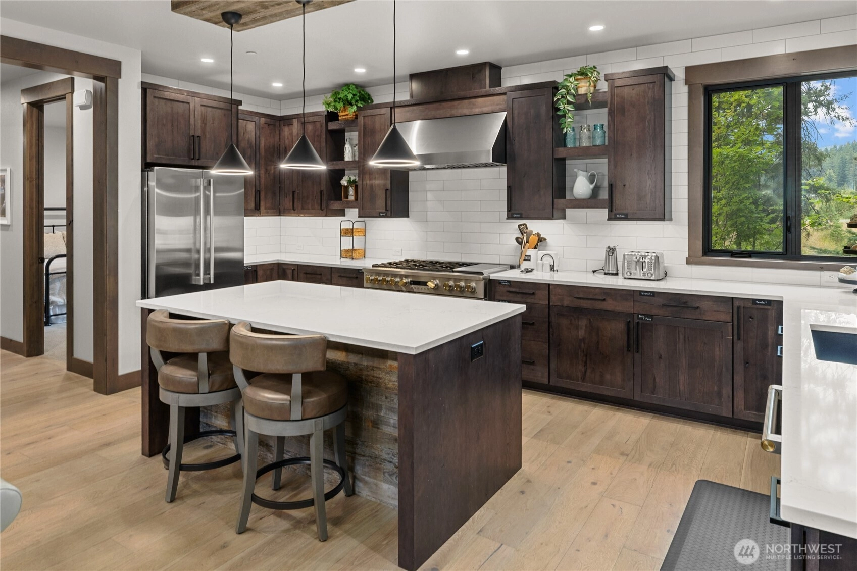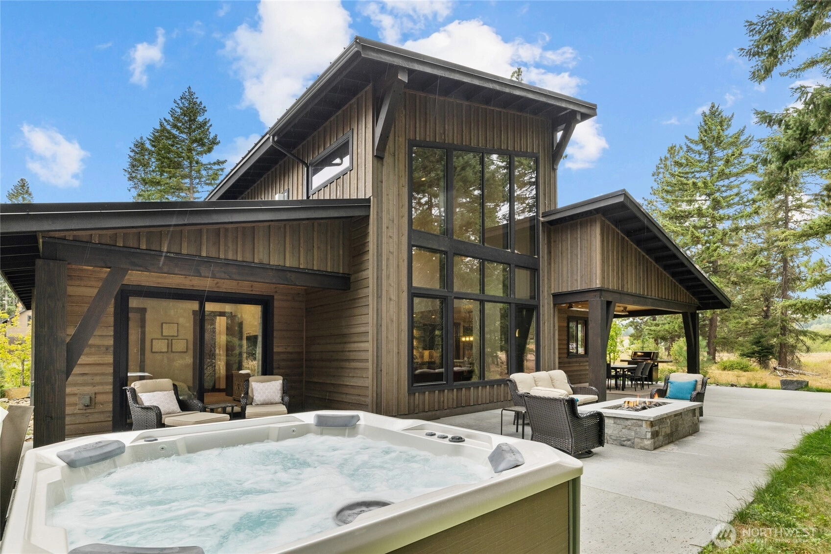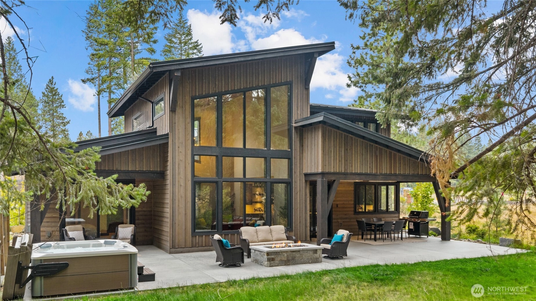 Rustic mountain home in Nelson Creek at Suncadia by Craig Reimer Custom Homes; less than 3 years old. Open layout with kitchen, dining, and great room, perfect for entertaining. Main floor has primary suite with covered patio and guest bedroom. Upstairs includes 2 bedrooms, bonus room, and bunk room. Patio includes firepit, outdoor furniture, grill and hot tub. Quiet, low-traffic Farmhouse Way with backyard bordering a serene greenbelt visited often by elk and deer. Across from Nelson Farm pool, Nelson dairy farm and playground, and central to seasonal Suncadia activities. Steps from Cle Elum River hiking trails. Ideal for a getaway, rental, or full-time home. Home is offered unfurnished but indoor furnishings and accoutrements negotiable.