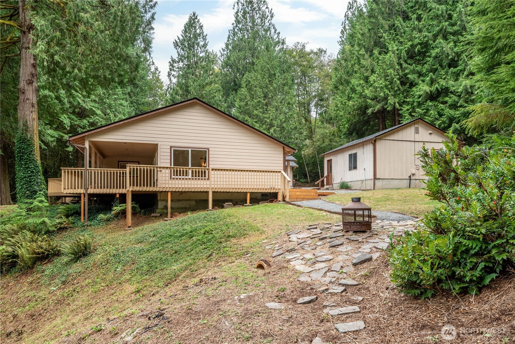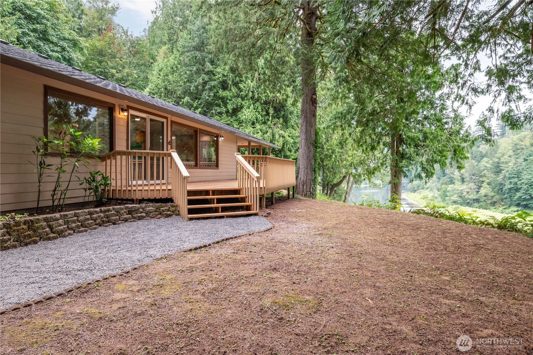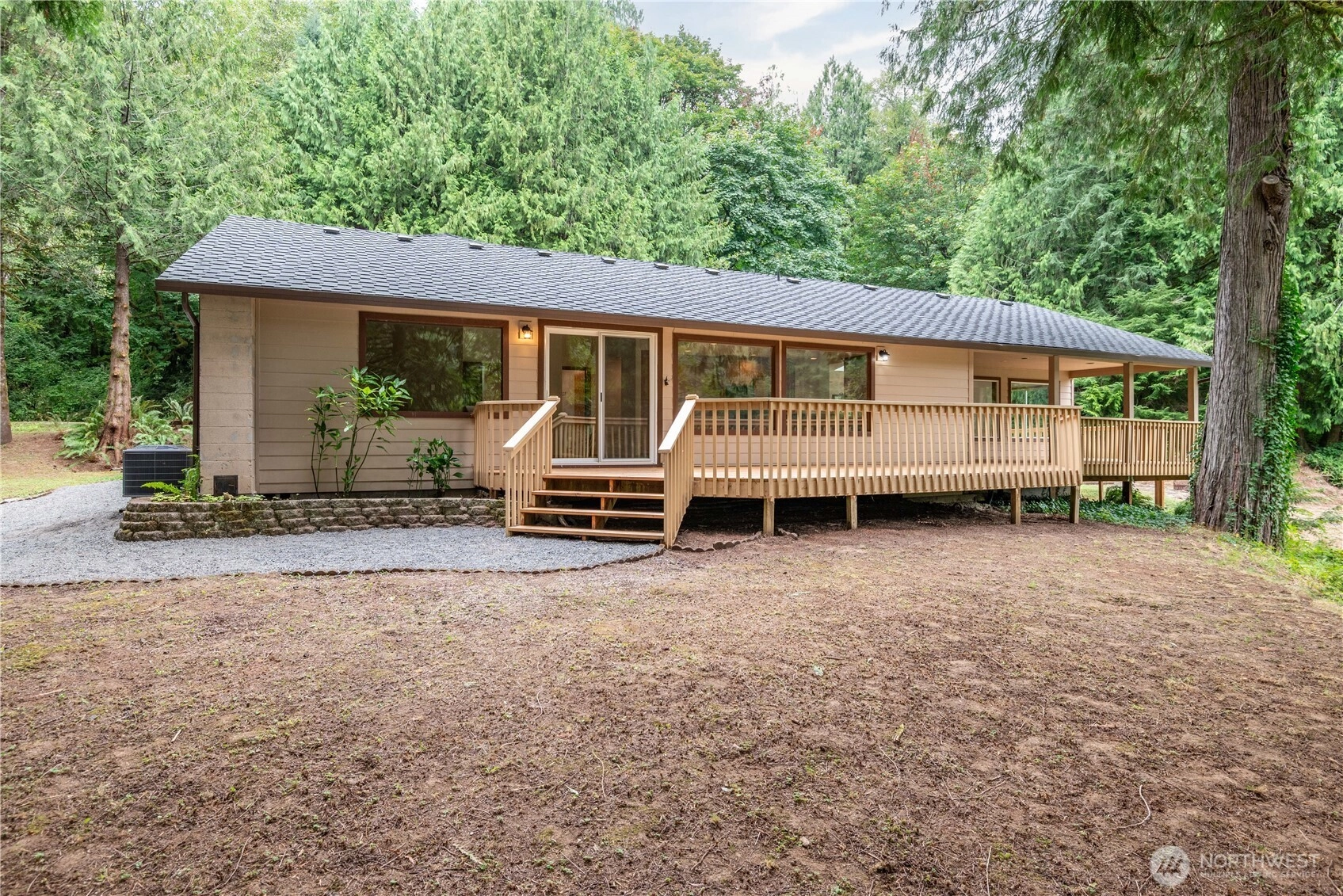 Enjoy stunning Lewis River views from this private 2 acre retreat! This 3 bed, 2 bath home offers approximately 2,400 sf of living space plus a 500 sf garage. Home features two living spaces both with stunning nature views and plenty of natural light. The spacious primary suite features a walk-in closet and private bath. Recent upgrades include a new architectural 50 year roof, new deck boards, modern light fixtures and ceiling fans, and a tastefully remodeled bathroom. Entertain with ease on the large partially covered deck while overlooking the river. For a more intimate setting, follow the walking path to a private river viewpoint where you can watch kayakers and anglers. Don't miss this rare chance to own your own peaceful river escape!