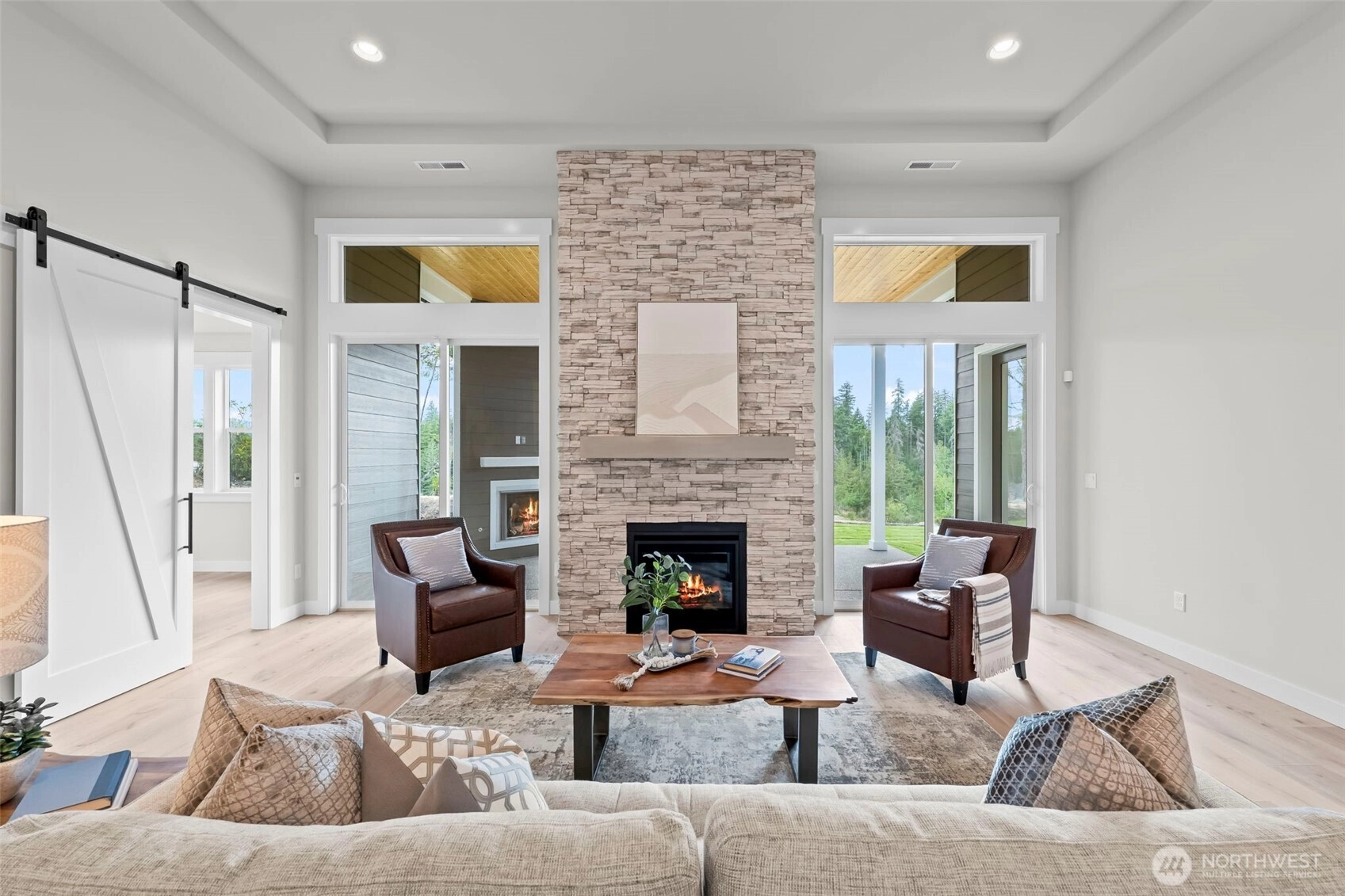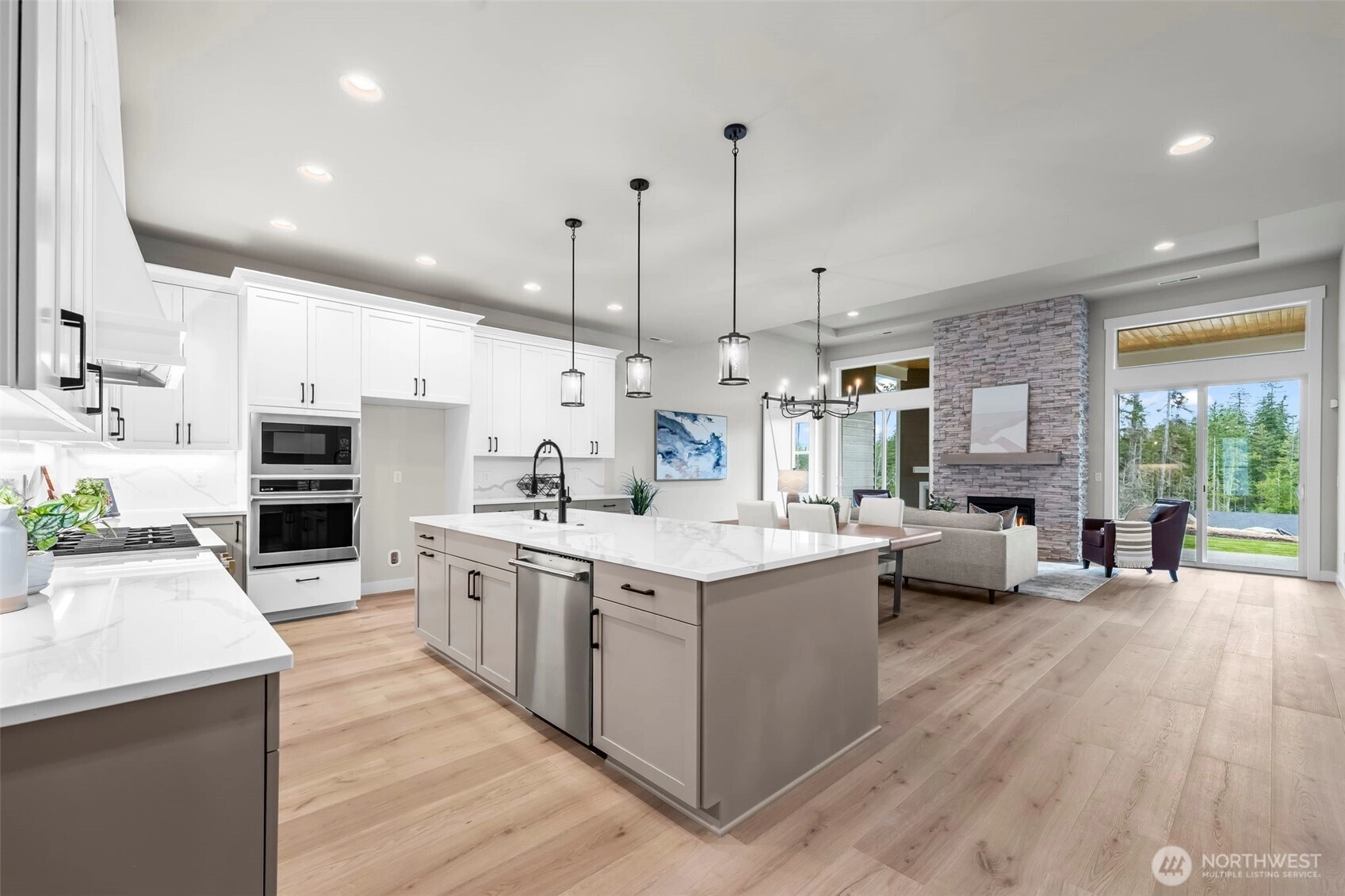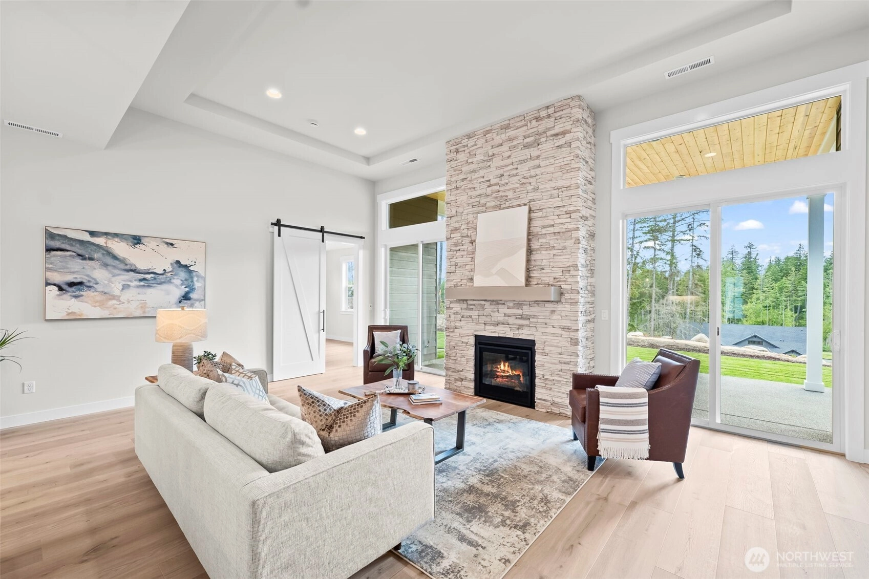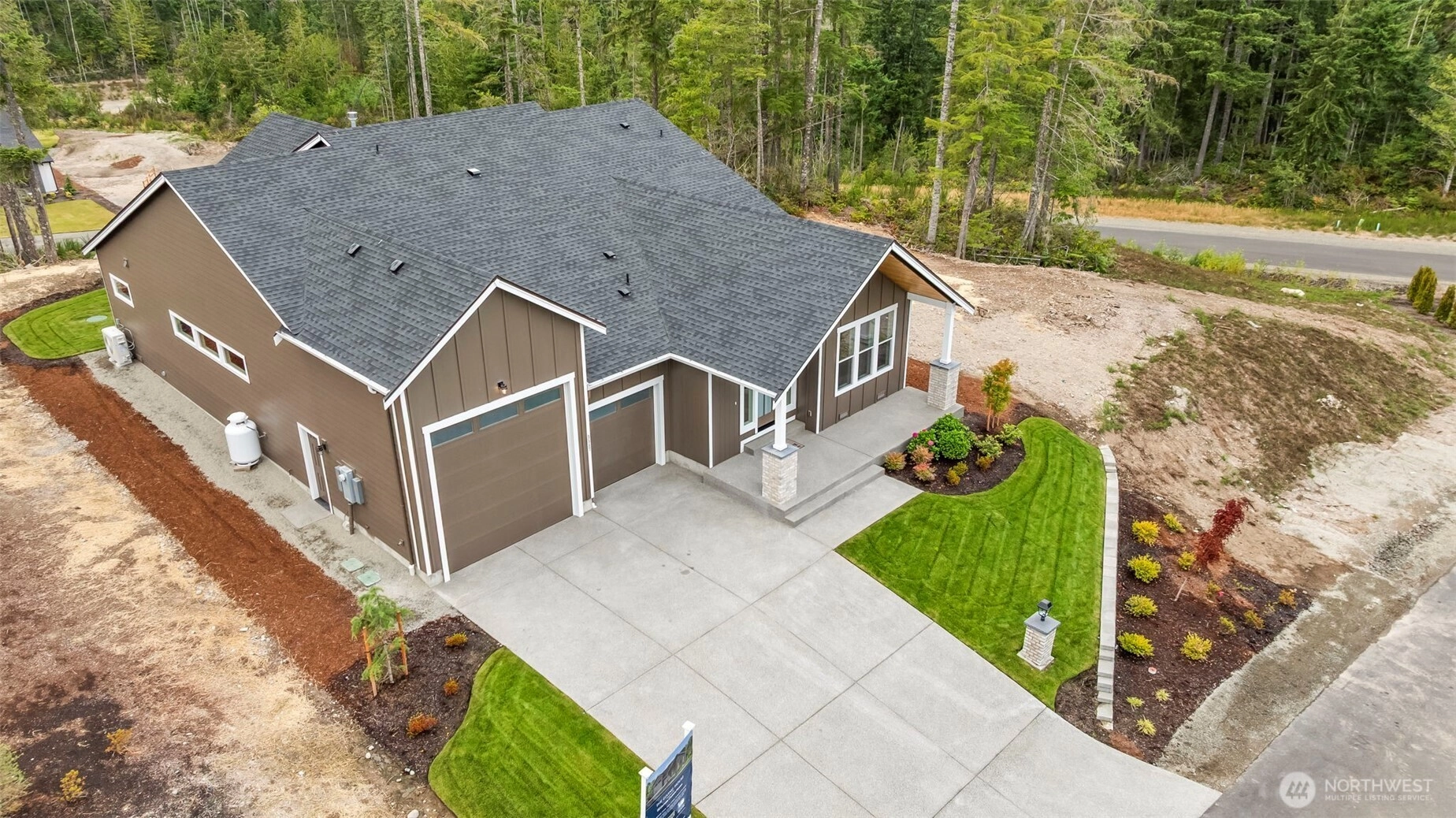 Welcome to the single-level TIMBERLINE by GARRETTE CUSTOM HOMES. This home offers an open-concept floor plan, soaring ceilings, and abundant natural light throughout. A highlight of this plan is the oversized RV GARAGE, offering versatile space for recreation vehicles, a workshop, or extra storage. The gourmet kitchen features a spacious center island, designer finishes, and seamless flow into the dining and great room. The luxurious primary suite includes a spa-inspired bath and walk-in closet, while additional bedrooms and den provide space for guests and a home office. Nestled on 1.43 acres with a private, wooded west facing backyard, this home is minutes from downtown Silverdale and abundant outdoor recreation.