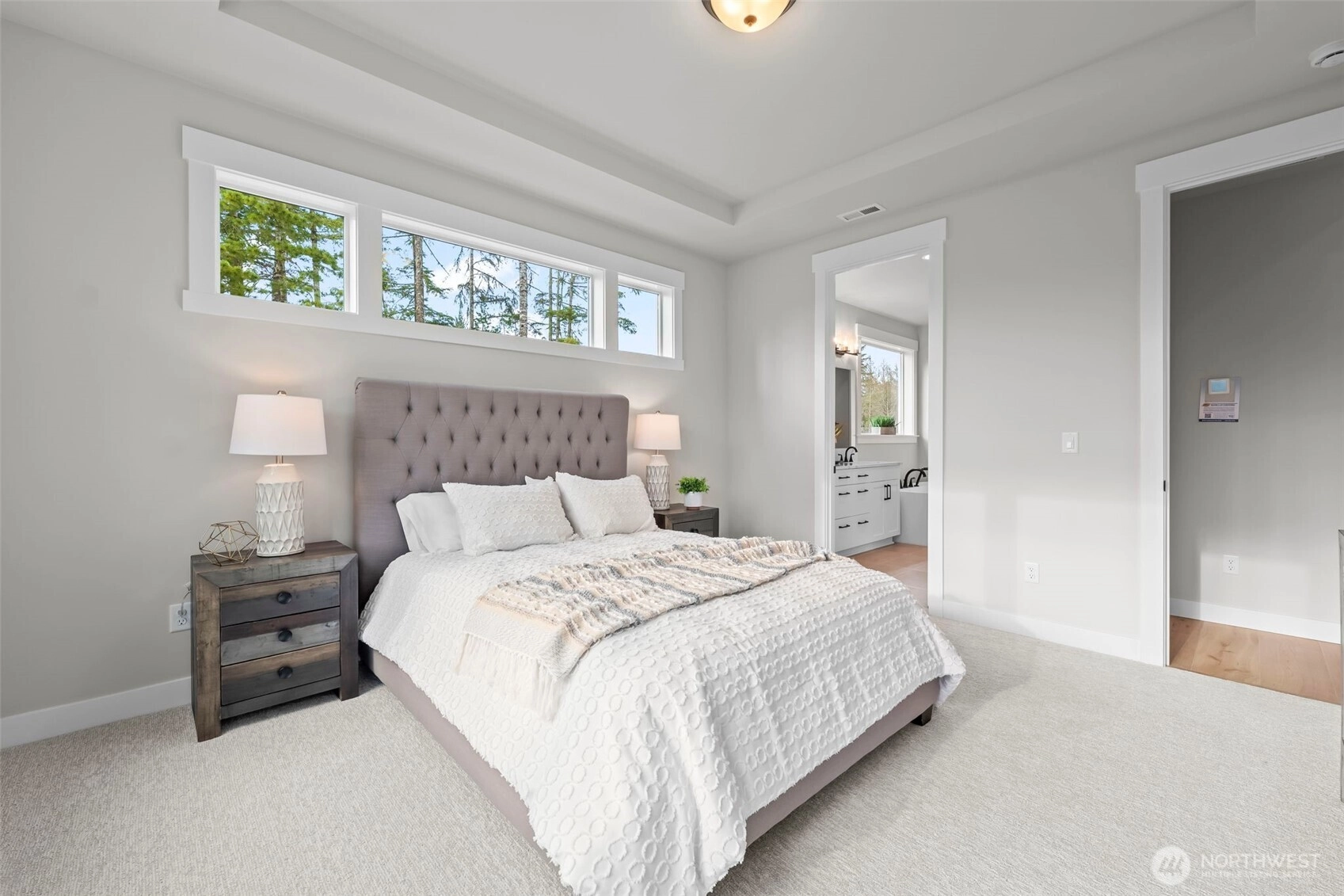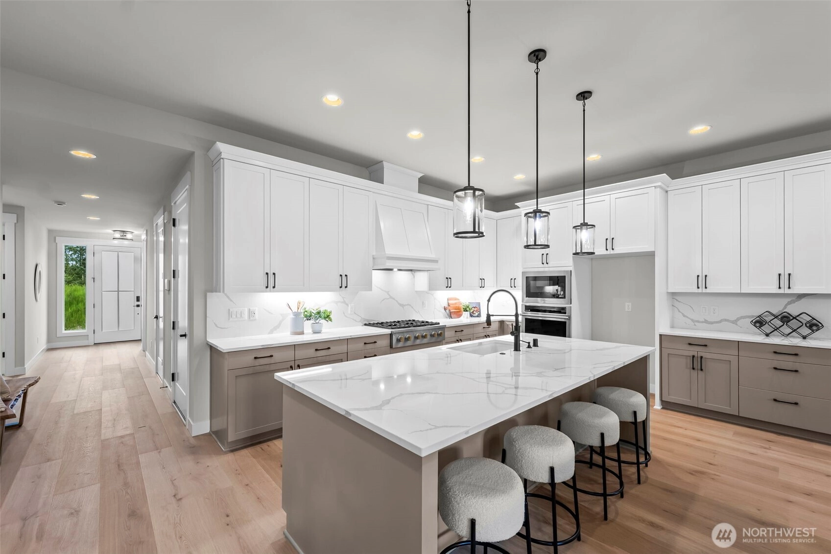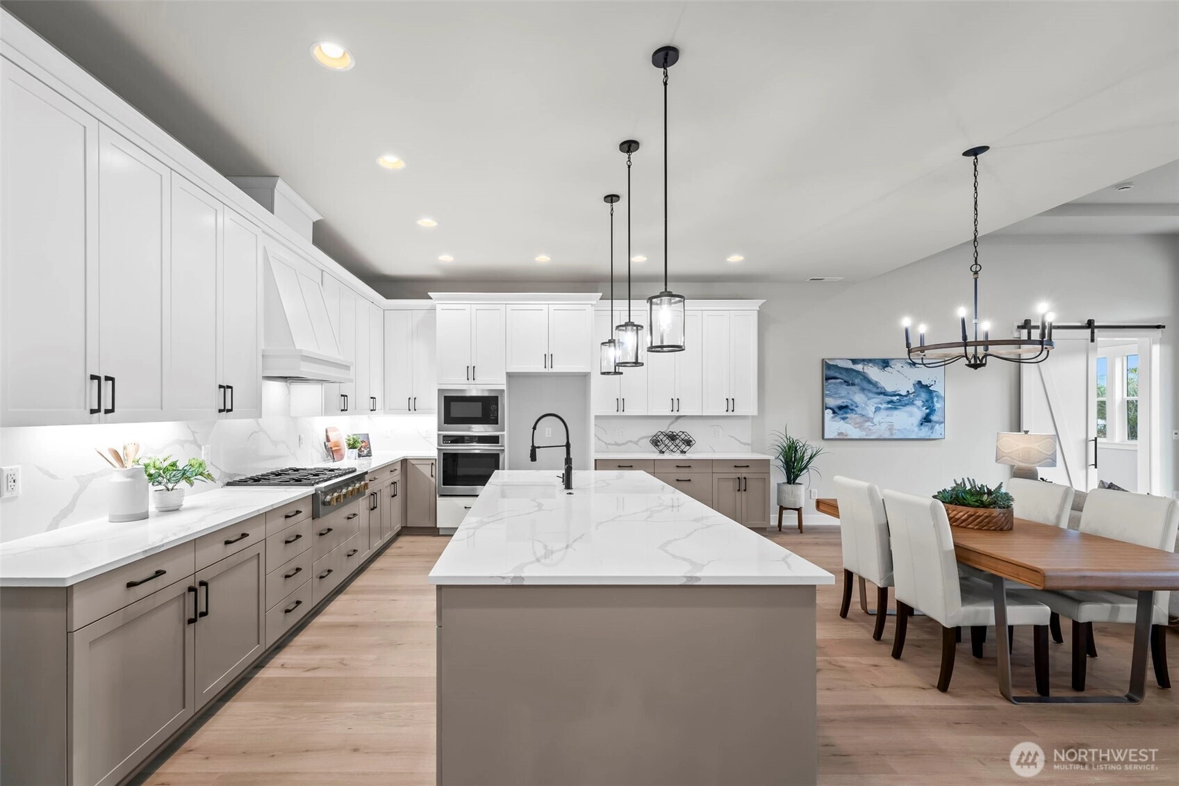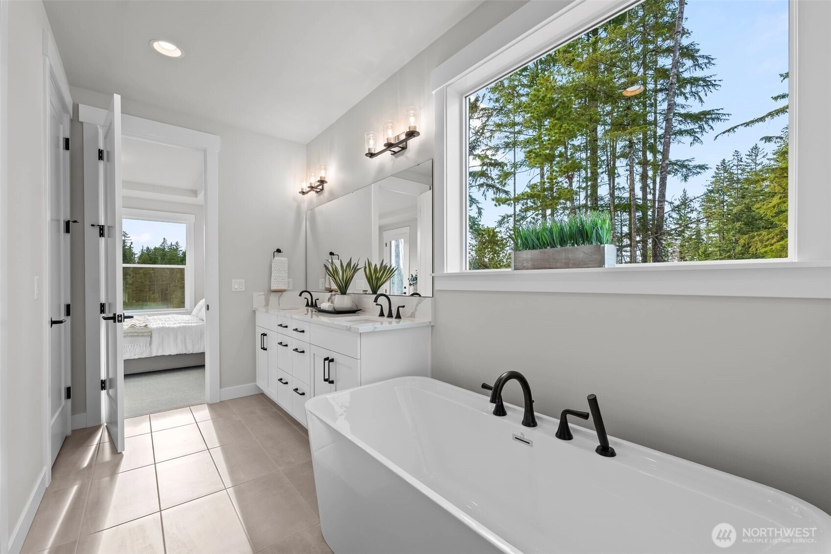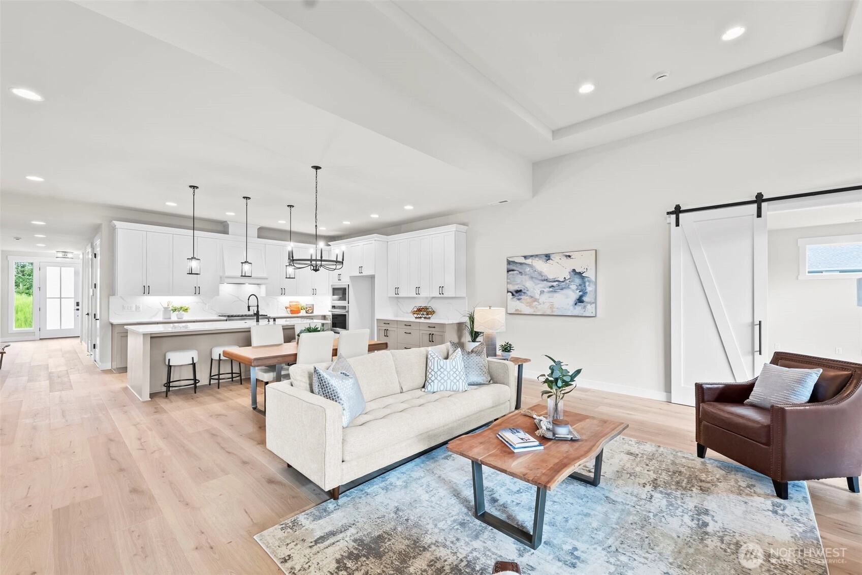 Welcome to the single-level TIMBERLINE by GARRETTE CUSTOM HOMES. This home offers an open-concept floor plan, soaring ceilings, and abundant natural light throughout. A highlight of this plan is the oversized RV GARAGE, offering versatile space for recreation vehicles, a workshop, or extra storage. The gourmet kitchen features a spacious center island, designer finishes, and seamless flow into the dining and great room. The luxurious primary suite includes a spa-inspired bath and walk-in closet, while additional bedrooms and den provide space for guests and a home office. Nestled on 1.43 acres with a private, wooded west facing backyard, this home is minutes from downtown Silverdale and abundant outdoor recreation.