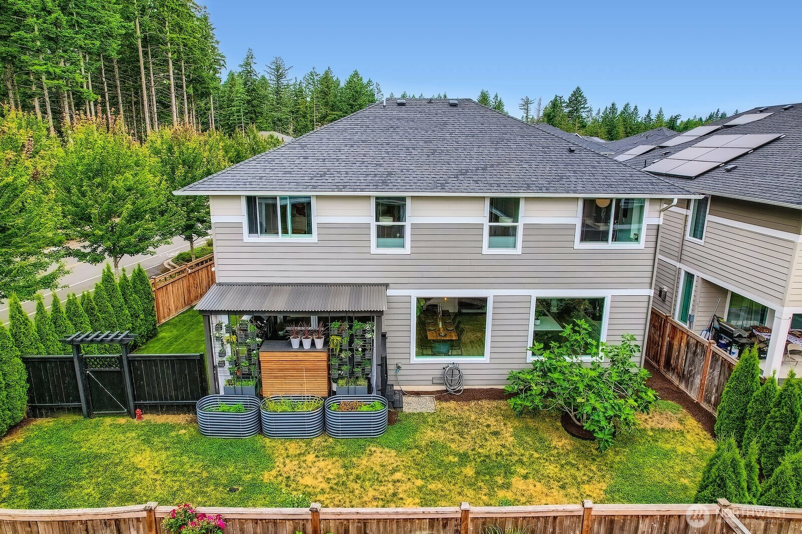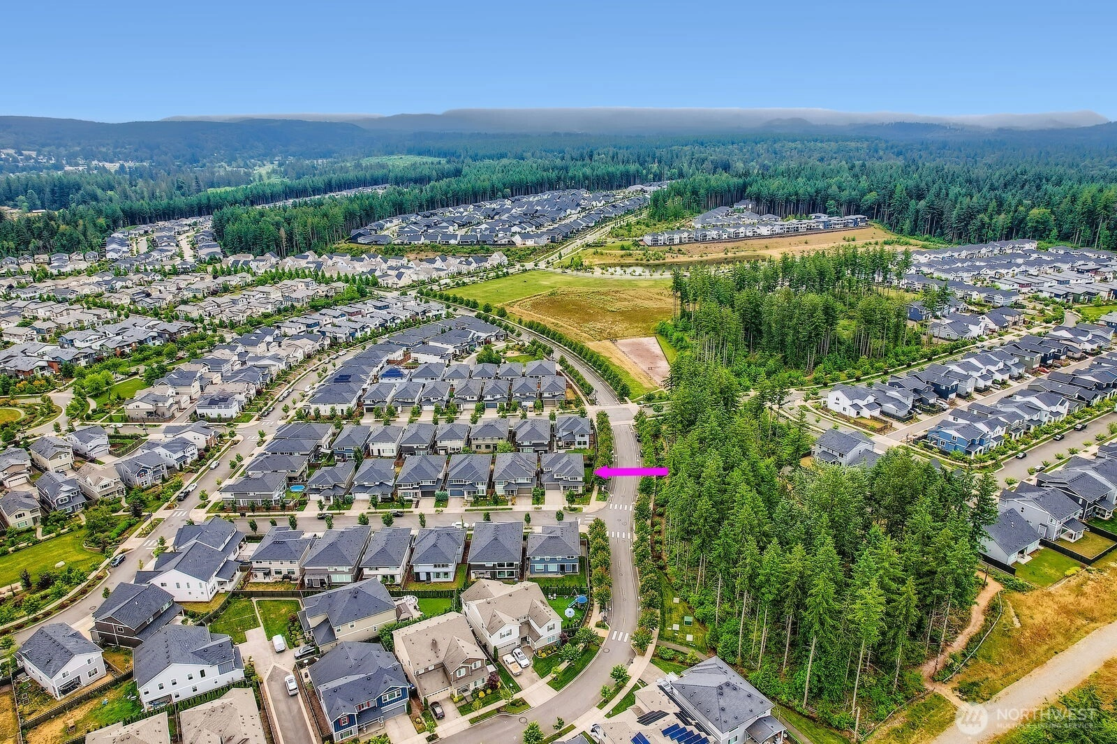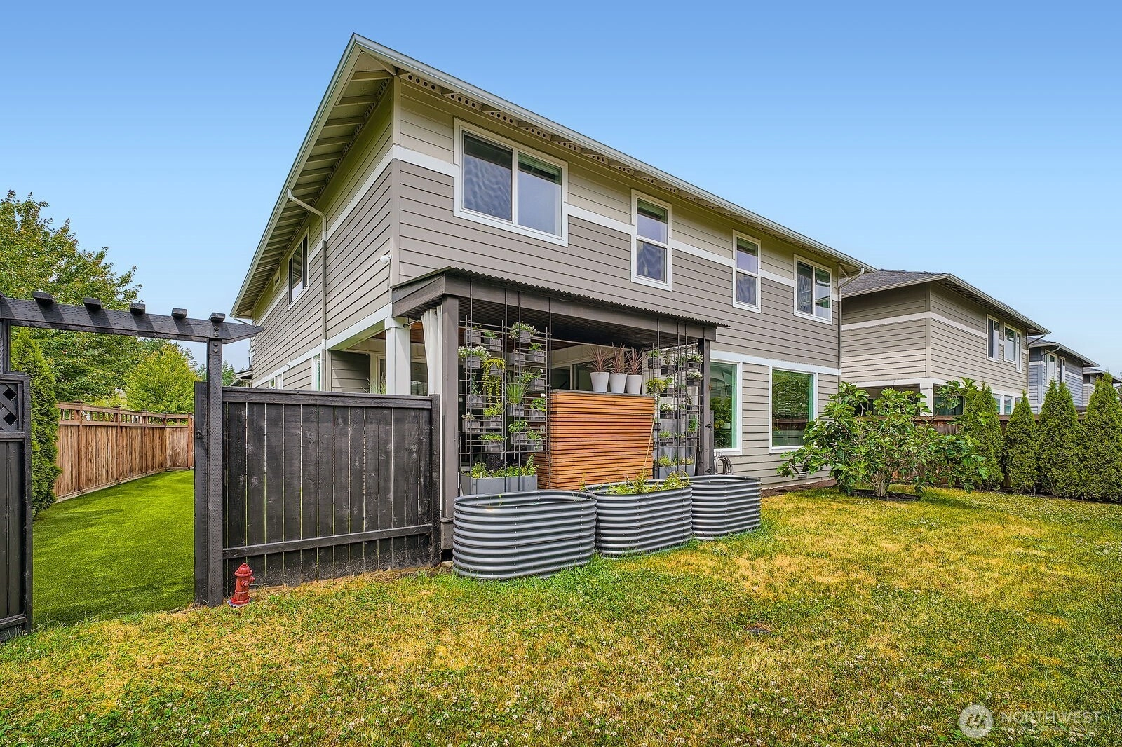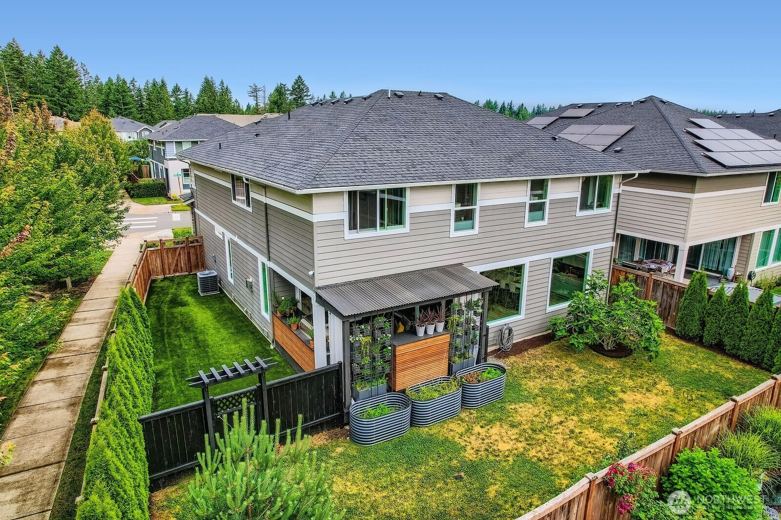 Highly sought after Hudson plan by MainVue on corner greenbelt lot w/modern design + high-end upgrades. Bedroom on main, gas FP, expanded Outdoor Rm w/custom cedar/tile kitchen (built-in Heston grill, storage), cedar-wrapped FP, patio ceiling + fan. Chef’s kitchen: quartz, XL island, butler’s pantry, RO system linked to fridge, whole-house carbon filtration. Smart home: Hubitat, Ring, Nest cams, Google/Alexa, August locks, app garage, new LiftMaster. A/C. Primary closet system + upgraded lighting/fixtures. Turf dog run + 4 raised beds, mature fig tree, cedar privacy. TVs + W/D stay. Crate & Barrel herb wall, CB2 planters, patio curtains/gates.