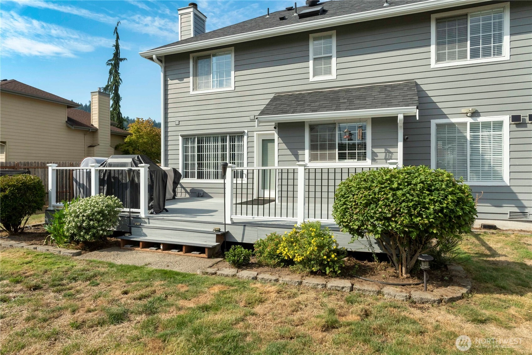 Welcome to Riverbend Estates Where Comfort Meets Stunning Views! Located in the highly sought-after Riverbend Estates community & within the award-winning Sumner School District, this beautifully maintained 3-BR, 2.5-BA home sits on a half acre+ & has a view of Mt. Rainier. Step inside to find thoughtful updates, incl newer roof(2019), A/C, furnace, &WH, new carpet, engineered hardwd, two updated BA. The updated kitchen has quartz countertops, tile backsp, SS appl, & gas stove. Soaring vaulted ceilings in the formal living/dining rms, w a gas fireplace & a fam rm w a wood-burning FP. The wide stairs leads to a spacious primary suite w 5-piece bath, 2 addn'l BR. New Trex deck, mature landscape, Sprinklers, new gutters, 3 car Pre inspected