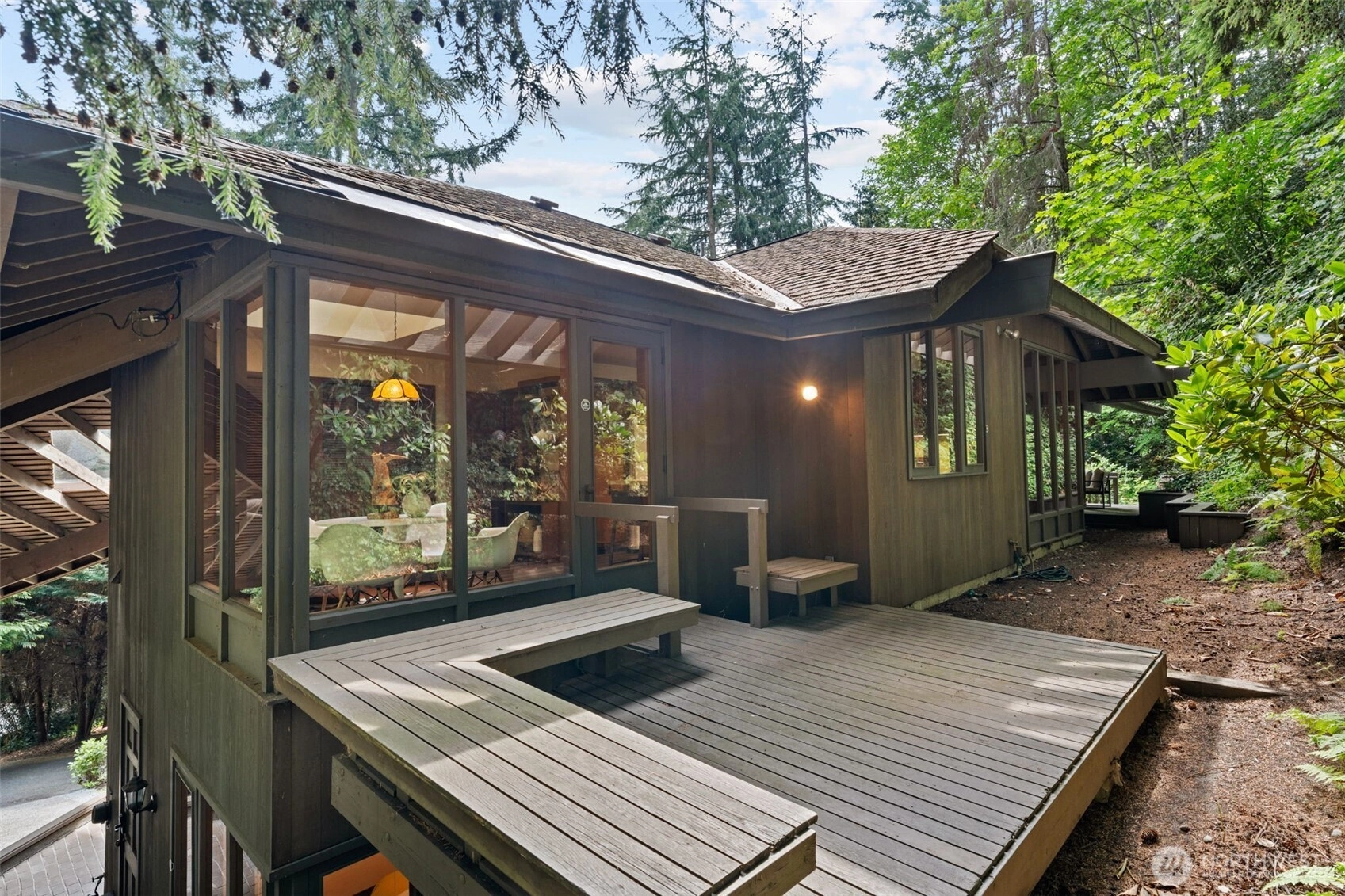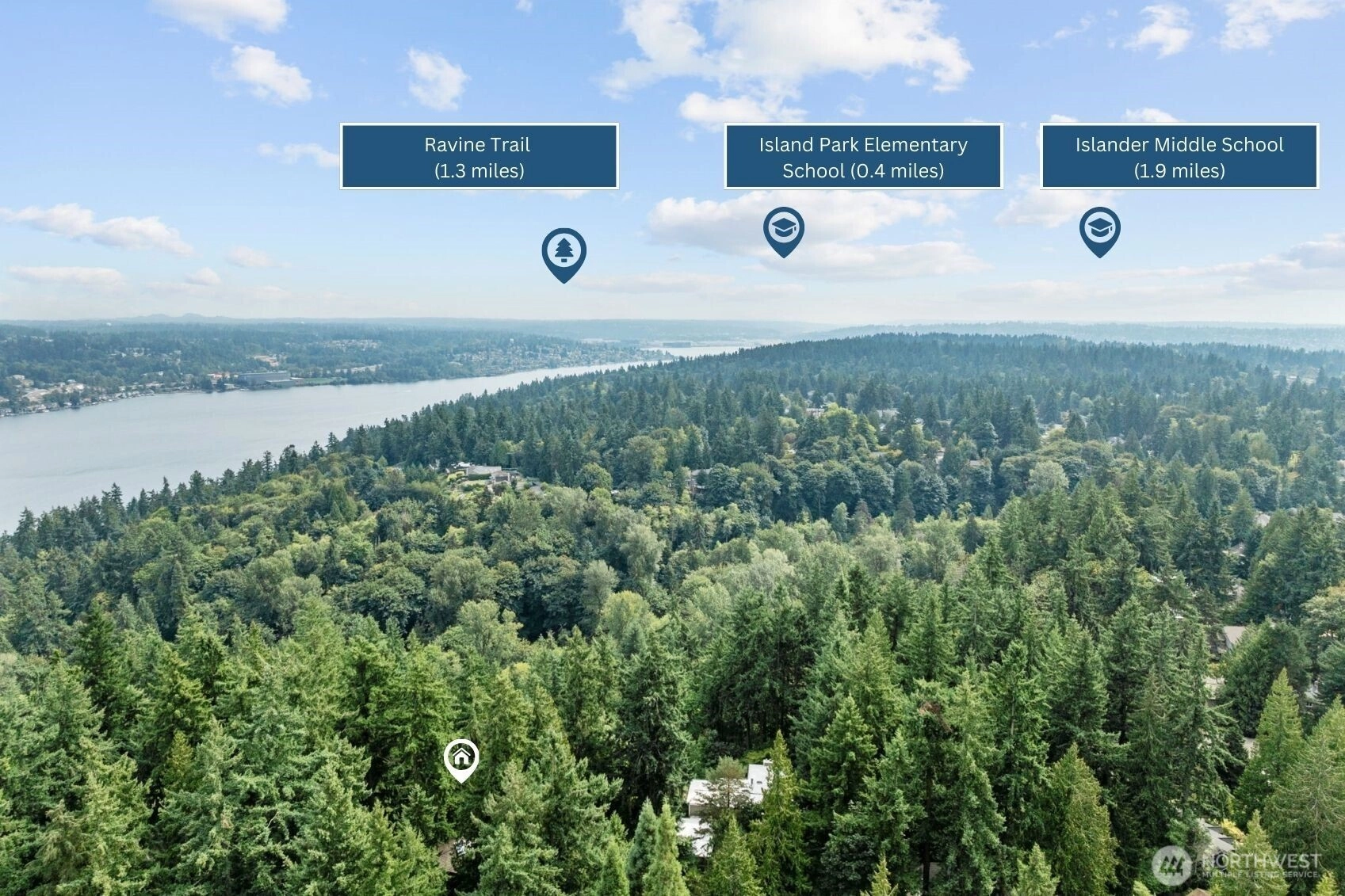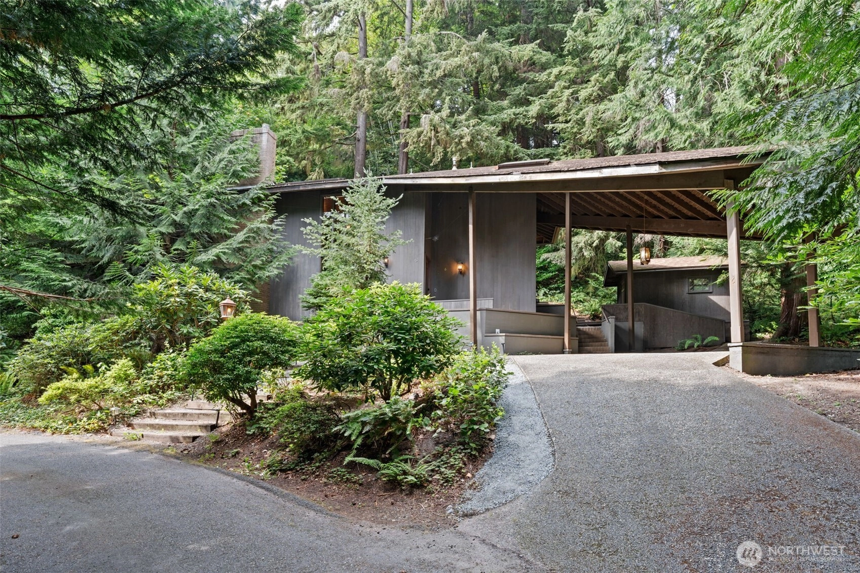 A Mid-Century Retreat designed by Ralph Anderson. Nestled in a serene setting, this Pacific NW Contemporary blends architectural distinction with the warmth of clear cedar finishes both inside & out! Expansive windows, skylights, & vaulted ceilings fill the interiors with natural light. The upper level showcases the kitchen, dining, living, & family rooms, all with seamless flow to expansive decks & patios. The lower level provided you with the private Primary Suite, featuring a wood-burning fireplace & patio, as well as the additional bedrooms. Mature landscaping encompasses the covered entry, setting the tone for this exceptional residence. Peacefully tucked away from the city, yet close to all the island’s many amenities. You'll love it!