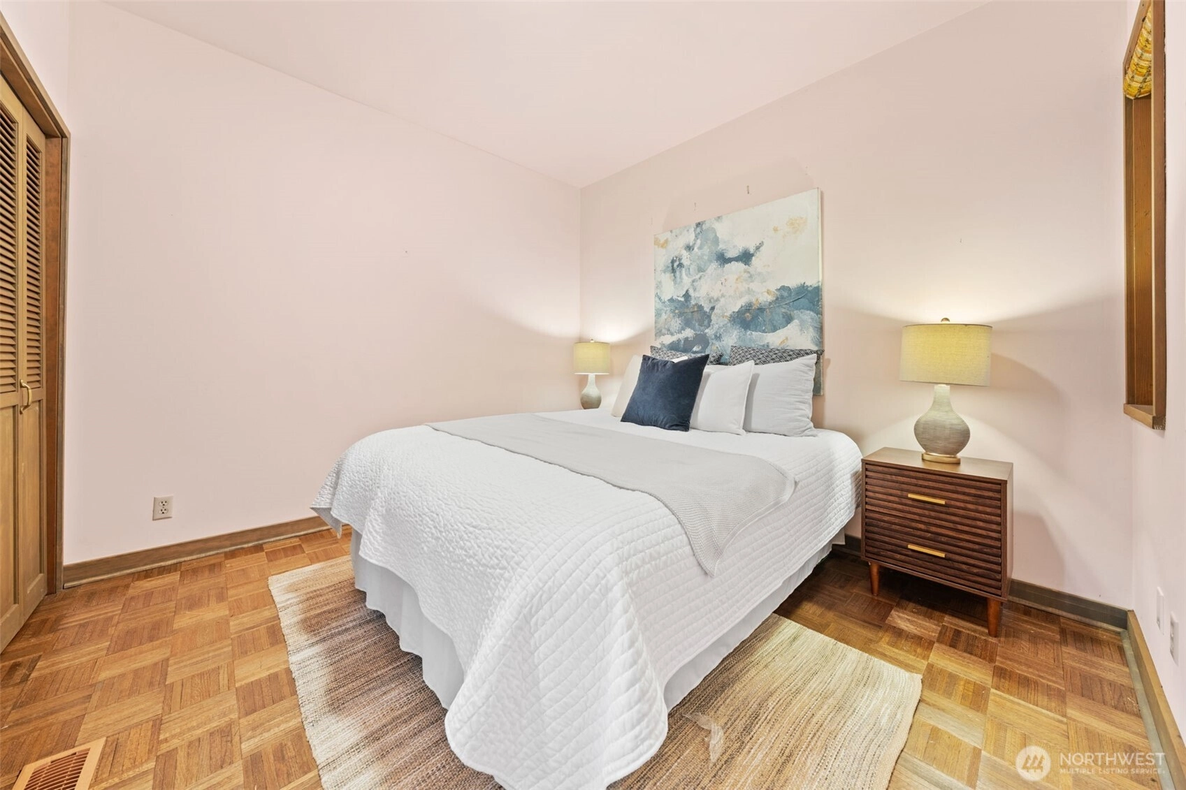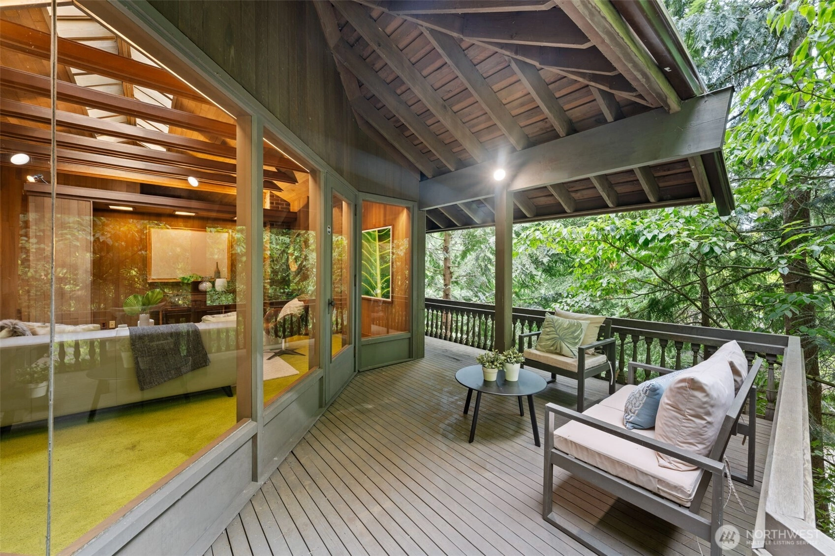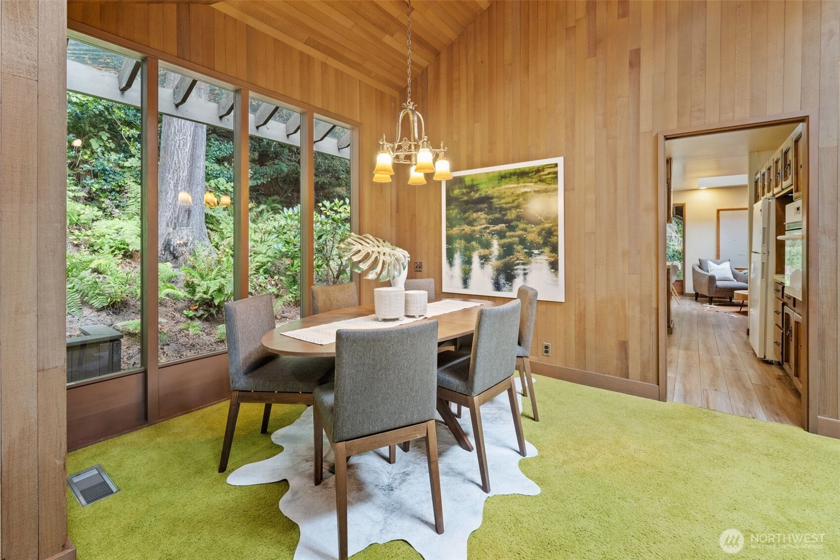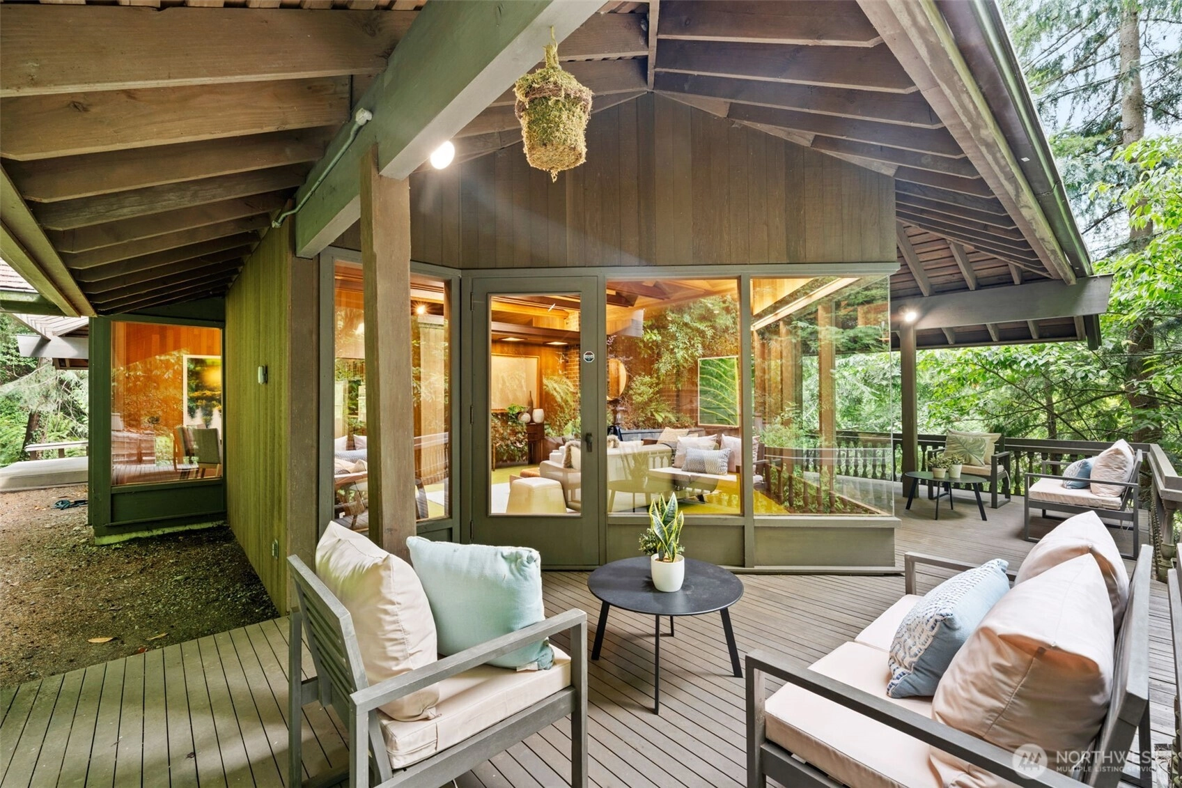 A Mid-Century Retreat designed by Ralph Anderson. Nestled in a serene setting, this Pacific NW Contemporary blends architectural distinction with the warmth of clear cedar finishes both inside & out! Expansive windows, skylights, & vaulted ceilings fill the interiors with natural light. The upper level showcases the kitchen, dining, living, & family rooms, all with seamless flow to expansive decks & patios. The lower level provided you with the private Primary Suite, featuring a wood-burning fireplace & patio, as well as the additional bedrooms. Mature landscaping encompasses the covered entry, setting the tone for this exceptional residence. Peacefully tucked away from the city, yet close to all the island’s many amenities. You'll love it!