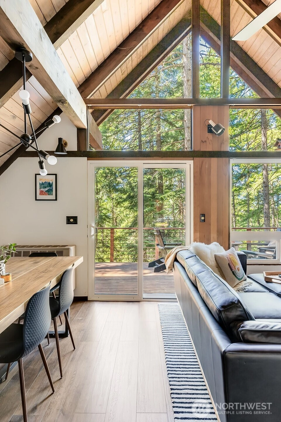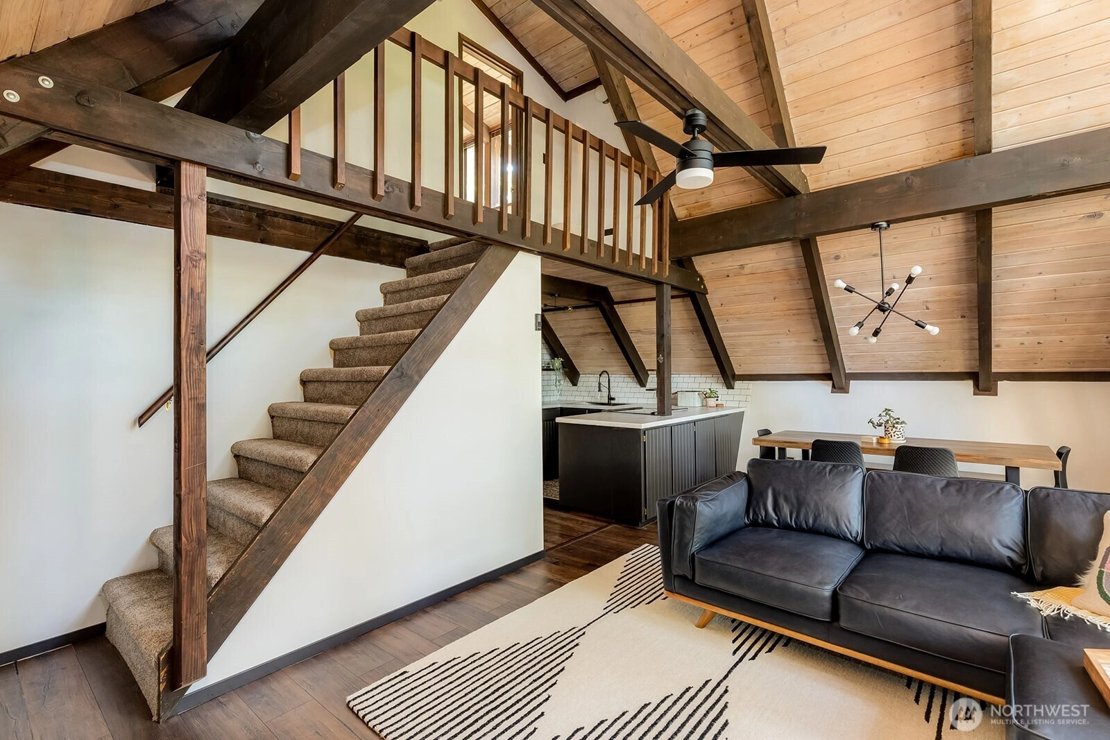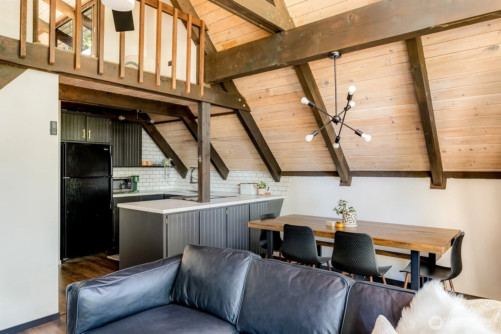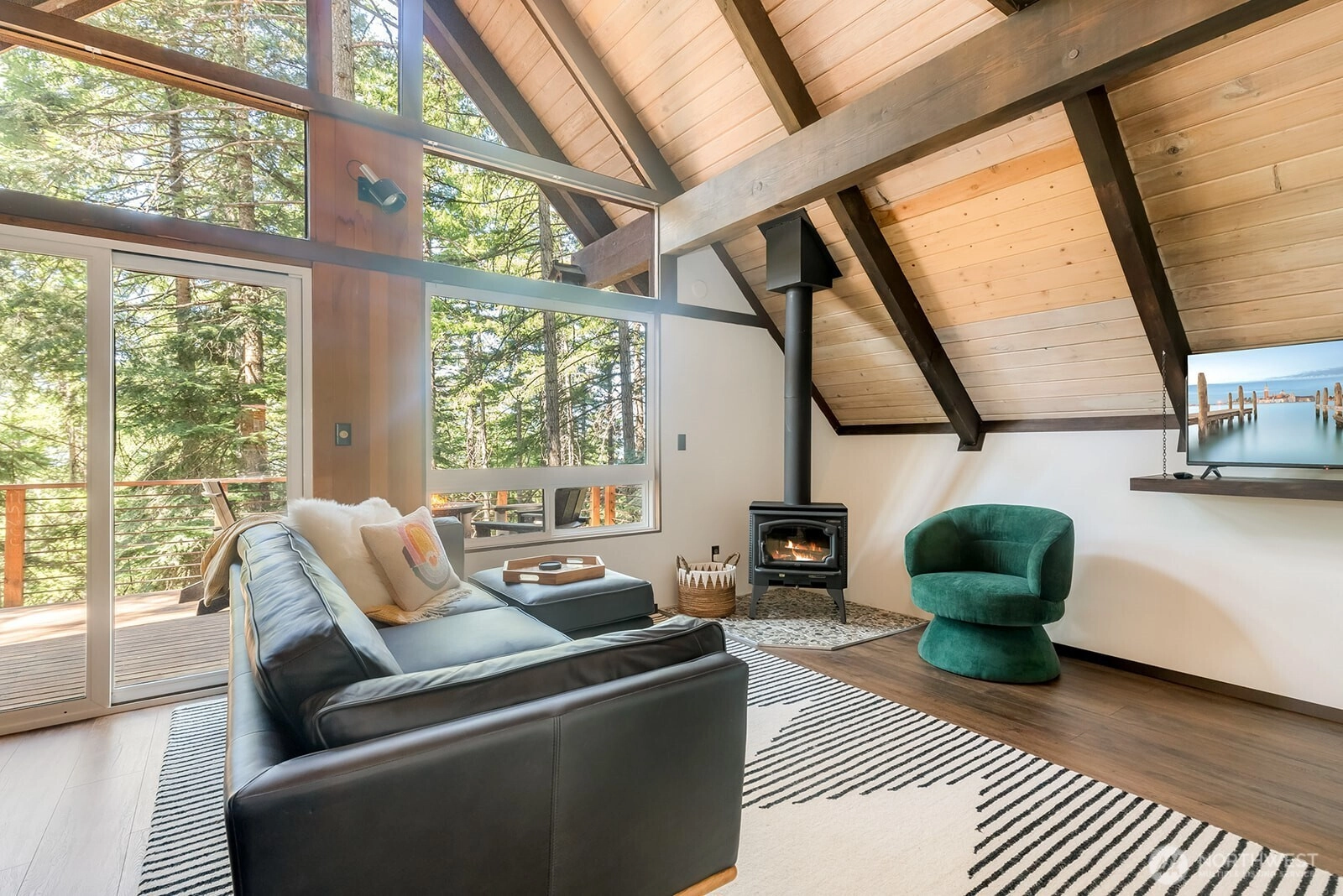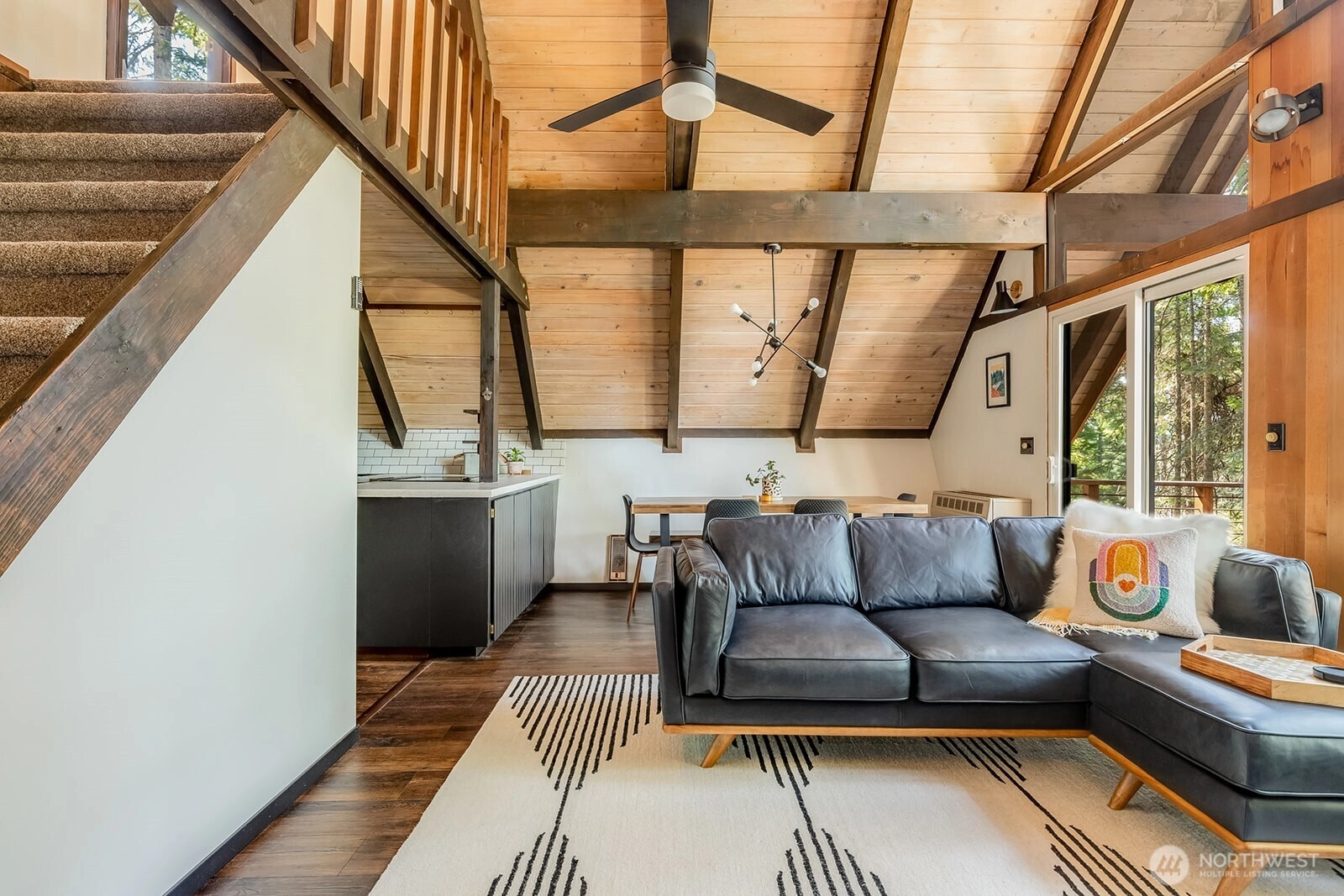 Newly renovated A-frame in Ronald w/ modern & retro vibes, vaulted ceilings & huge picture windows! Comes partially furnished w/ curated new furniture, new wall-to-wall carpet, updated kitchen & bath, open flr plan, wood-burning FP & $35K in upgrades. Enjoy the spacious deck perched high in the pines w/ Lake Cle Elum views + access to lodge amenities: outdoor pool, tennis, clubhouse & private beach in a respectful mountain community. Perfect VRBO or weekend getaway just 90 mins from Seattle! Successful short-term rental history. Close to Roslyn & Suncadia. Bring your snowmobiles & recreational toys for 4-season rec—relax in the mts or explore miles of trails & lake fun!