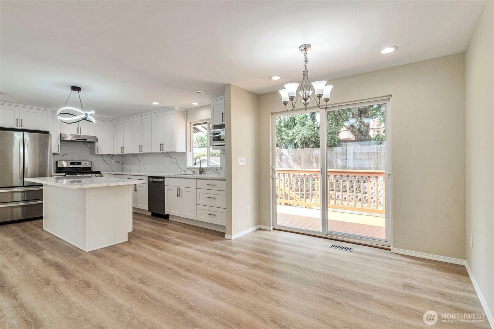 Wonderful turnkey home for You! Move in ready and sure to delight! Beautifully updated inside and out. New floors throughout, new roof, With beautiful kitchen new cabinets & granite counters. New appliances, kitchen w/slider access to back deck and lovely landscaped yard. Backyard has a 10'x12' shed with new painting also. Home as bright open living with freshly painted interior and exterior, outside deck newly stain, Natural gas heating/air condition. Double car garage.