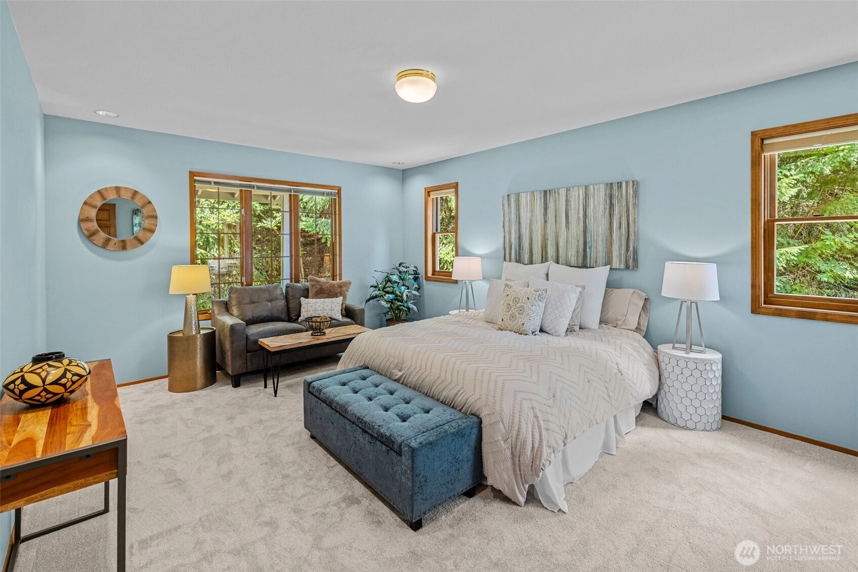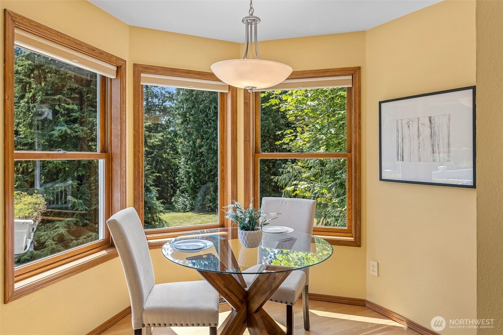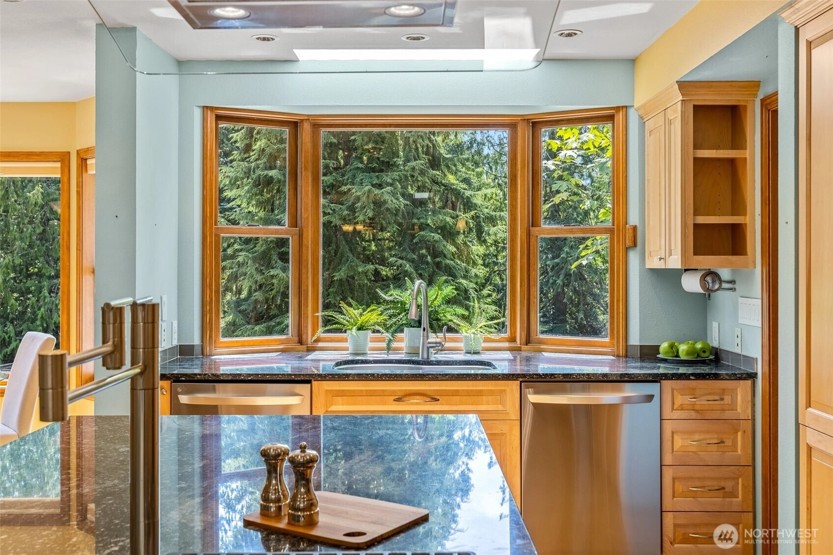 This stunning home on 4.3+ acres feels like a Private Estate! Circular driveway & covered front porch are just the beginning. Spacious living room with marble wood fireplace & hardwood floors. Formal dining room, chef's kitchen with a huge island with sink, breakfast bar, granite counters, double oven, two dishwashers, & 2 garbage disposals. Custom maple cabinets are featured in the kitchen, living room, & laundry room. Primary Suite with walk-in closet & jetted soaking tub. Brand new carpet just installed. The huge yard is sunny, private, and includes multiple fruit trees & plenty of space to garden. You will be awed at the peacefulness of this property. 570 sq ft 2-car garage has 2 50-amp electric car chargers. 20 minutes out of Seattle!