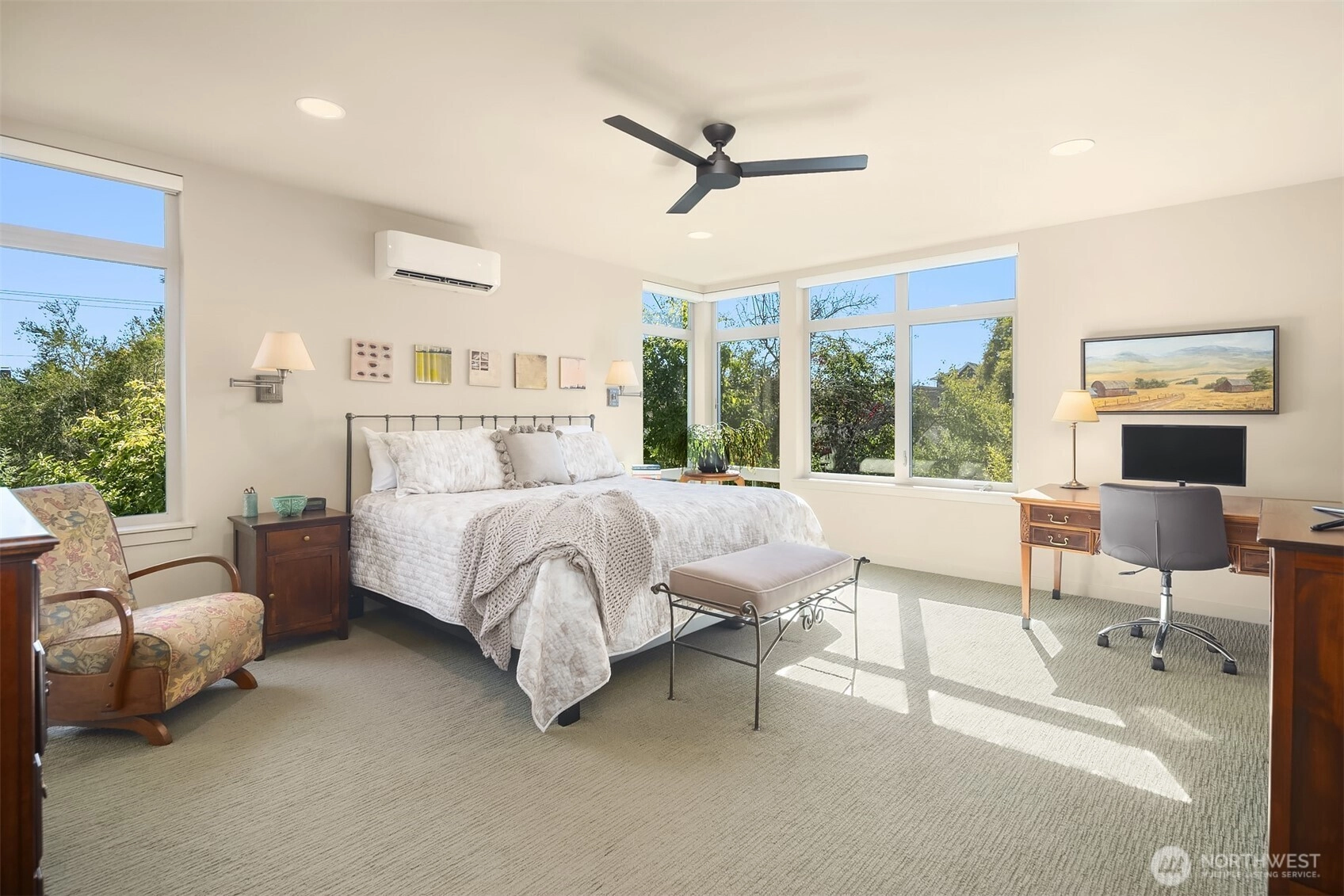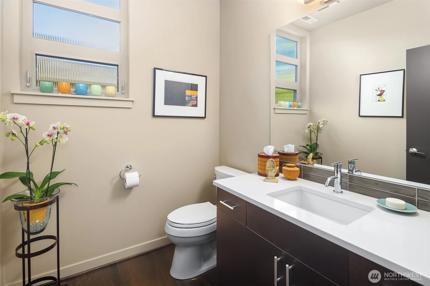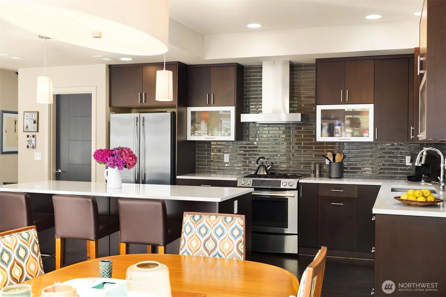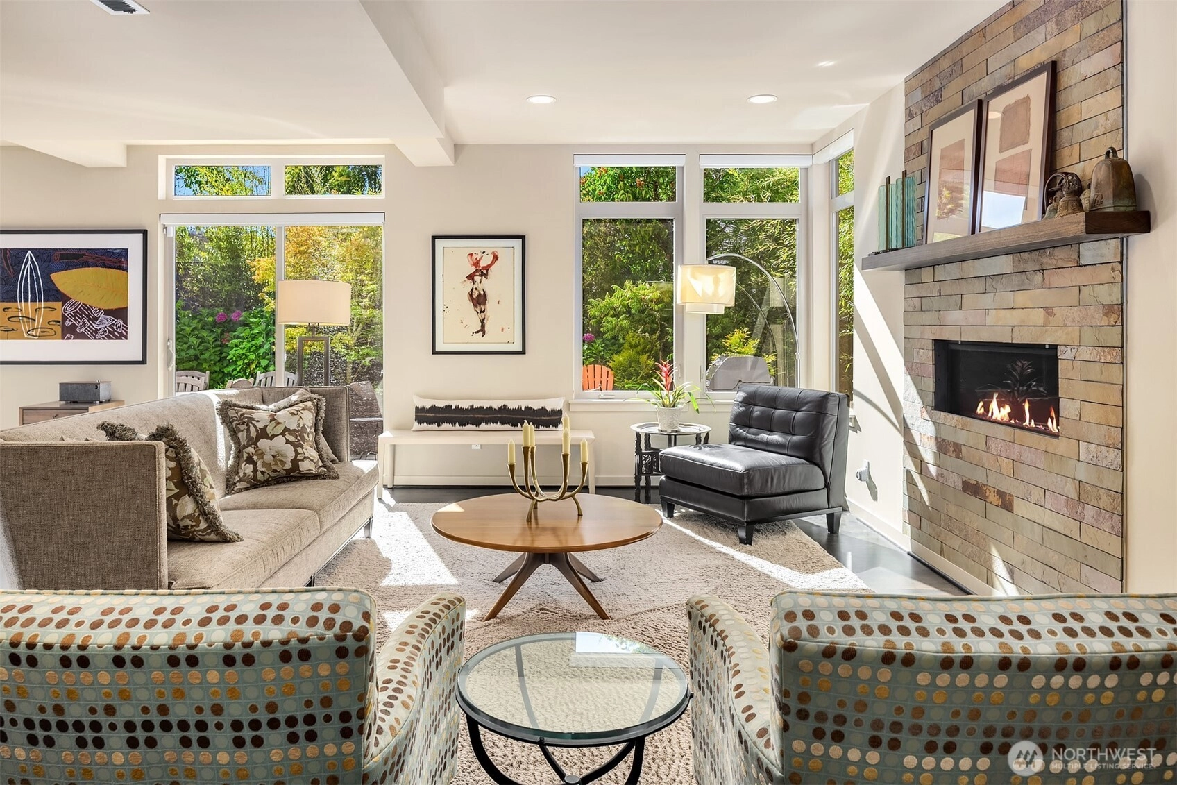 Exceptional modern home in coveted Phinney Ridge with striking design & effortless flow. Dramatic open spaces, ebony oak floors & walls of glass, invite light in. The gourmet kitchen is designed for easy living & entertaining w/ quartz counters, stainless appliances, walk-in pantry & an oversized island. Step outside to the lush west-facing garden with room to lounge and dine—perfect for summer evenings! Retreat upstairs to 3 spacious bedrooms, including a luxe primary suite + laundry. Modern comforts include A/C, a 2-car attached garage, abundant storage, and the rare perk of all living space above grade. Unbeatable walkability just steps to vibrant Phinney/Greenwood shops, restaurants & parks. This home defines sophisticated urban living!