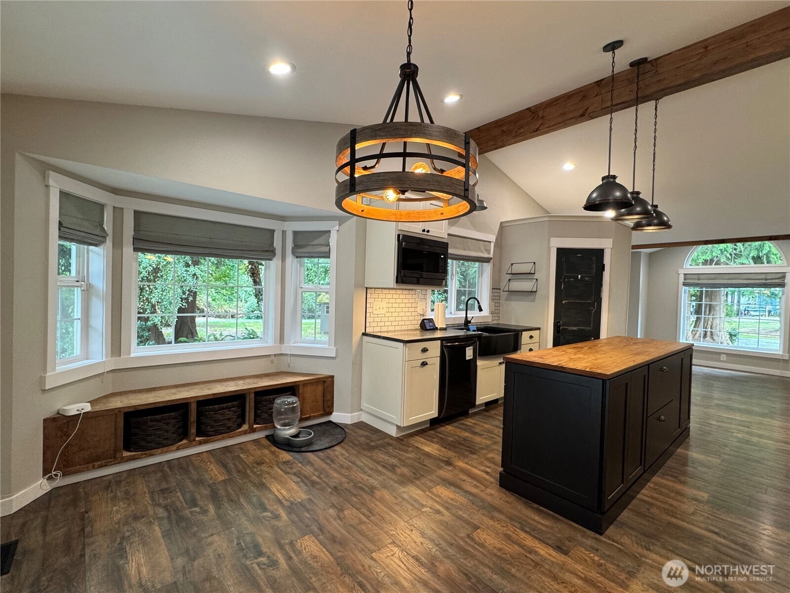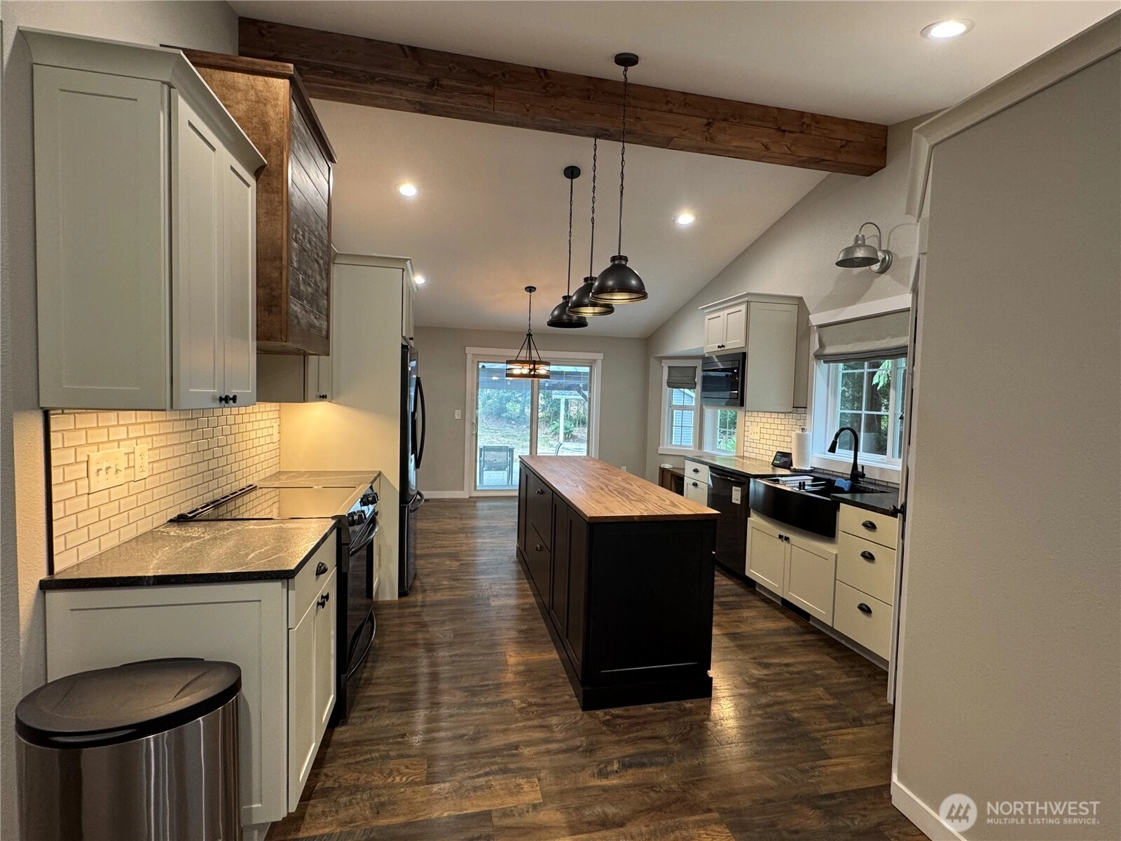 Step into a world where rustic warmth meets contemporary design. This 1432 sq. ft. haven boasts 3 bedrooms and 2 bathrooms, each a testament to thoughtful renovation. The heart of the home is a stunning kitchen, where sleek appliances and a spacious island invite culinary adventures. Vaulted ceilings adorned with exposed wooden beams create an airy ambiance, while large windows frame picturesque views. Luxuriate in spa-like bathrooms featuring designer tiles and modern fixtures. Rich laminate hardwood floors flow throughout, connecting spaces that inspire both relaxation and entertainment. This is more than a house; it's a canvas for your aspirations, a place where memories are made and dreams take root.