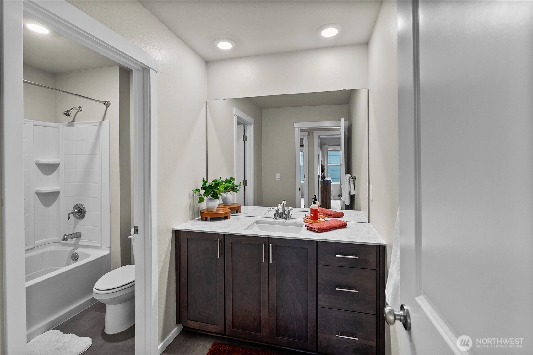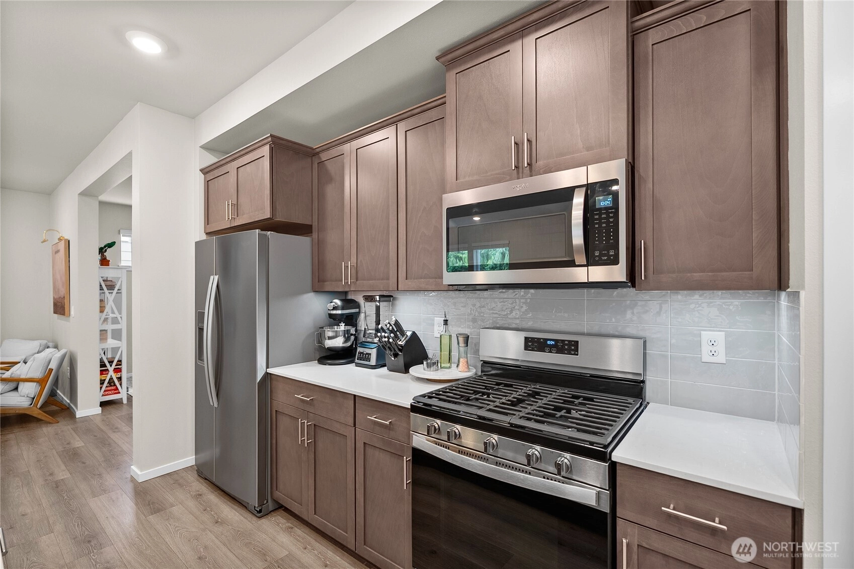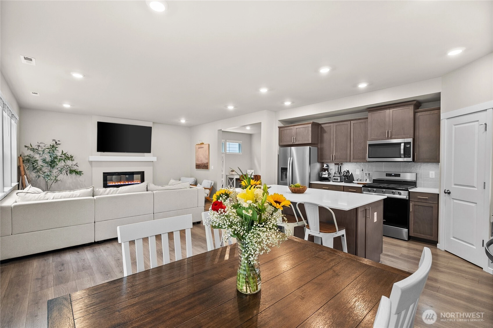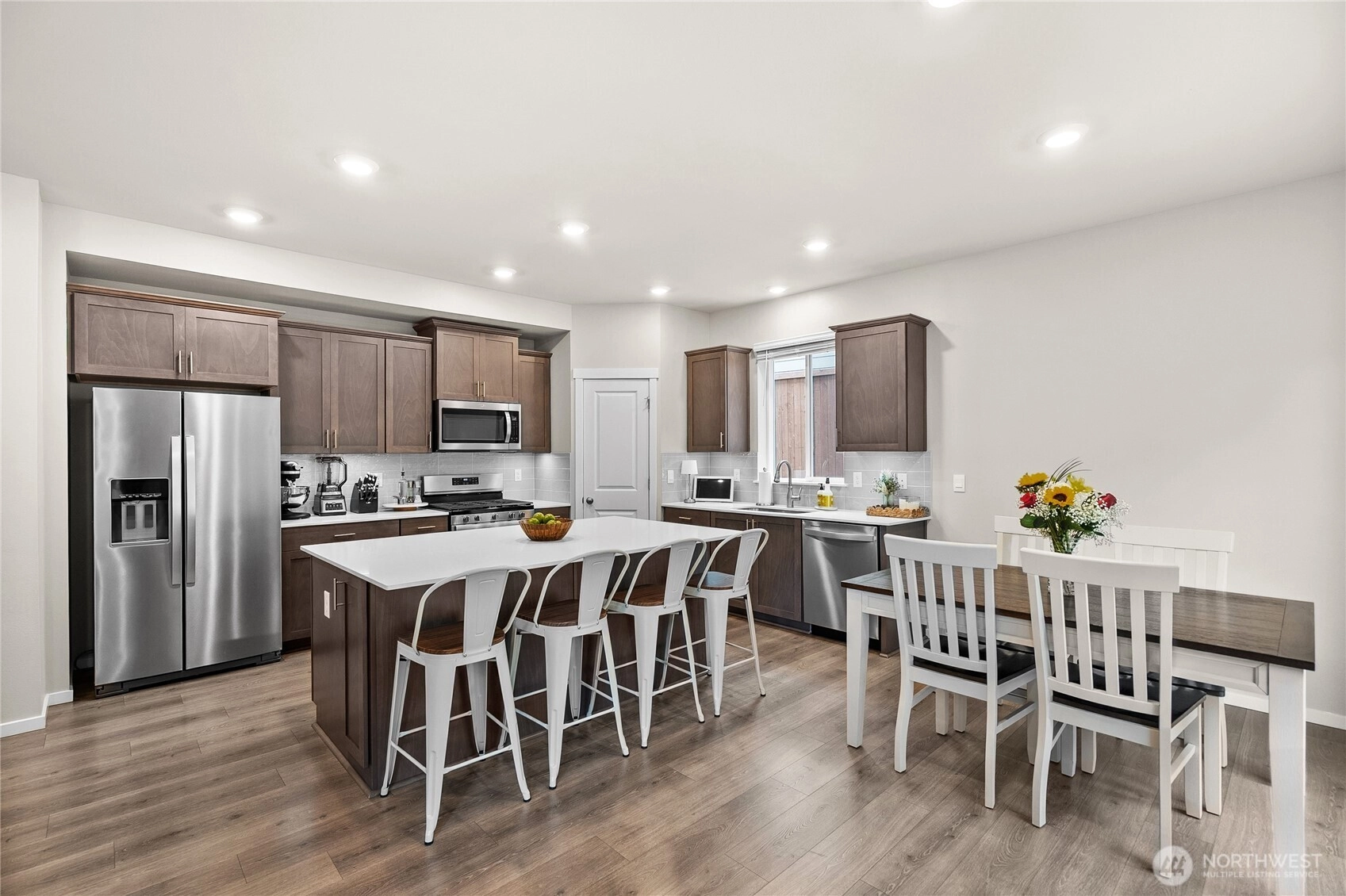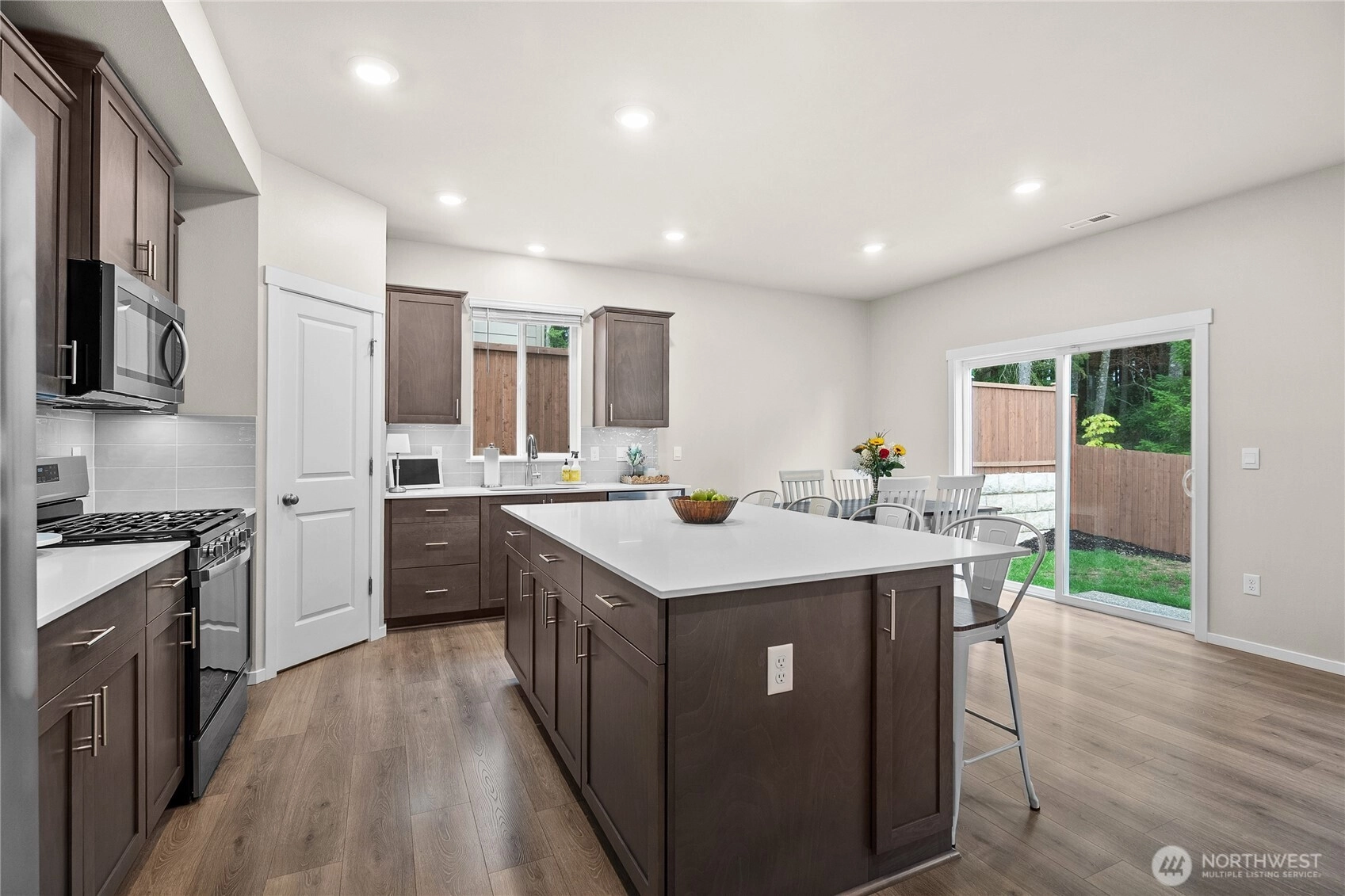 Meticulously maintained home in Port Orchards Stetson Heights community. This beautifully appointed home offers 2,335 sqft of refined living space with 5 bedrooms. On the main floor, you'll find a generously sized great room, dining room and gourmet kitchen. Highlights include a large island, gas cooktop, stainless appliances, and slab quartz countertops,—perfect for entertaining and everyday living. Upstairs you will enjoy the spacious primary bedroom with ensuit, 4 additional bedrooms and the laundry is conveniently located upstairs. Smart home technology equipped. Stay warm in the winter with the fireplace and cool in the summer with the AC! Outside the patio offers a lovely space to BBQ and the forest behind offer a sense of privacy.