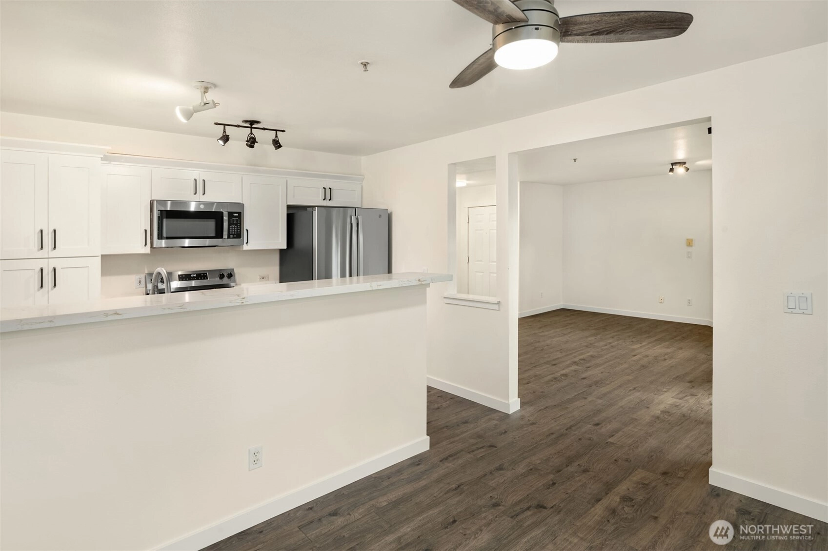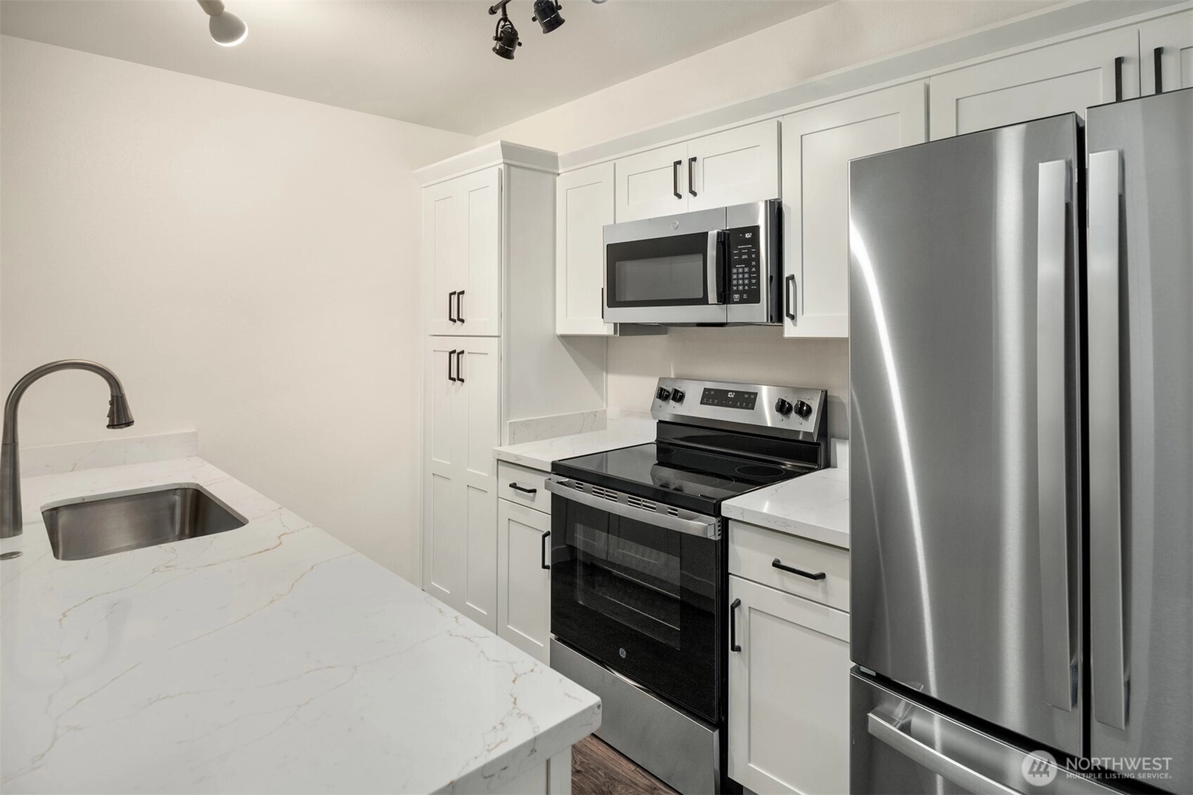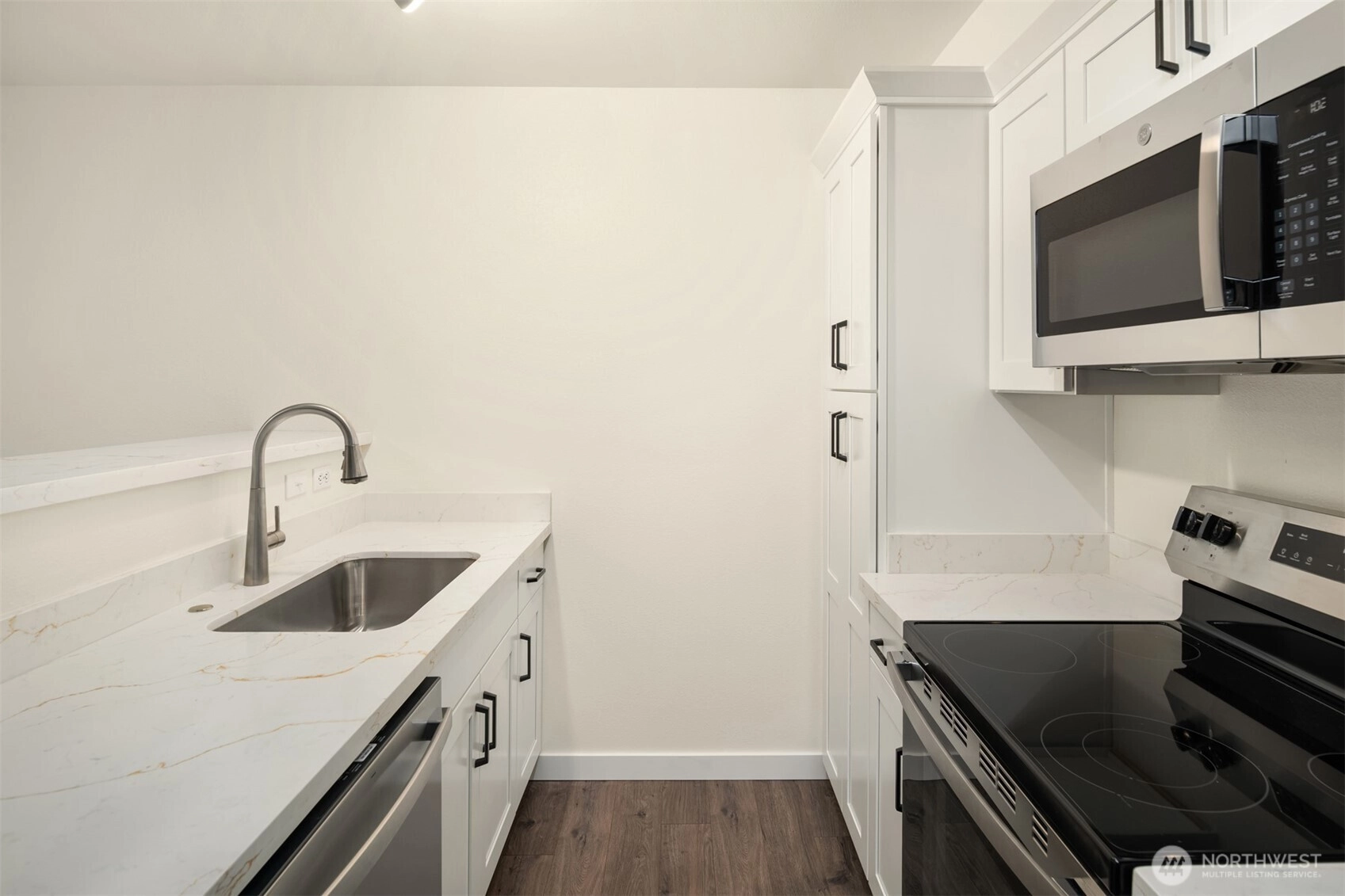 Modern new designer upgrades dazzle throughout this turnkey 2 bedroom ground floor condo in the desirable gated community, Sunrise at Benson! Attractive curb appeal with gorgeous grounds & refined exterior updates. Better than new with impressive upscale finishes: white shaker cabinets, quartz counters, new doors, high-grade millwork, luxury plank floors, fresh paint, contemporary lighting & more. Covered entry & tile foyer. Spacious open living room with gas fireplace, tv nook & wall of windows overlooking extended covered patio with storage. Stunning all new kitchen with SS appliances & breakfast bar opens to dining room. Primary suite with walk-in closet. Lavish new bath. Carport + ample parking & playground. Low dues with no rental cap!