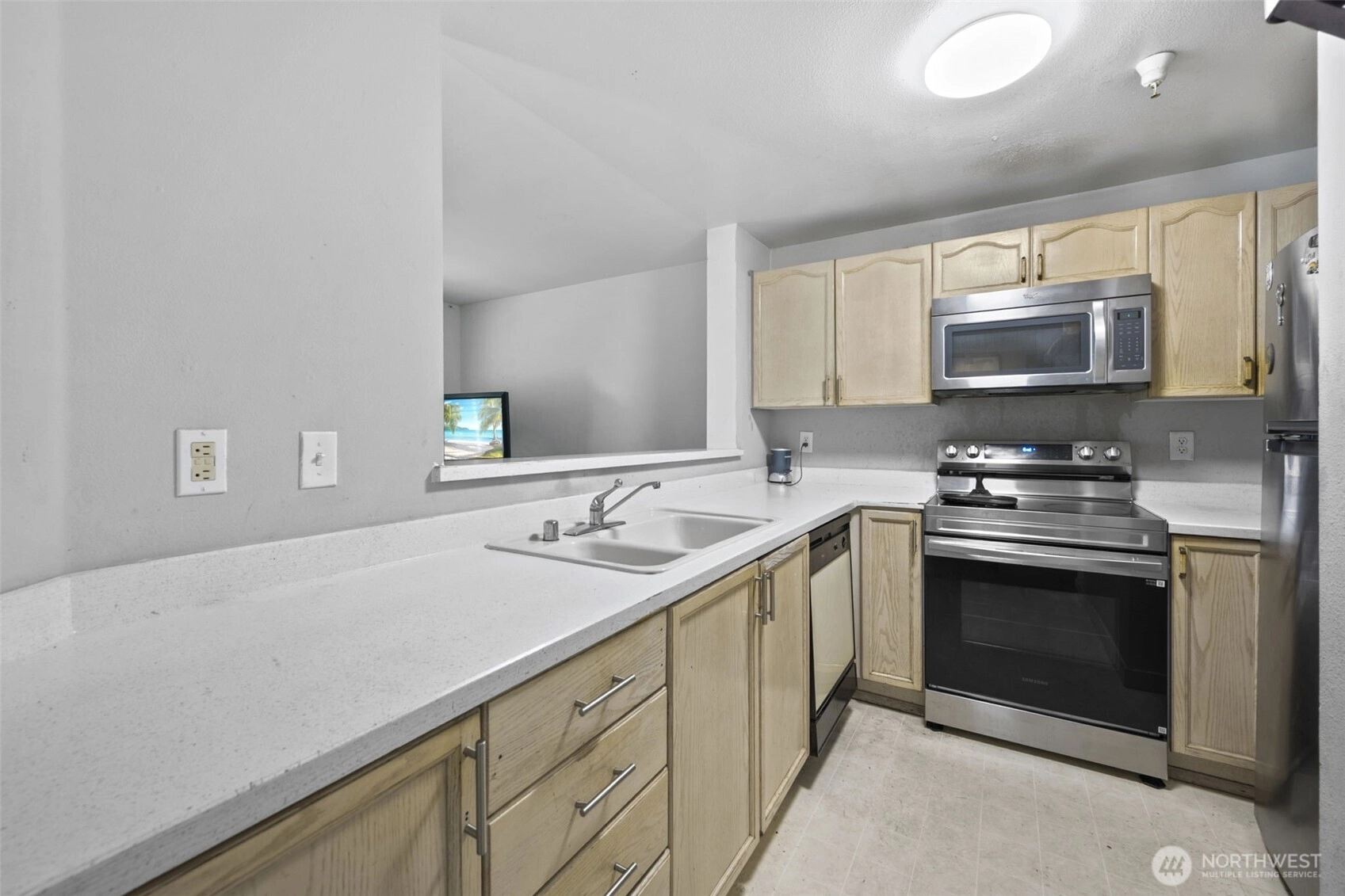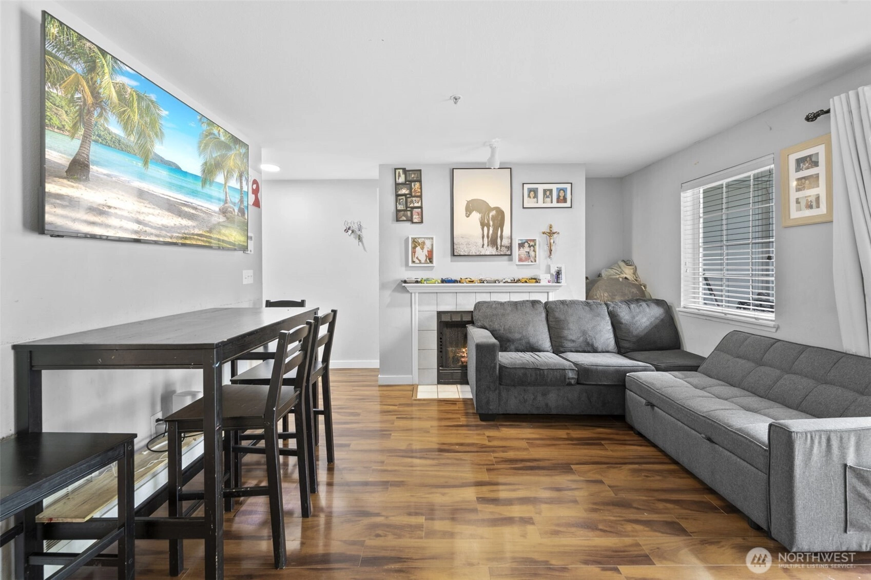 Charming condo 2 bedroom, 1 bath ground floor unit has everything you need for easy living. offering privacy and unbeatable location step into warm tiled entryway with coat closet leading to spacious living room featuring a cozy fireplace sliding glass door to your private patio .the kitchen boast a breakfast bar for casual dining while the full-sized washer and dryer are tucked into the hallway with built-in shelving for added convenience the bathroom connect to the primary bedroom which include a generous walk in closet plenty visitors parking you get 1 parking spot and 1permit min from I5 AND 405 everything you need ideal for first time home buyer, downsizers or savvy investors seeking peace without sacrificing accessibility