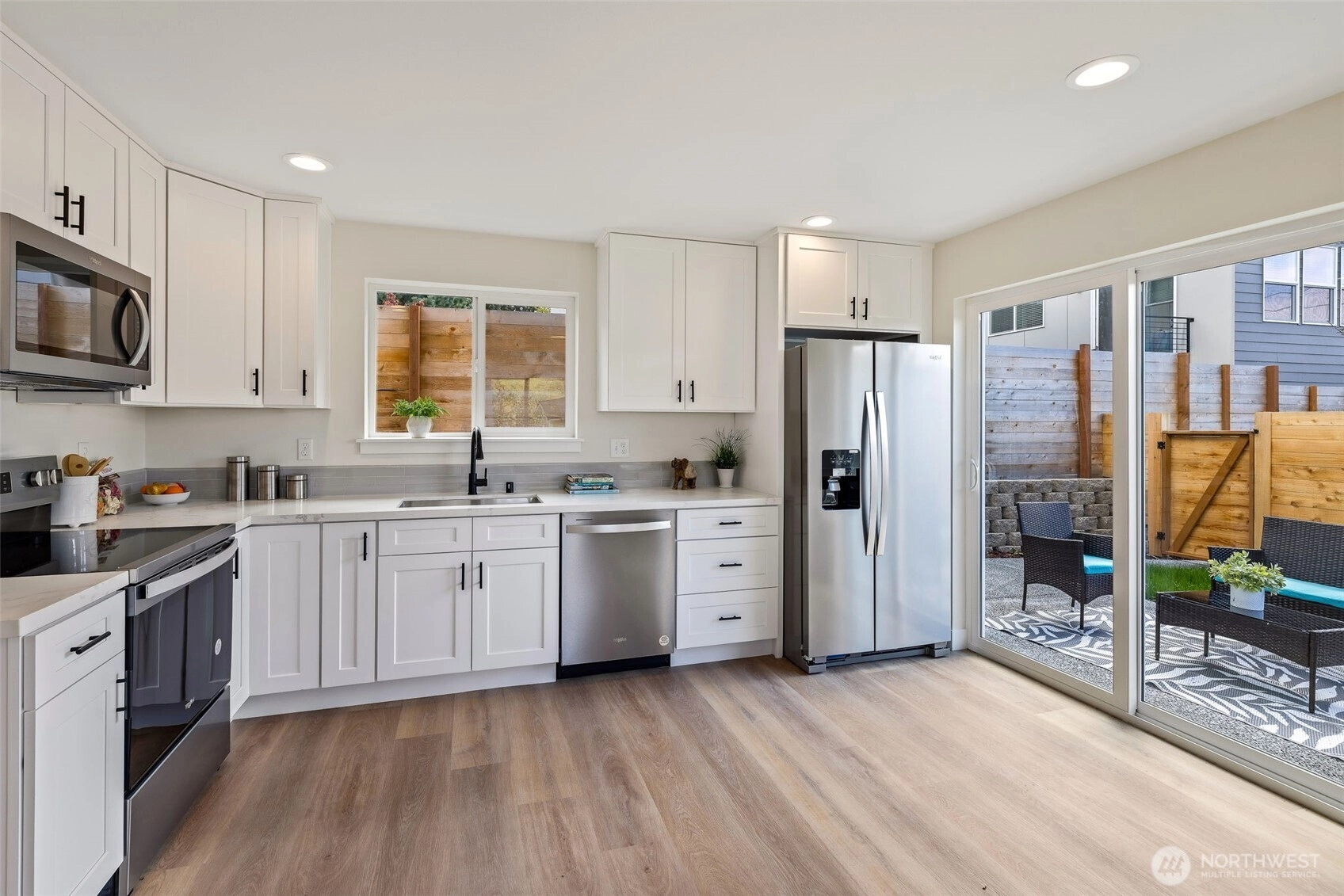 Brand New and Beautiful! This two-bedroom home with an office in South Park is ready for you to move in. You'll love the sunny patio and yard. This home has been thoughtfully designed for functionality. On the main floor, you'll find an open plan that includes the kitchen, dining area, and living room. Large windows allow for plenty of natural light, and the sliding door provides access to the patio from the kitchen. Additionally, there is a convenient powder room on this level. Upstairs, the primary bedroom features its own bathroom, and there is a second bedroom, an office, and a three-quarter bath. This home also has air conditioning for your comfort. It offers easy access to the freeway. Close to restaurants, coffee shops, and bars.