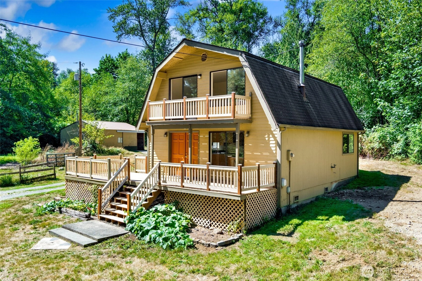 Create your very own mini farm on 2.3 of DEEDED level land w/ this charming country-style home. Tucked away on a quiet dead-end street, this property offers a perfect mix of tranquility and function. Step into a refreshed kitchen, w/ new range, that opens up to the dining & living areas + a warm wood fireplace. Updates include new septic tank, decking, fresh paint, new flooring, modern lighting + more. A large detached 24’x30’ garage-shop w/ power is ideal for projects, storage + space for RVs, Boats & large work trucks. With water from a pristine well & easy access to I-5, you’ll find the comfort of country living w/ the convenience of the city just minutes away. If you’ve been searching for space & practicality, this property has it all.