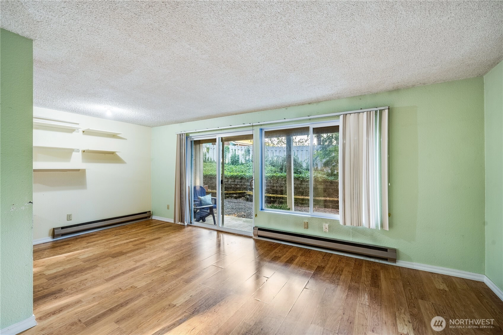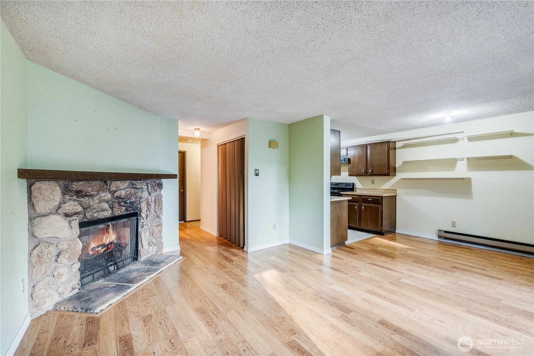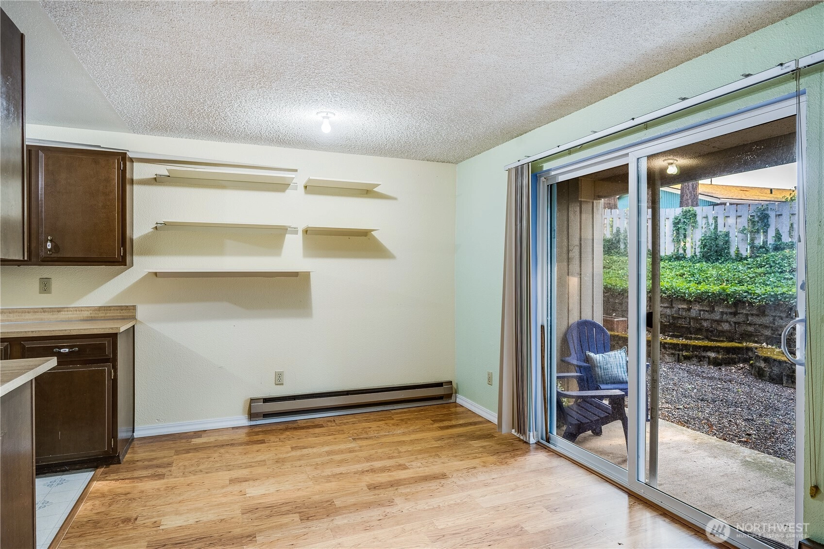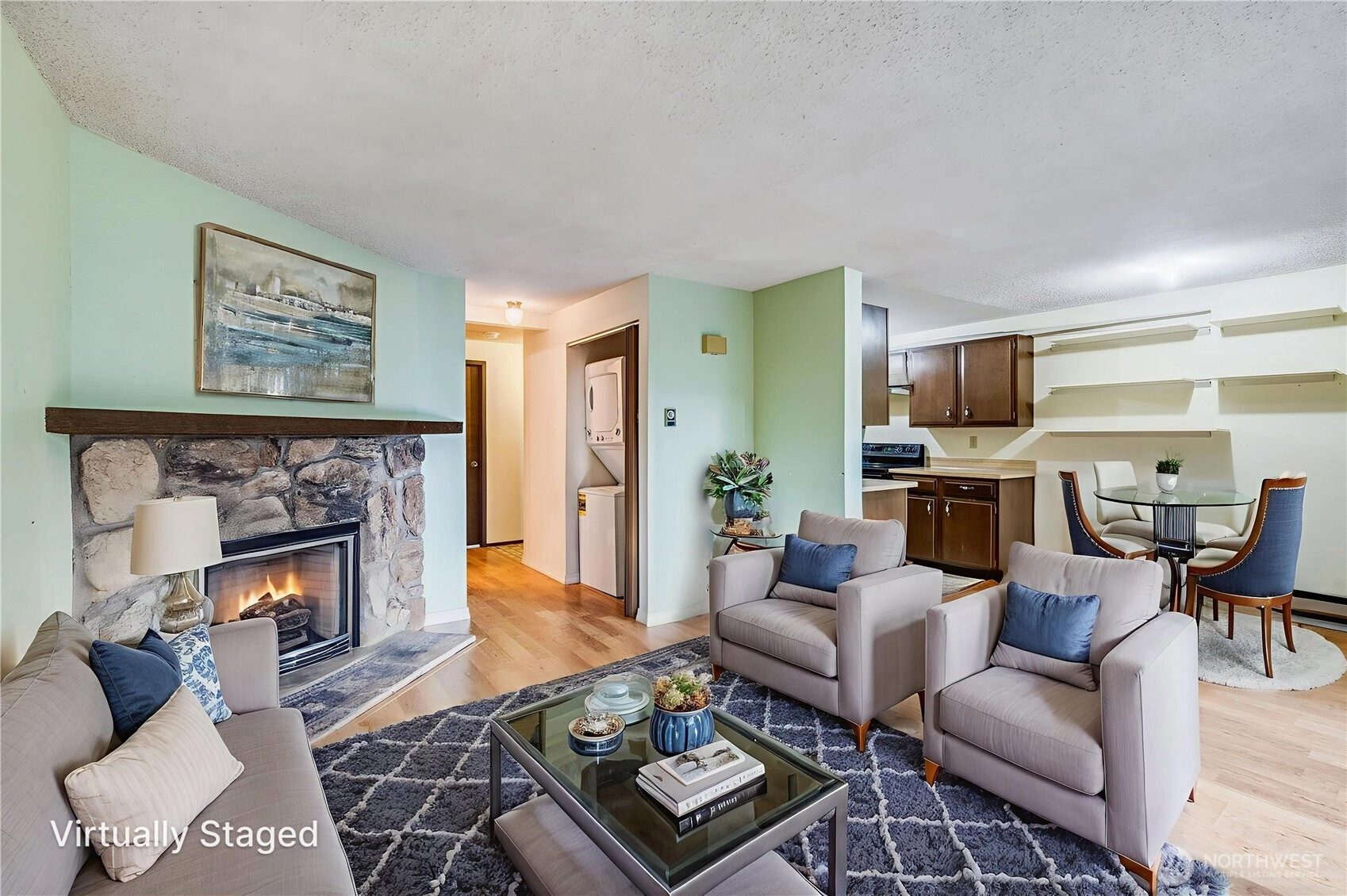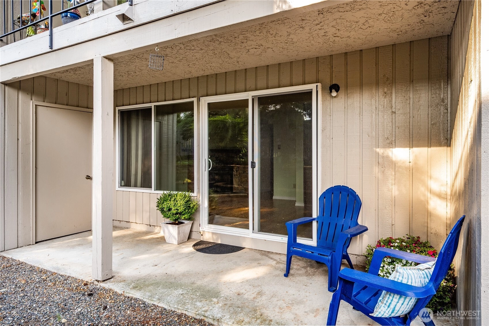 Welcome home to this darling, move-in ready condo! This ground floor unit features a spacious covered patio that looks out over a private, serene view. The grassy back area is ideal for a pet to easily go outside. With a large sliding door and window, you’ll enjoy lots of natural light in the living space. Also featuring a newer step-in shower, wood laminate floors, a wood burning fireplace, and a stackable washer and dryer. The dedicated carport spot is conveniently located right in front, just steps away! The Winchester Heights complex features a playground and fenced athletic court, and is across the street from an elementary school. Affordable HOA dues! Available to the market for the first time in 30 years. Come make it yours!