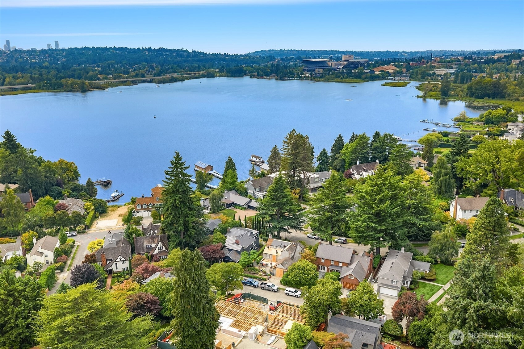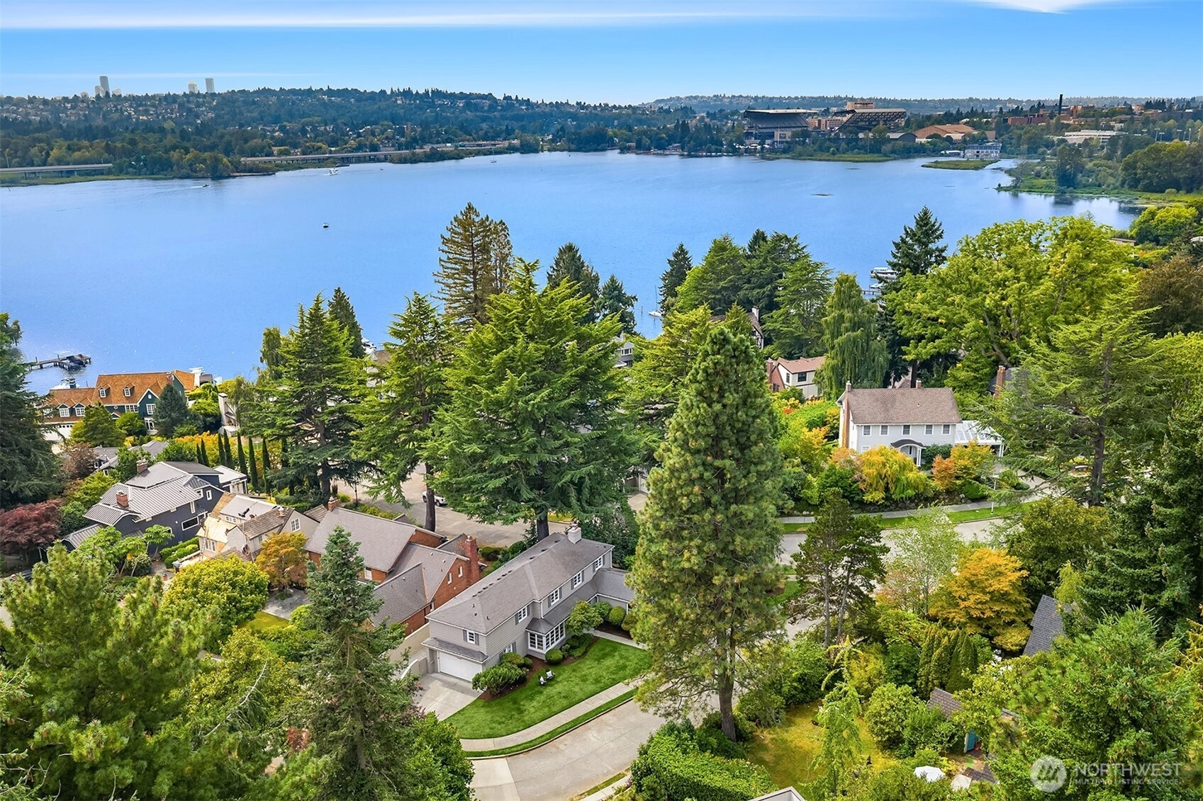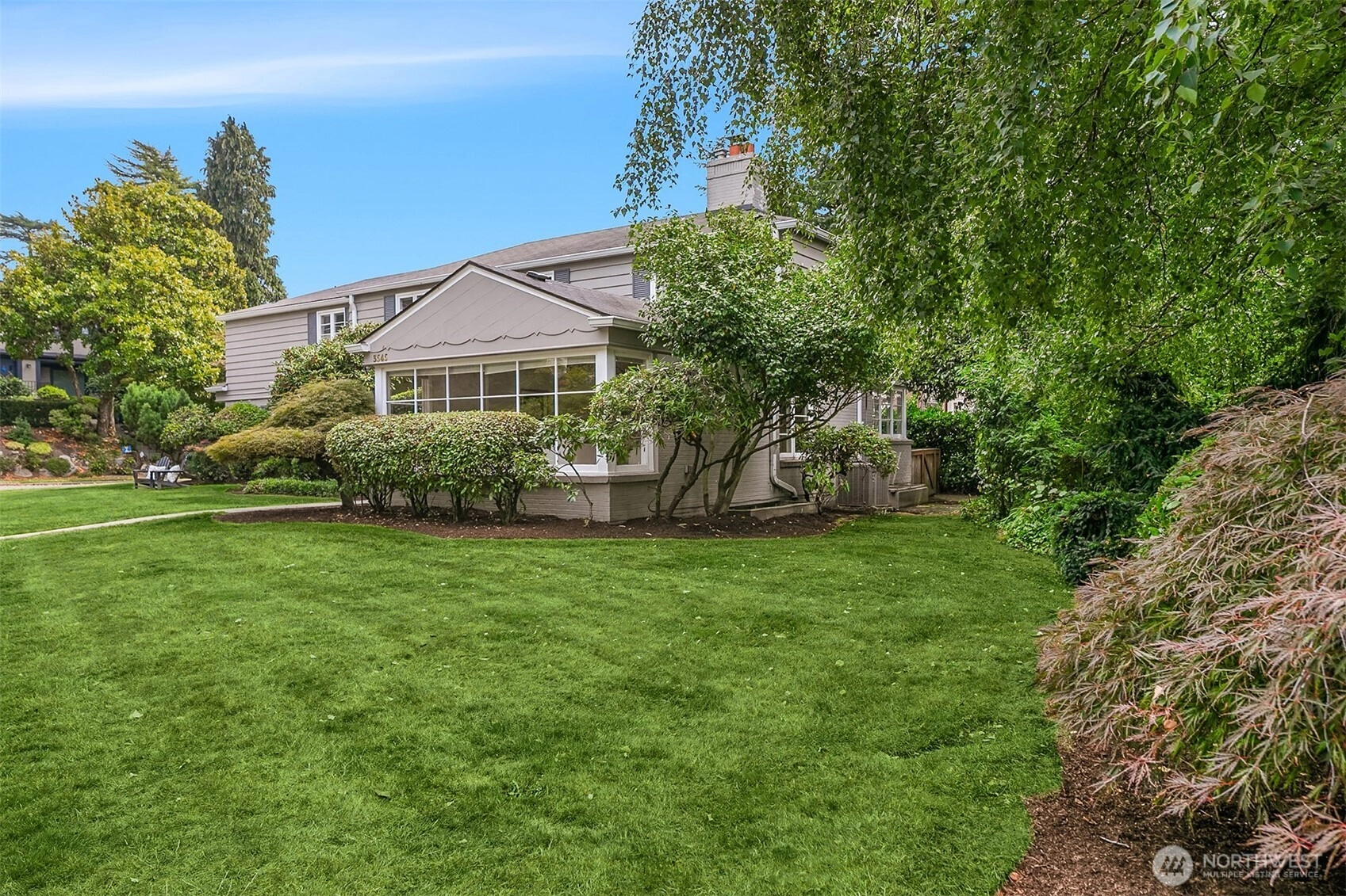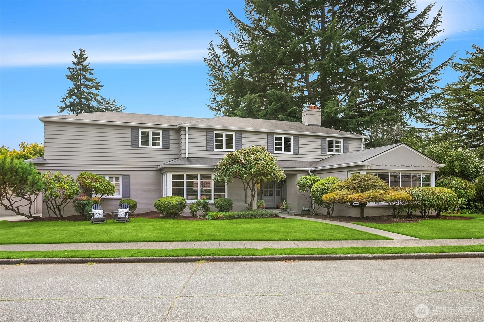 Prestigious Laurelhurst living on a rare oversized corner lot near Lake Washington, Husky Stadium, University Village & Children's Hospital. This elegant residence features a 2-car garage, private entertaining patio & garden spaces. The spacious kitchen with breakfast nook opens to a sunny dining room and leads to the grand living room with wood-burning fireplace. Flexible main floor bedroom/office, plus 4 bedrooms upstairs (1 with lake views!) including a serene primary suite with walk-in closet & spa-like bath. Lower level offers a rec room with fireplace, playroom/optional bedroom, laundry & abundant storage. Enjoy modern comforts with A/C, all within the coveted Laurelhurst Beach Club boundaries & just 2 blocks from public lake access.