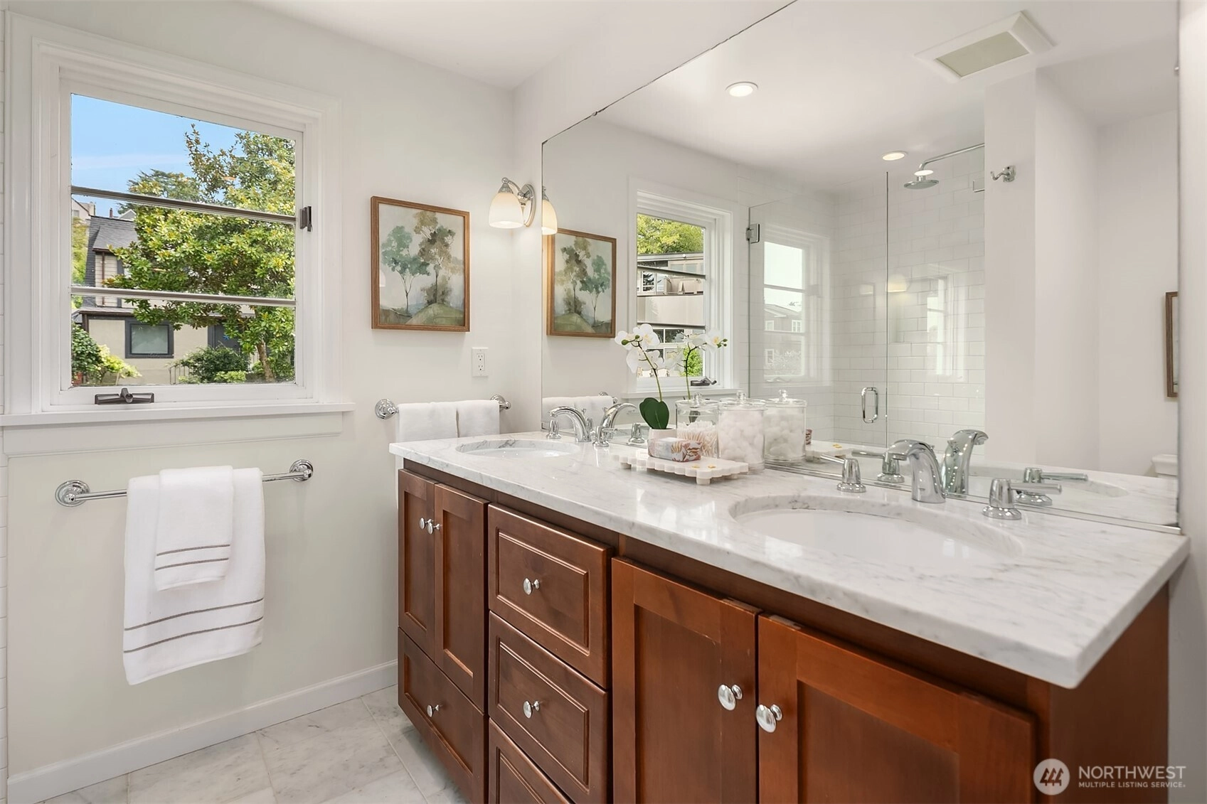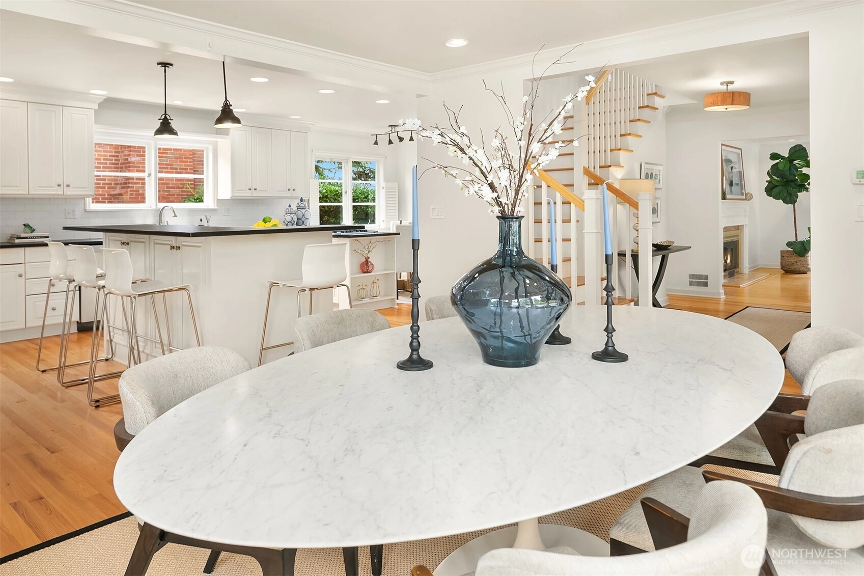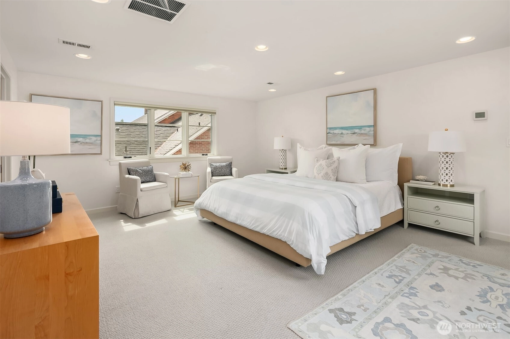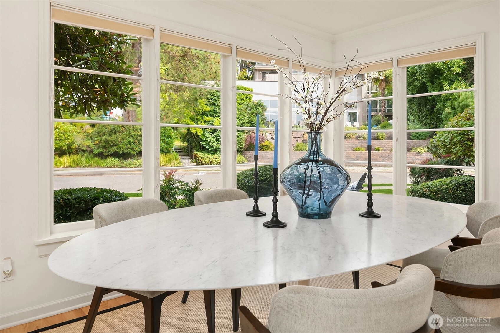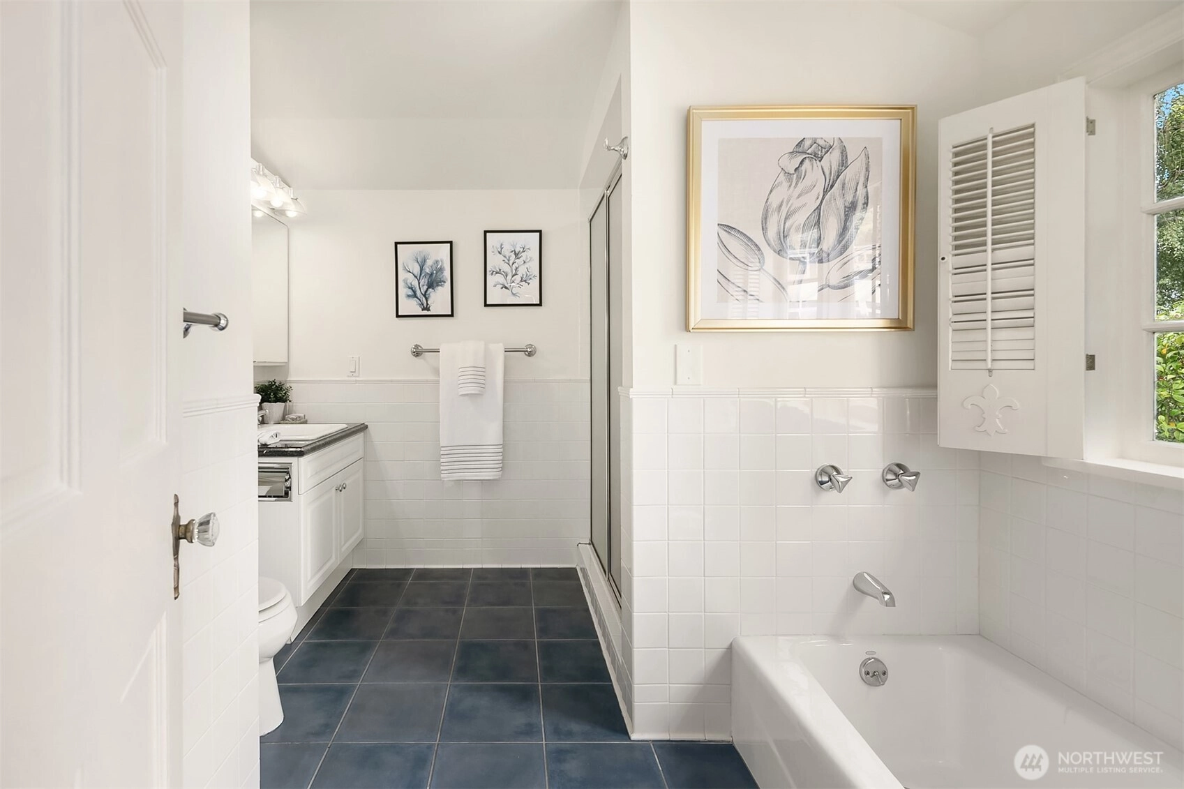 Prestigious Laurelhurst living on a rare oversized corner lot near Lake Washington, Husky Stadium, University Village & Children's Hospital. This elegant residence features a 2-car garage, private entertaining patio & garden spaces. The spacious kitchen with breakfast nook opens to a sunny dining room and leads to the grand living room with wood-burning fireplace. Flexible main floor bedroom/office, plus 4 bedrooms upstairs (1 with lake views!) including a serene primary suite with walk-in closet & spa-like bath. Lower level offers a rec room with fireplace, playroom/optional bedroom, laundry & abundant storage. Enjoy modern comforts with A/C, all within the coveted Laurelhurst Beach Club boundaries & just 2 blocks from public lake access.