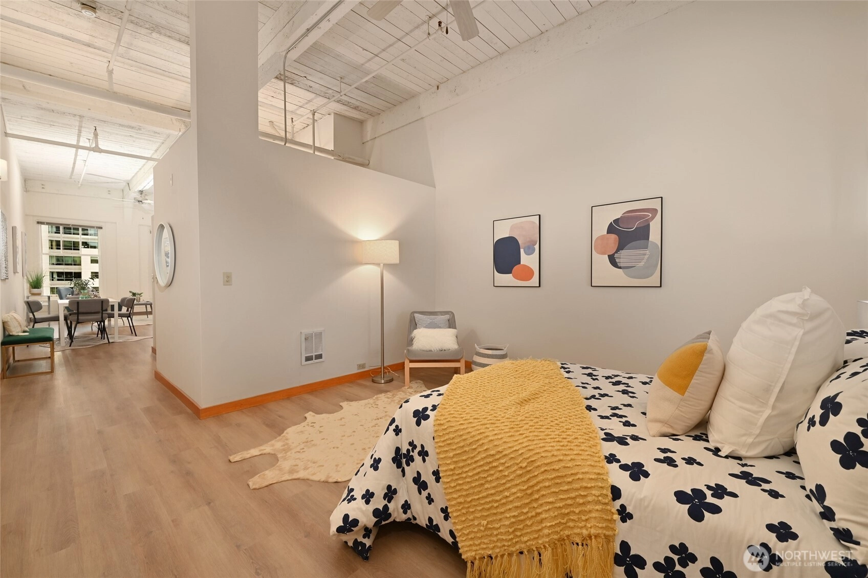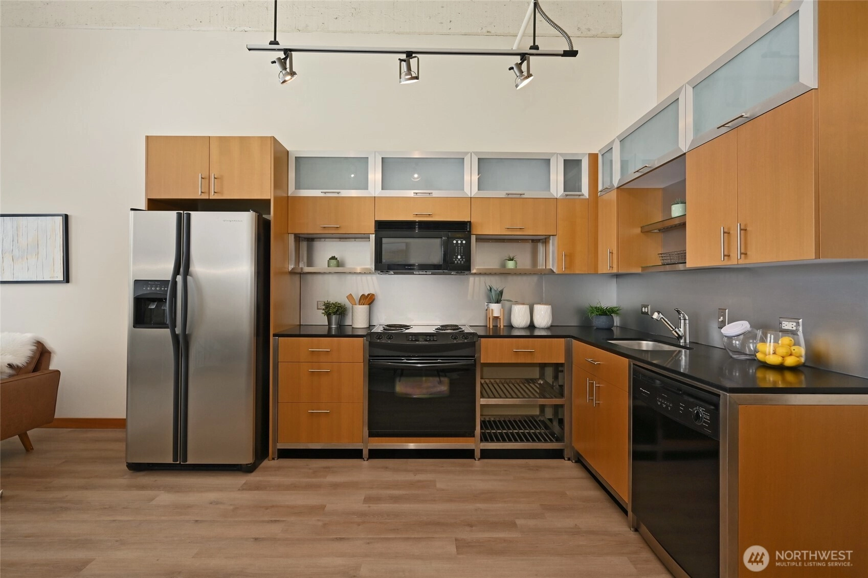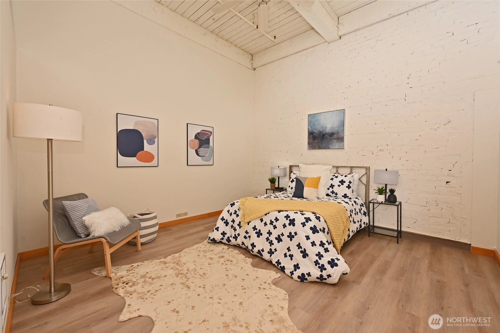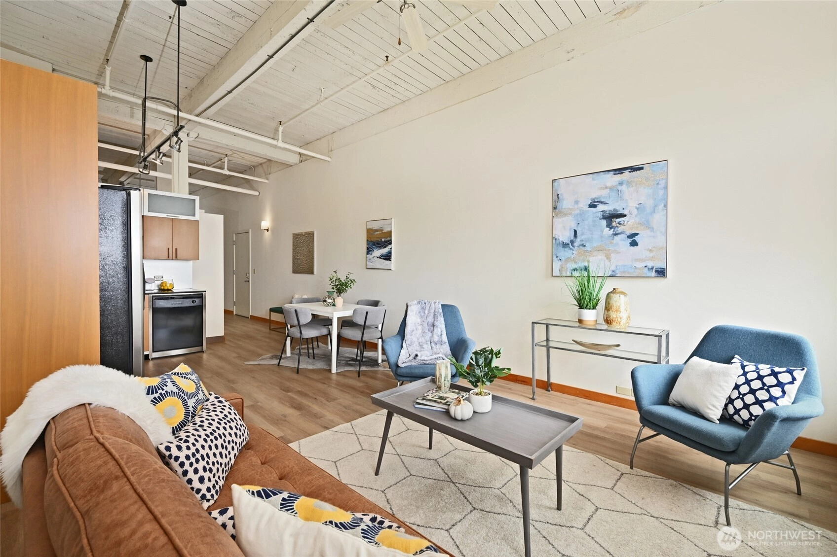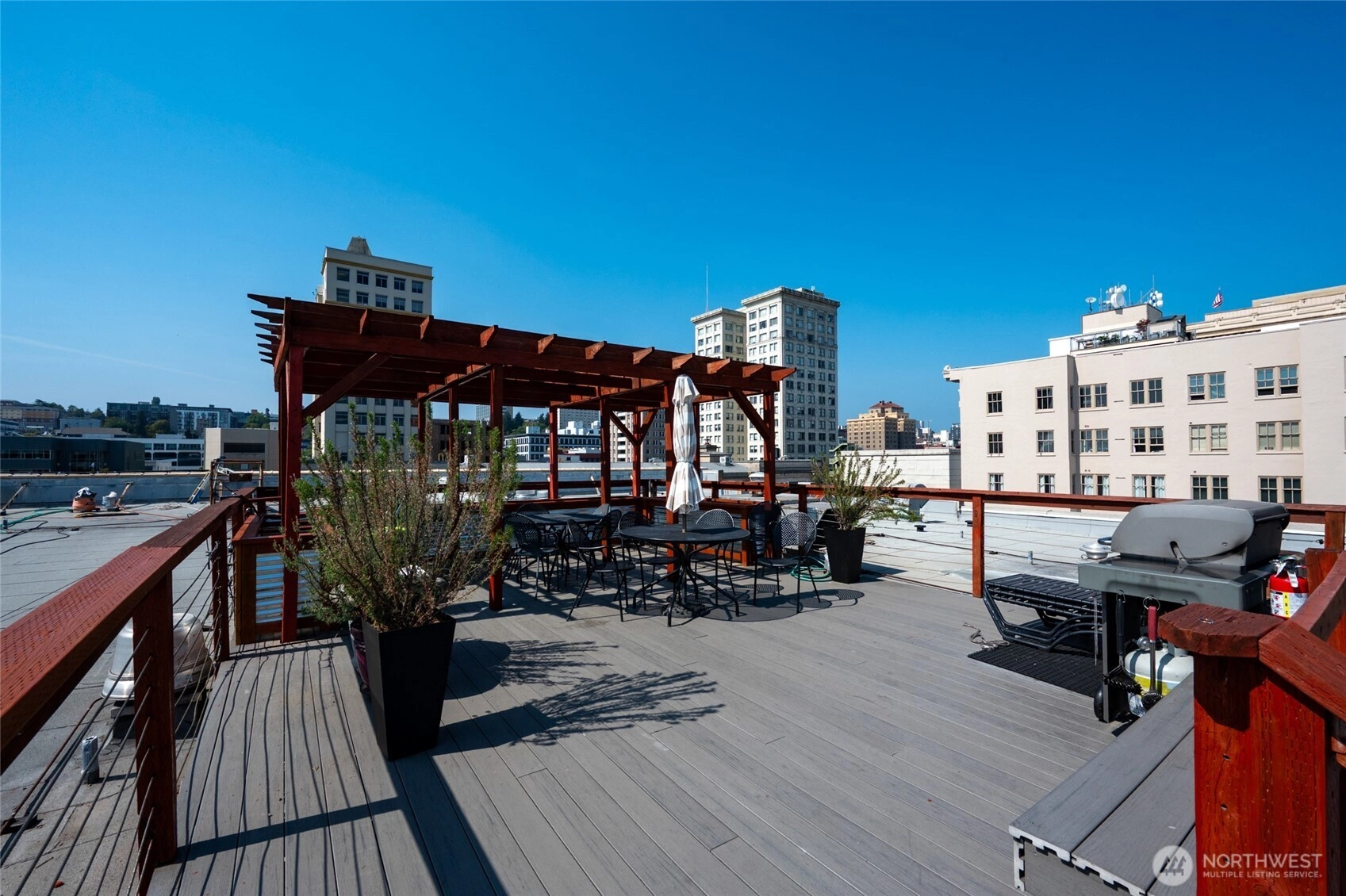 Beautiful historic Cliff Street Lofts top floor penthouse with spectacular unobstructed view of Mt Rainier, Thea Foss waterway and city! Spacious open room concept with NEW 8 foot insulated windows and 12 foot ceiling. NEW luxury plank floors, freshly painted, bright living/dining area with ceiling fan, contemporary kitchen, washer/dryer combo and closet. Large bedroom, 12 foot ceiling and fan. Garage parking space and storage locker. Cliff Street Loft amenities include a free laundry room, rooftop deck with outstanding views, barbeque, garden and more. Close to shops, restaurants, entertainment, UW campus and street car. Easy access to I-5, museums, waterfront activities, Point Ruston, and Point Defiance Park. Ready move in condition!