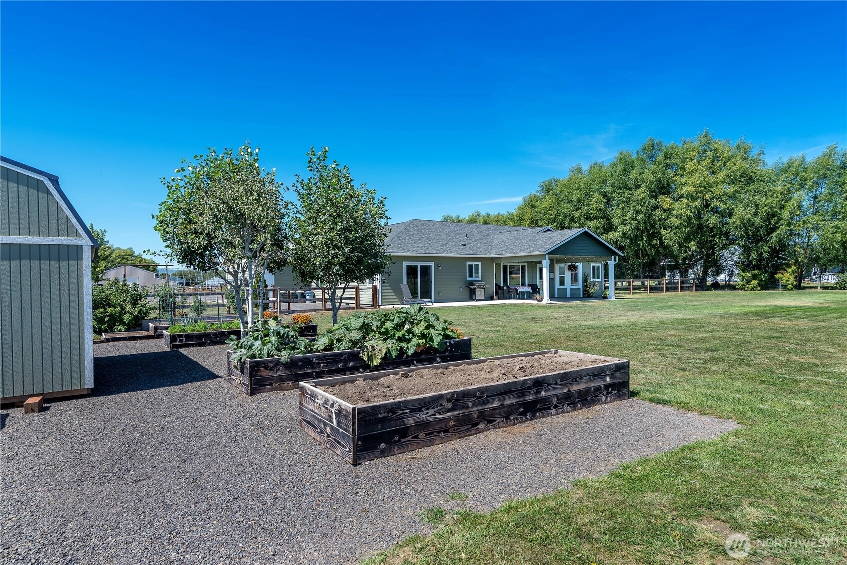 Impeccably maintained rambler on 2 level acres is your dream for country living while being close to services. Enjoy the amazing views from this impressive 3br/2bath home that provides open concept living, generously sized rooms & great storage. Here you'll find nearly everything you'd want from quartz counters, soft close cabinets/drawers, LVT flooring, triple pane windows, added insulation & so much more! Outside you'll enjoy mornings & evening on the covered patio where its already wired for a hot tub. Be sure to check out the dog run, fully fenced pasture, multiple outbuildings & animal shelters. The raised gardens, orchard and other edible perennials are ready for your vision. Exceptional parking & room to build your dream shop too!