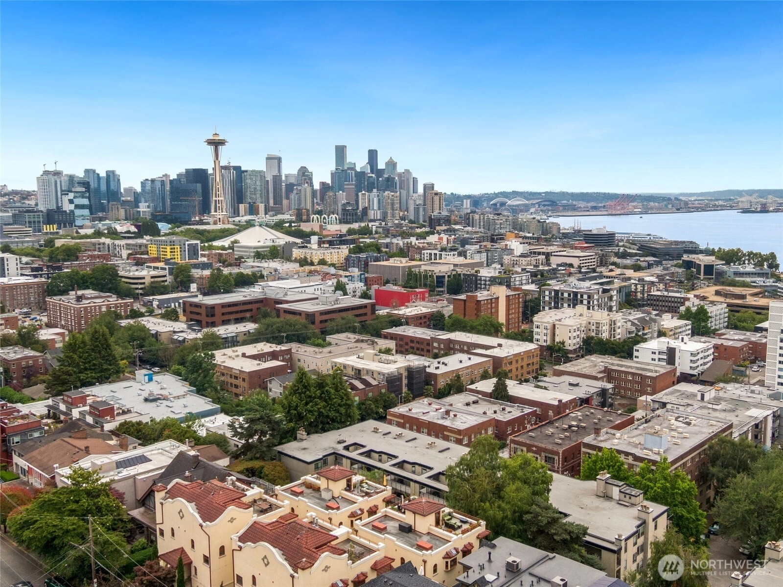 Updated Queen Anne 2 bed/2bath condo w/breathtaking views. Gourmet kitchen is perfect for entertaining w/large pantry, crisp white cabinets, & SS appliances. Updated baths w/quartz counters, full tile surrounds, shaker maple cabinetry, heated tile flooring. In unit washer/dryer for added convenience. Located on a beautiful and tranquil tree-lined street ending at the dog-friendly Kinnear Park. Private deck with panoramic views of the Seattle skyline, Space Needle, & Elliott Bay. Secured building with 1 car parking, storage. Healthy & pet friendly HOA. Walk Score/Bike Score of 82. Walk to Seattle Center, Climate Pledge Arena, & Whole Foods. Commute to downtown via mass transit or bike in just minutes along with easy access to I-5.