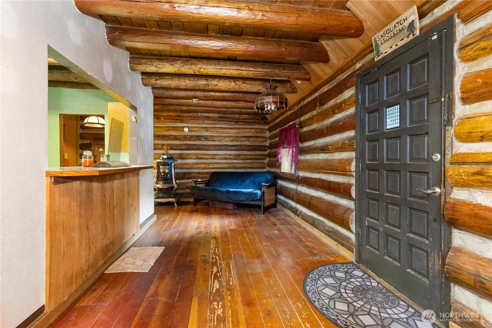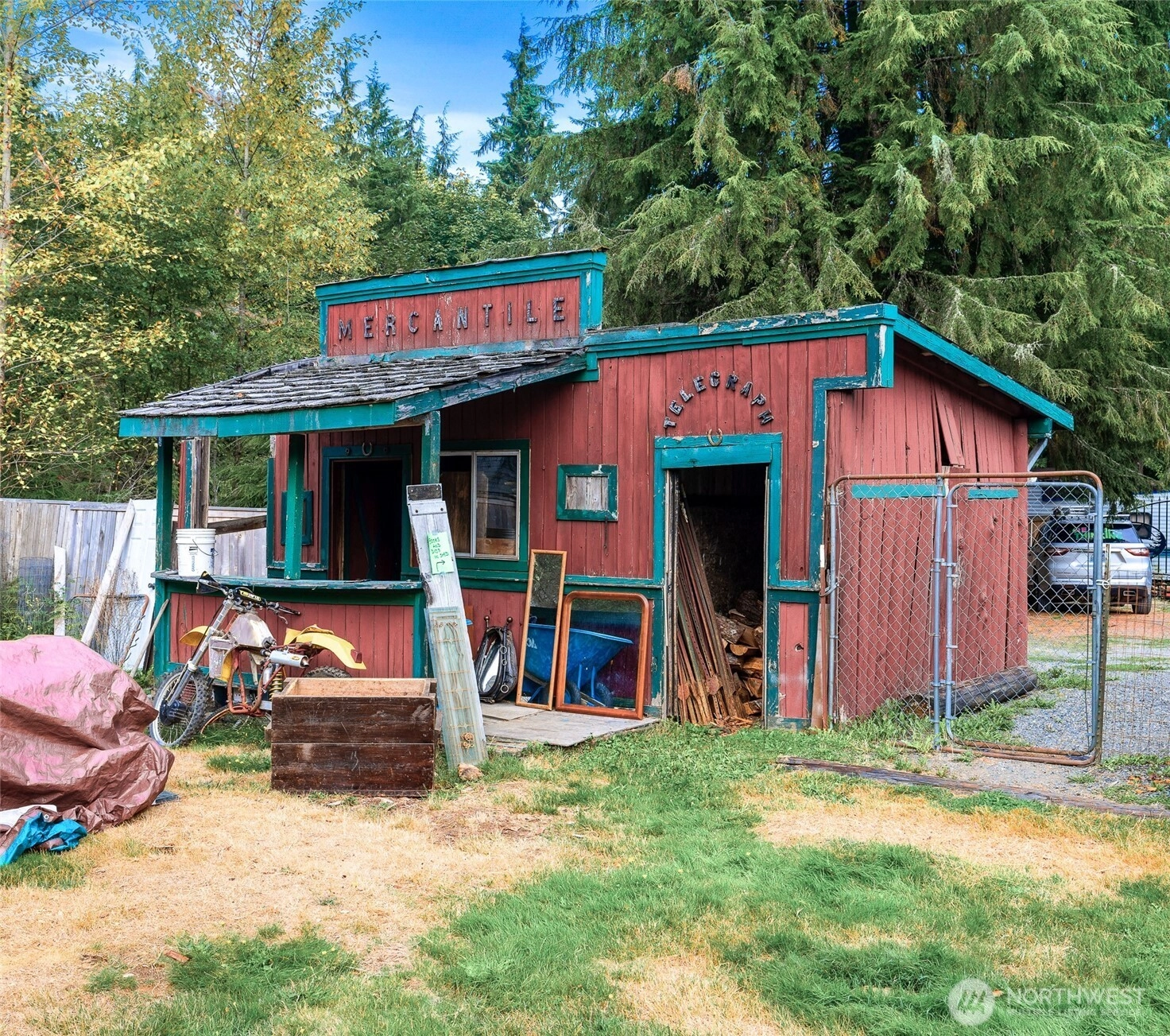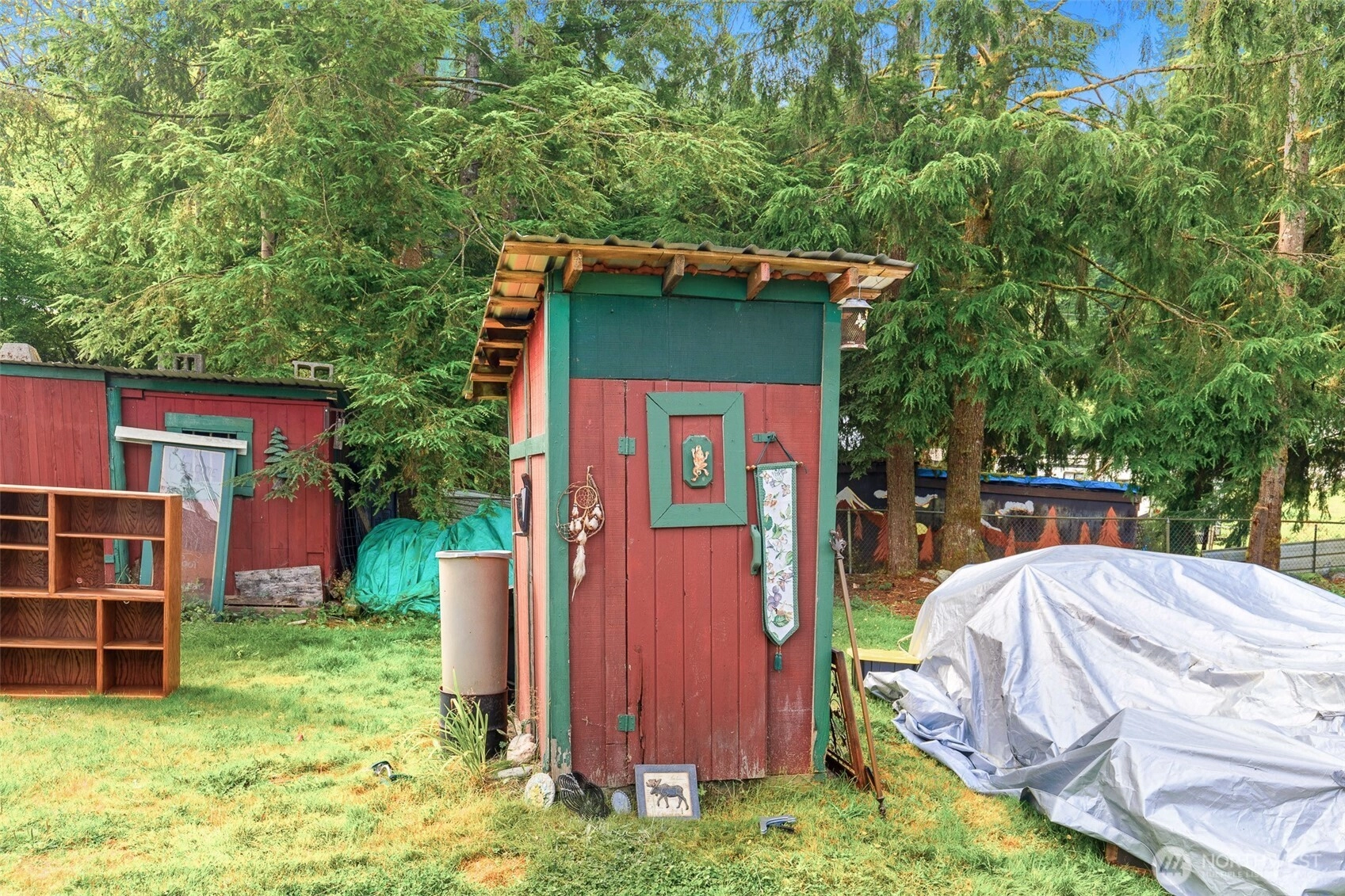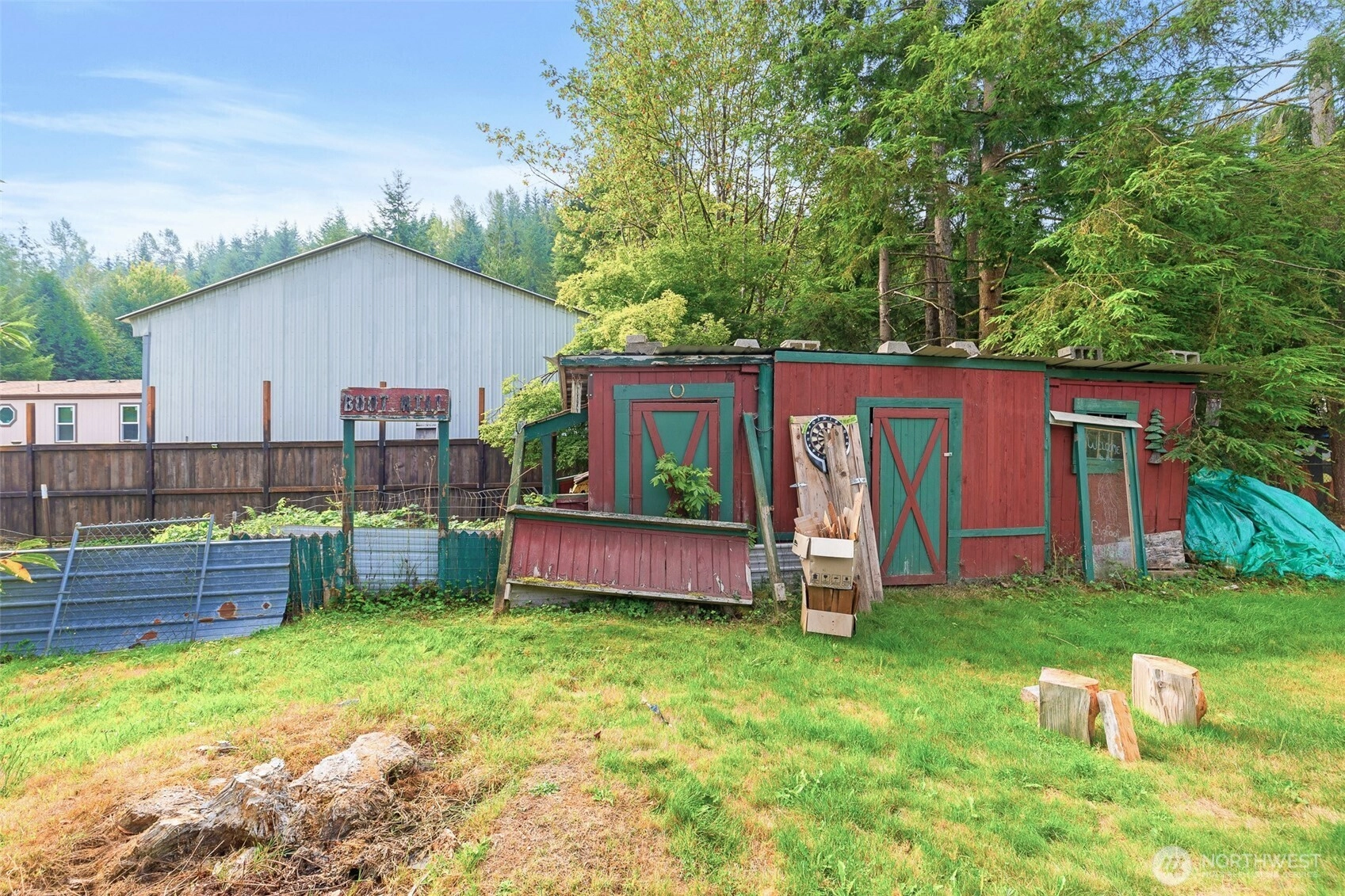 One-of-a-Kind Log Cabin with Bigfoot Flair in Granite Falls. Nestled in the foothills, this two-story tamarack log cabin was once home to the author of Bigfoot: Myth or Reality. Bigfoot greets you at the gates & stands watch at the entrance, setting the tone for a property like no other. Inside, a circular ornate staircase links the main level bedroom, full bath, & living space w/a loft above. Built from Alaska’s toughest tamarack wood, the cabin combines rustic strength with timeless charm, enhanced by a new roof and chimney. On a quarter-acre cul-de-sac lot in River N Forest, you’ll find multiple outbuildings—including a children’s cabin, saloon-style shed, storage, & wood shed—plus room to grow vegetables in a peaceful, private setting.
