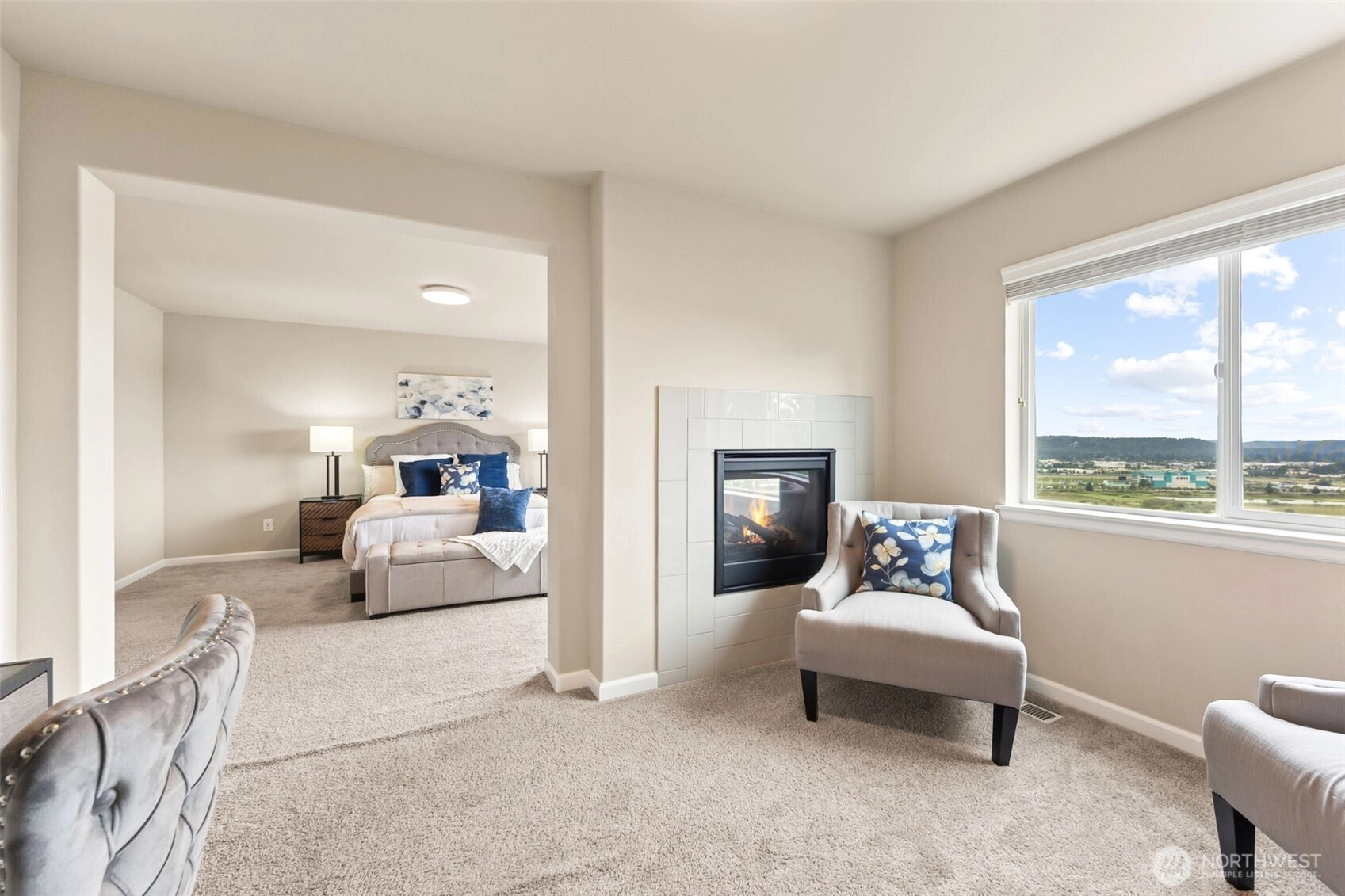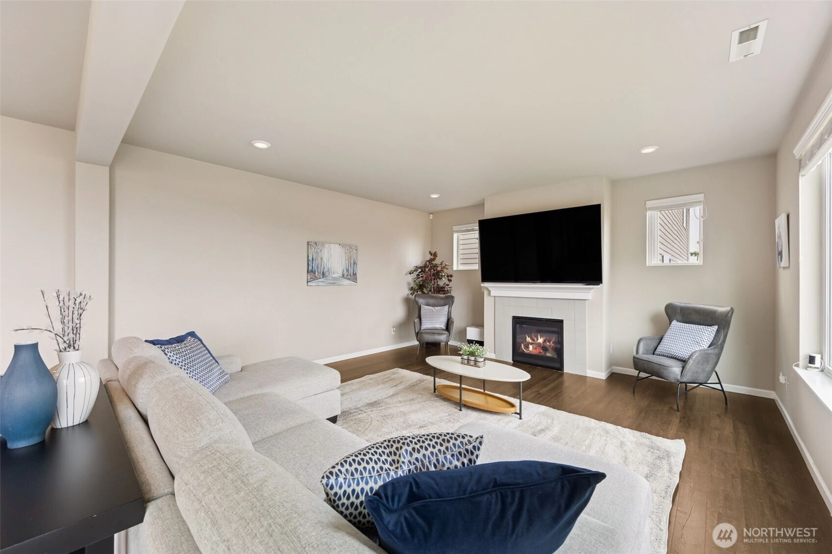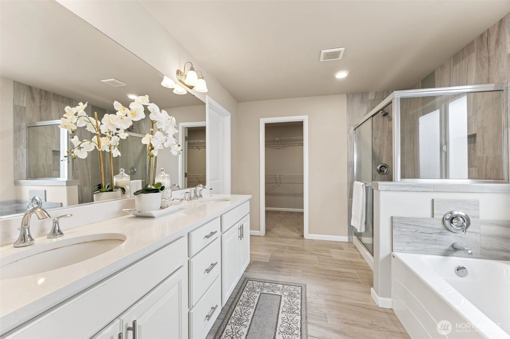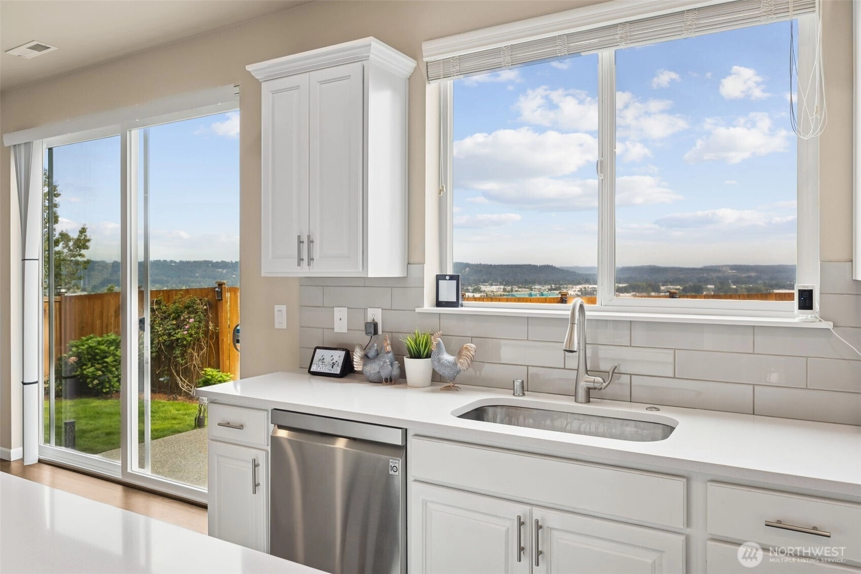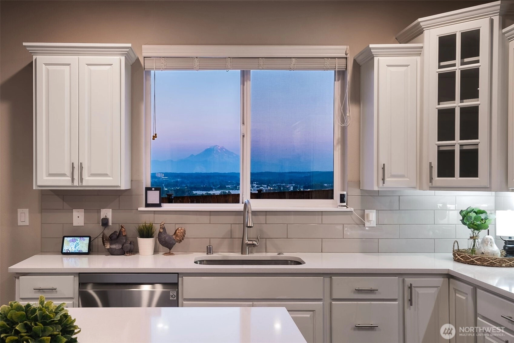 Stunning panoramic Mt. Rainier and sweeping Cascade Mountain views from all your back windows in this immaculate 2-story open-concept Lennar home. This home boasts the neighborhood’s finest view and an exceptional floorplan. Offering 3,341 sq ft, the main level features dining area, and great room with gas fireplace, complemented by a kitchen with white cabinetry, quartz counters, large island, double ovens, gas cooktop, and French door refrigerator. A bedroom and full bath are conveniently located on the main floor. Upstairs, the master suite includes a private retreat with fireplace, five-piece bath, and walk-in closet. Two additional bedrooms share a Jack-and-Jill bath, plus a versatile bonus room. Wi-Fi CERTIFIED™ Home Design.
