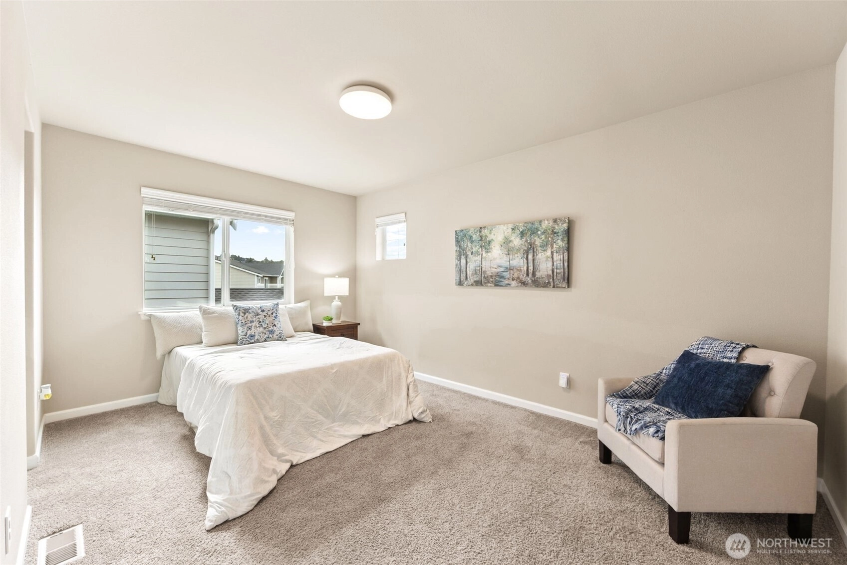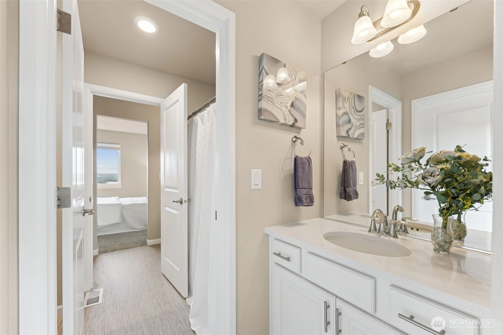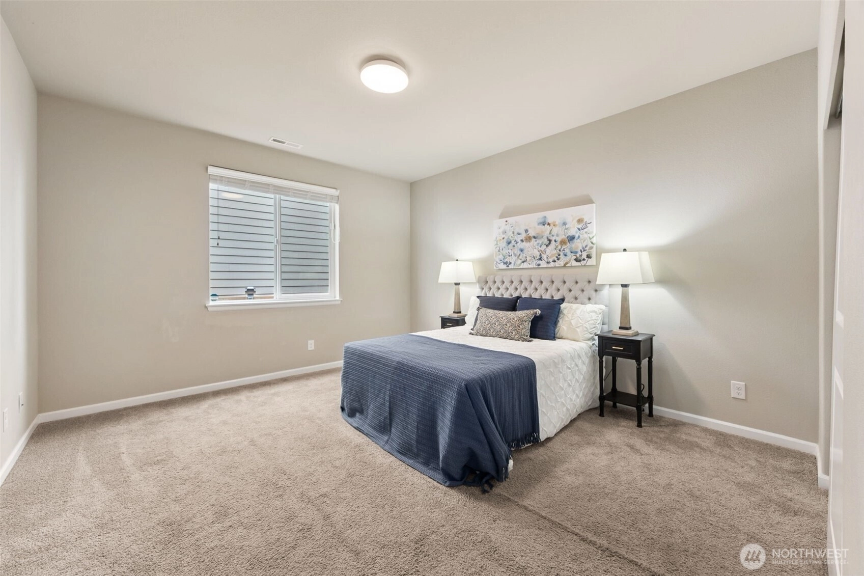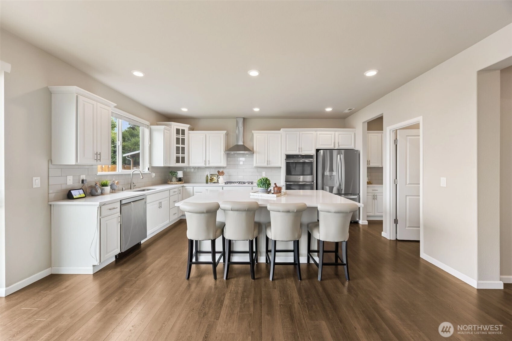 Stunning panoramic Mt. Rainier and sweeping Cascade Mountain views from all your back windows in this immaculate 2-story open-concept Lennar home. This home boasts the neighborhood’s finest view and an exceptional floorplan. Offering 3,341 sq ft, the main level features dining area, and great room with gas fireplace, complemented by a kitchen with white cabinetry, quartz counters, large island, double ovens, gas cooktop, and French door refrigerator. A bedroom and full bath are conveniently located on the main floor. Upstairs, the master suite includes a private retreat with fireplace, five-piece bath, and walk-in closet. Two additional bedrooms share a Jack-and-Jill bath, plus a versatile bonus room. Wi-Fi CERTIFIED™ Home Design.