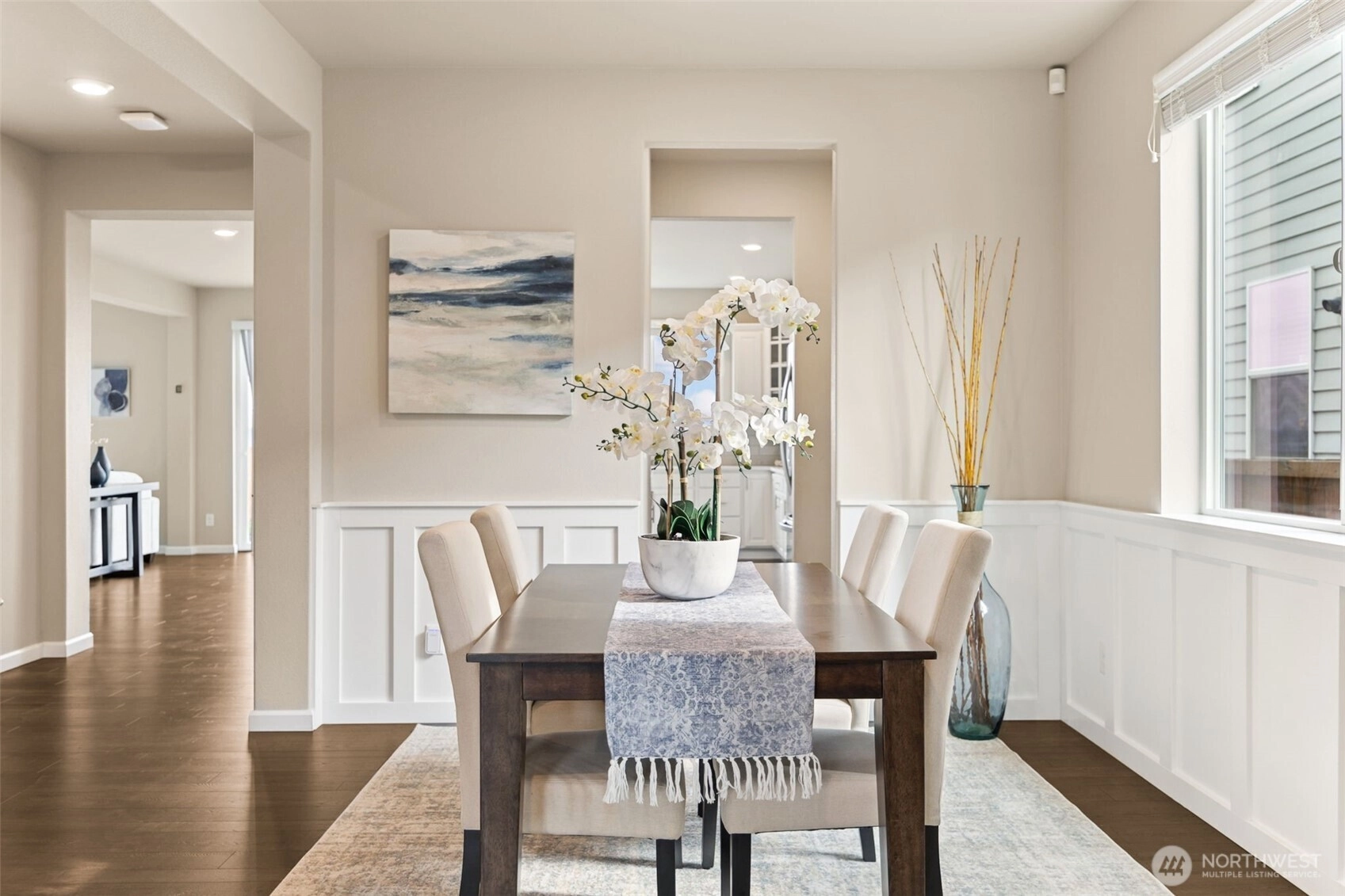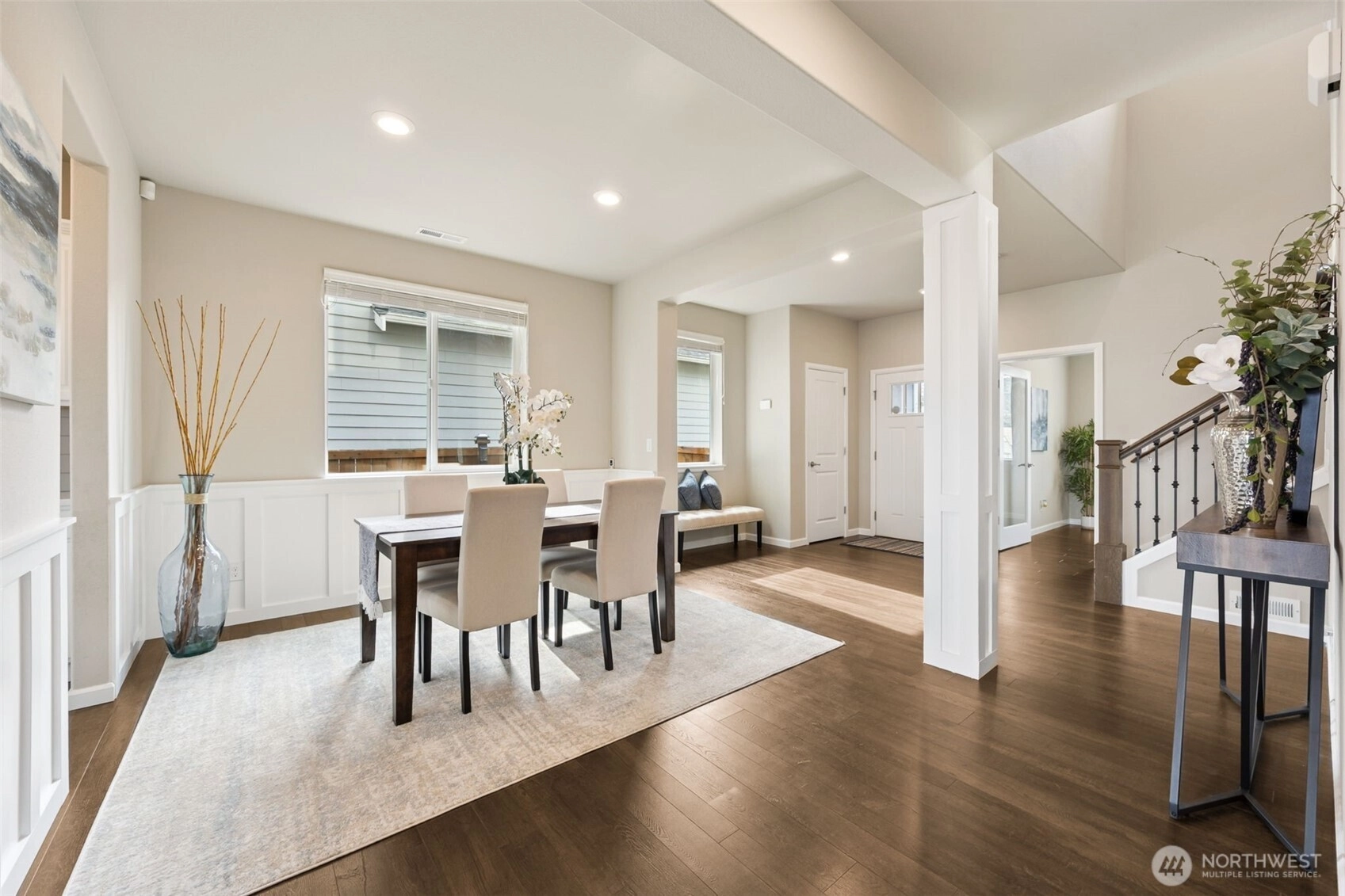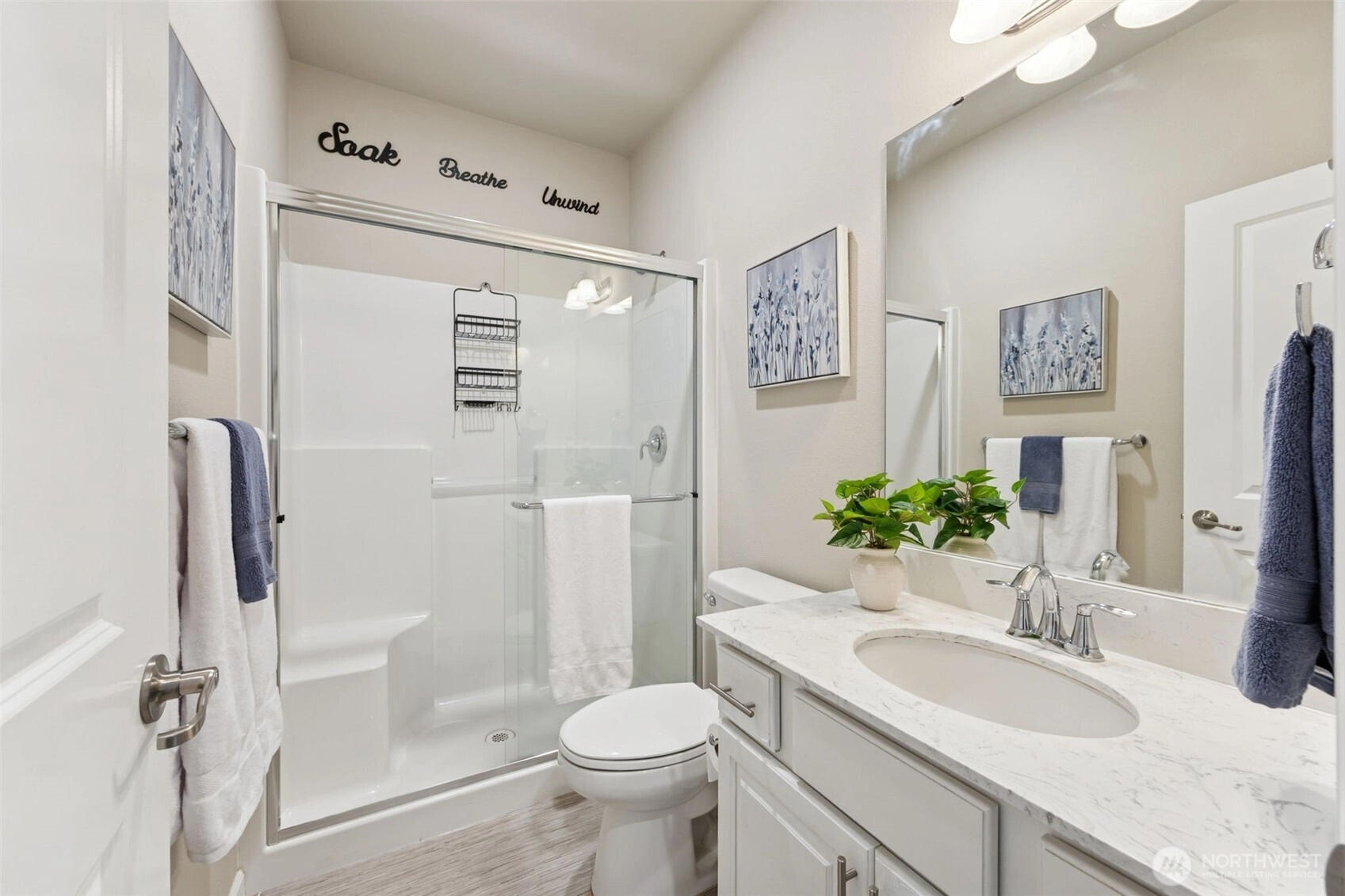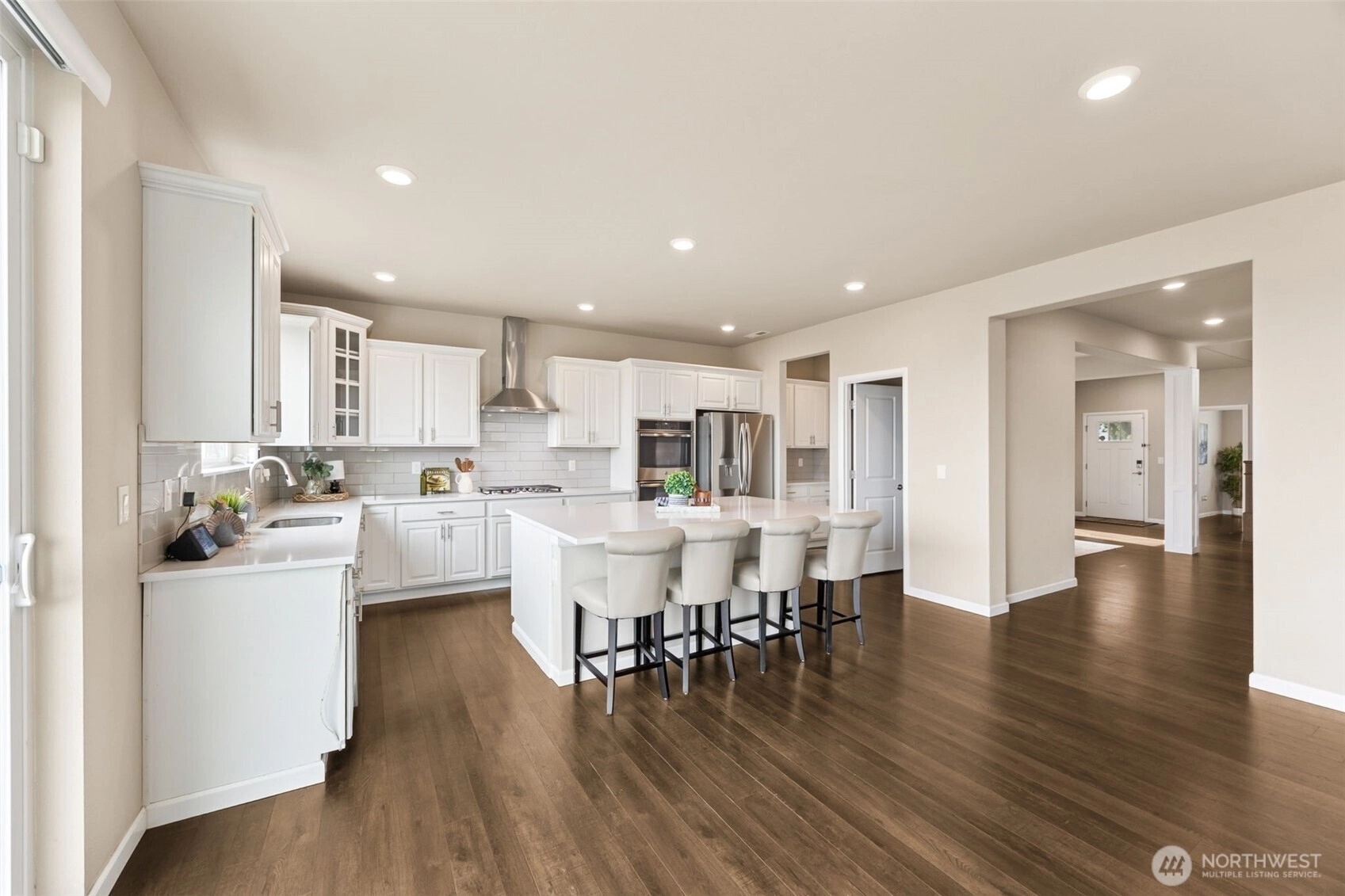 Stunning panoramic Mt. Rainier and sweeping Cascade Mountain views from all your back windows in this immaculate 2-story open-concept Lennar home. This home boasts the neighborhood’s finest view and an exceptional floorplan. Offering 3,341 sq ft, the main level features dining area, and great room with gas fireplace, complemented by a kitchen with white cabinetry, quartz counters, large island, double ovens, gas cooktop, and French door refrigerator. A bedroom and full bath are conveniently located on the main floor. Upstairs, the master suite includes a private retreat with fireplace, five-piece bath, and walk-in closet. Two additional bedrooms share a Jack-and-Jill bath, plus a versatile bonus room. Wi-Fi CERTIFIED™ Home Design.